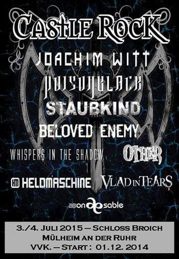 Für Beloved Enemy wurde ja bereits eine neue letzte Show auf dem Castle Rock 2015 angekündigt und das Billing wächst nun noch weiter. Vlad in Tears werden nächstes Jahr ihr Debut auf dem Castle Rock geben. Ebenso sind Poisonblack mit dabei, wie man auf der facebook-Seite des Festivals lesen kann.