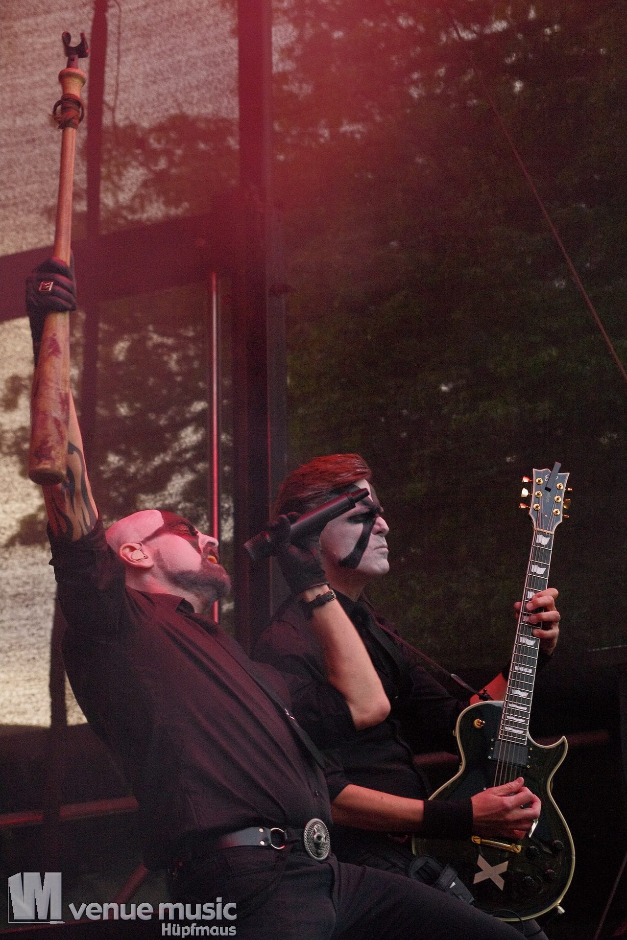 Als Headliner durften Megaherz dann den Festivalfreitag abschließen. Ihr neues Album „In Teufels Namen“ wurde noch sehnsüchtig erwartet, sollte es doch erst im August erscheinen. Aber ein kleines Appetithäppchen mit dem Song „Alles Arschlöcher“ gab es dann doch. Und natürlich war das allseits geliebte „Miststück“ ebenfalls wieder im Programm. Von insgesamt 7 der bisherigen 10 Alben standen Songs auf der Setlist, die vom Publikum gebührend abgefeiert wurden. Was für ein toller Tag, was für ein toller Auftritt, was für ein genialer Abschluss des ersten Tages. So konnte es gerne am Samstag weiter gehen!