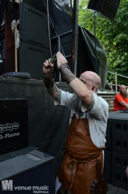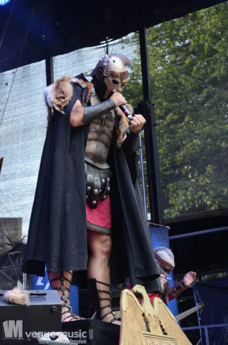 Von Neuer Deutsche Härte ging es dann zu Powermetal mit Warkings. Mein drittes Konzert der Jungs binnen nicht einmal 8 Monaten. Bereits als Vorband von Powerwolf neu entdeckt, hatte ich mich schon bei Feuerschwanz auf die Krieger gefreut. Jetzt konnte ich das Ganze auch noch vernünftig im Bild festhalten und den restlichen Gig in Ruhe abfeiern. Mal auf der Bühne, mal davor mit Kamera war natürlich Matthias Schwaighofer wieder unterwegs – gefühlt an drei Orten gleichzeitig ;) (danke für das Foto ;) ) Auf der Bühne haben der Tribun, der Crusader, der Viking und der Spartan erfolgreich Metal verbreitet ;) – dafür sind sie ja schließlich auf die Erde geschickt worden! Schön dazu ein Becherchen Met, Tanzen, Feiern… was will man mehr??