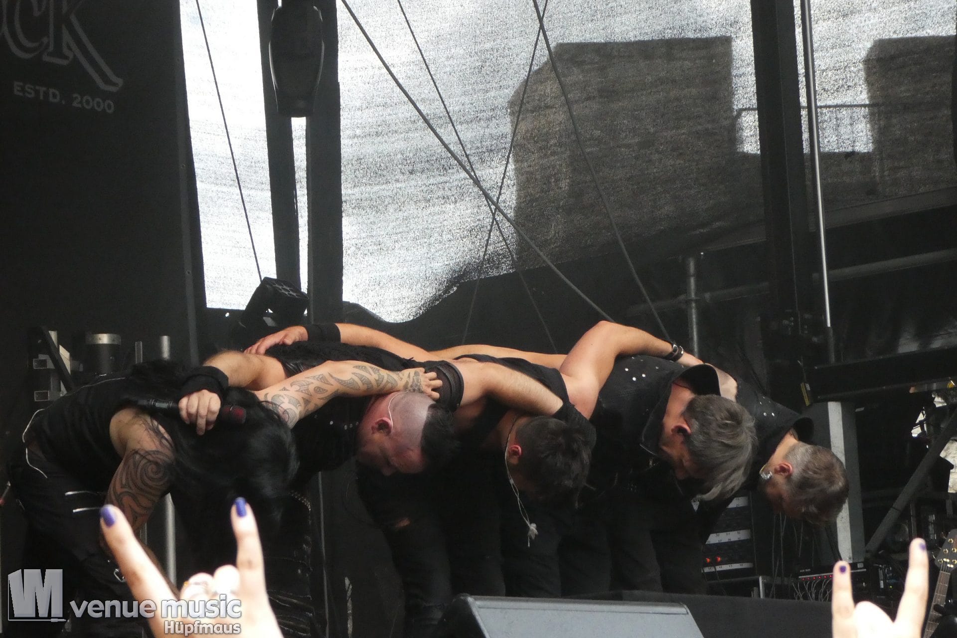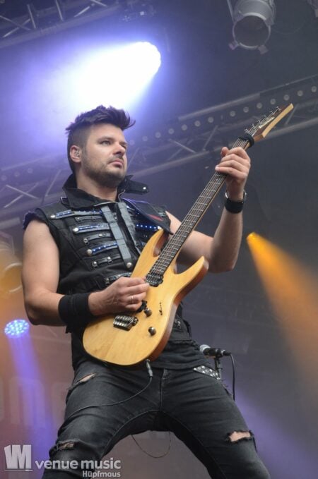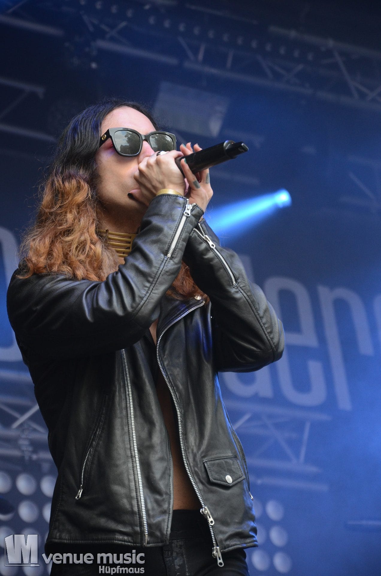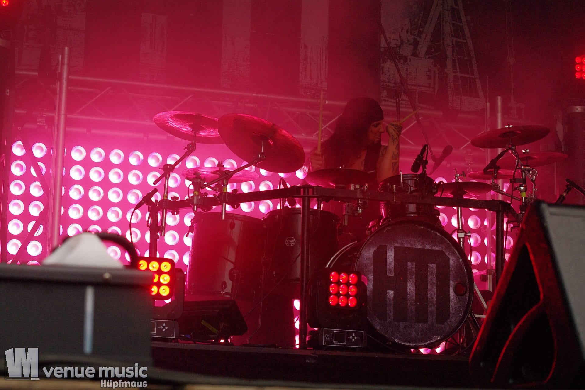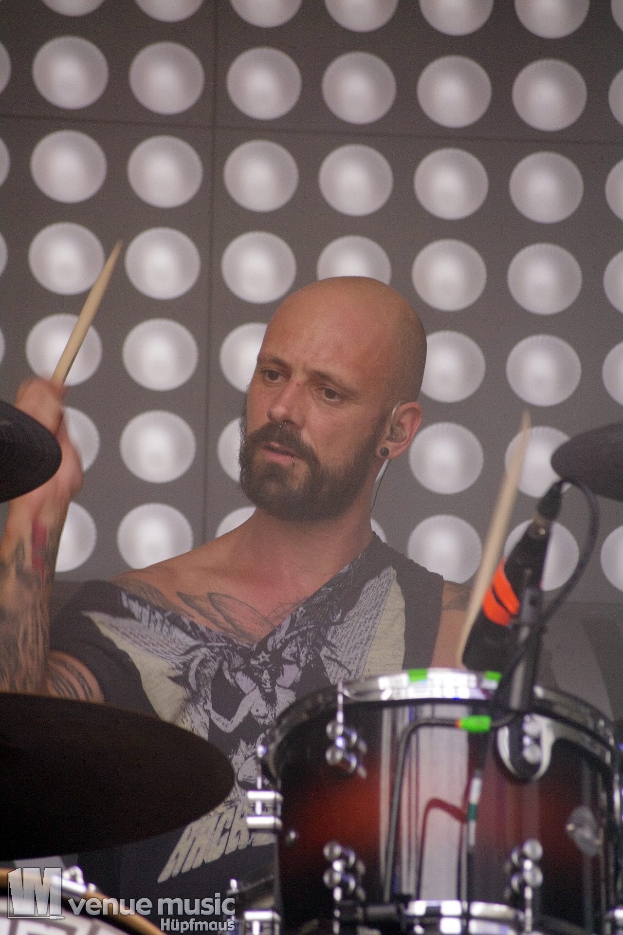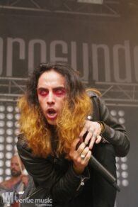Und weiter ging es mit Neuer Deutscher Härte – Heldmaschine waren nun mit ihrem Set an der Reihe. Ich dachte noch „Moment mal, der Sänger kommt Dir aber bekannt vor“ – klar, er (und noch mehr Musiker der Band) ist ja auch Teil von Völkerball. (Die ich aber immer noch nicht live gesehen habe, dabei spielen sie so oft in Oberhausen, aber irgendwie passte es zeitlich nie bisher). Das versprach noch mal jede Menge Spaß.