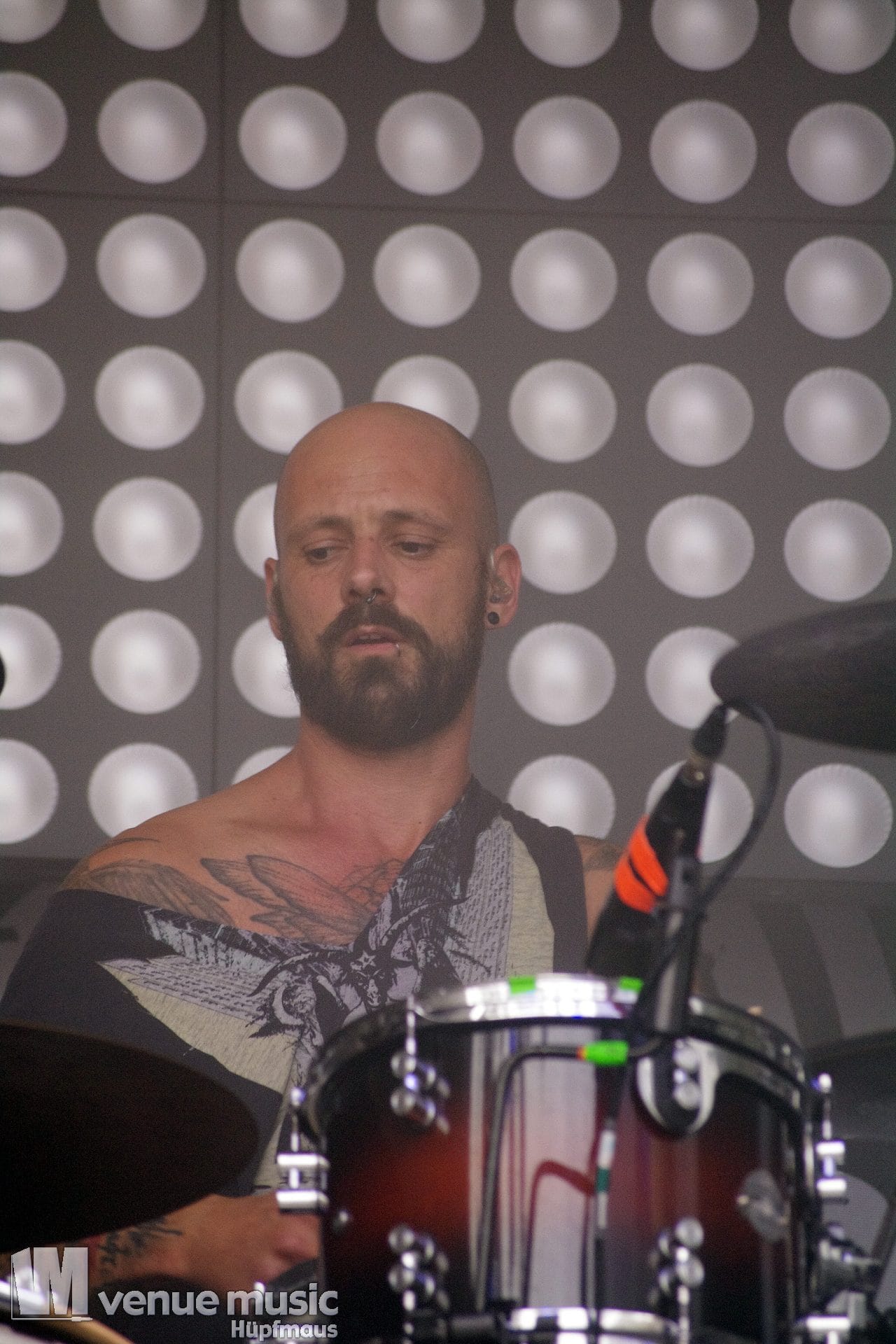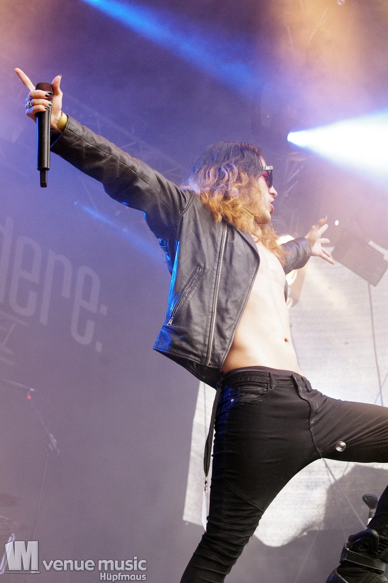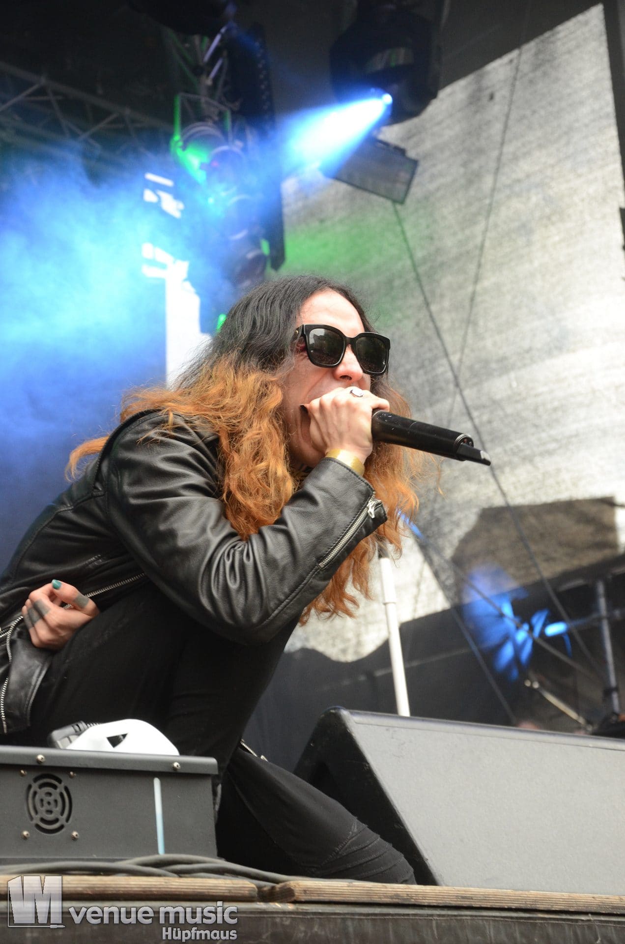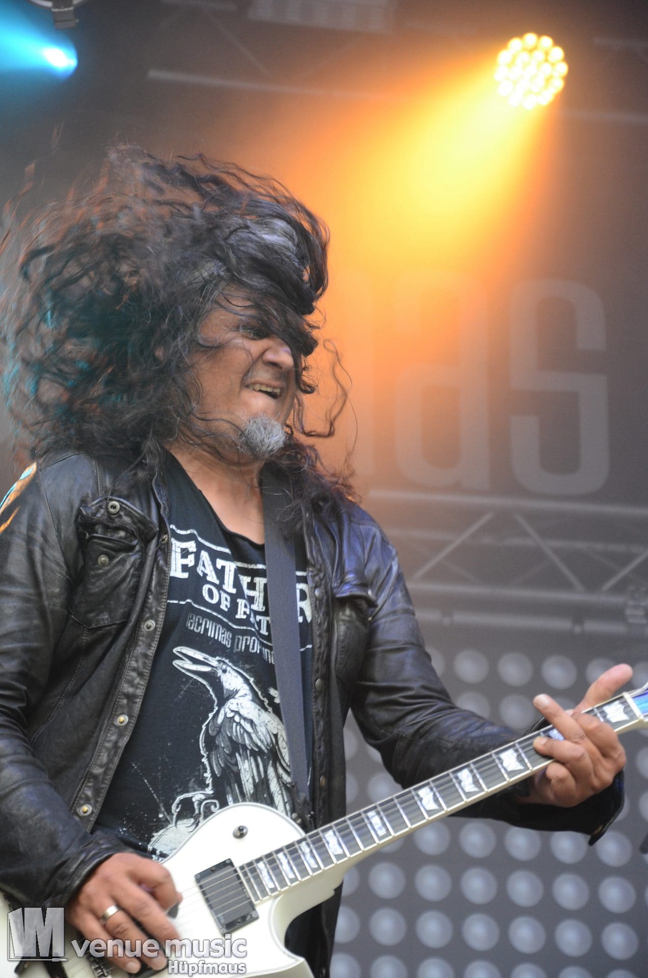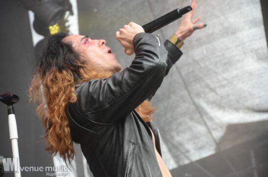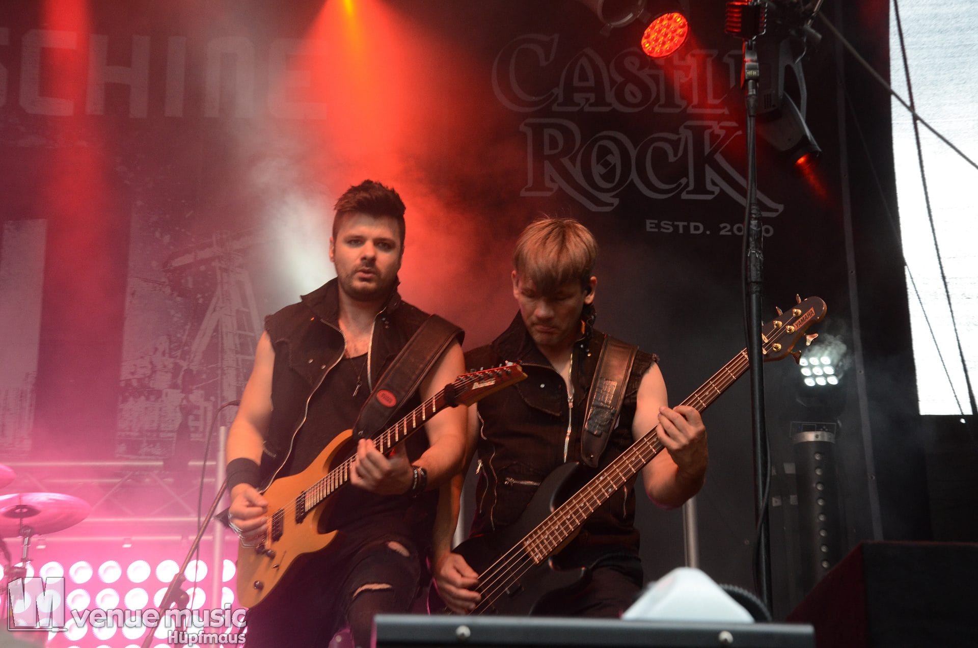 Und weiter ging es mit Neuer Deutscher Härte – Heldmaschine waren nun mit ihrem Set an der Reihe. Ich dachte noch „Moment mal, der Sänger kommt Dir aber bekannt vor“ – klar, er (und noch mehr Musiker der Band) ist ja auch Teil von Völkerball. (Die ich aber immer noch nicht live gesehen habe, dabei spielen sie so oft in Oberhausen, aber irgendwie passte es zeitlich nie bisher). Das versprach noch mal jede Menge Spaß.