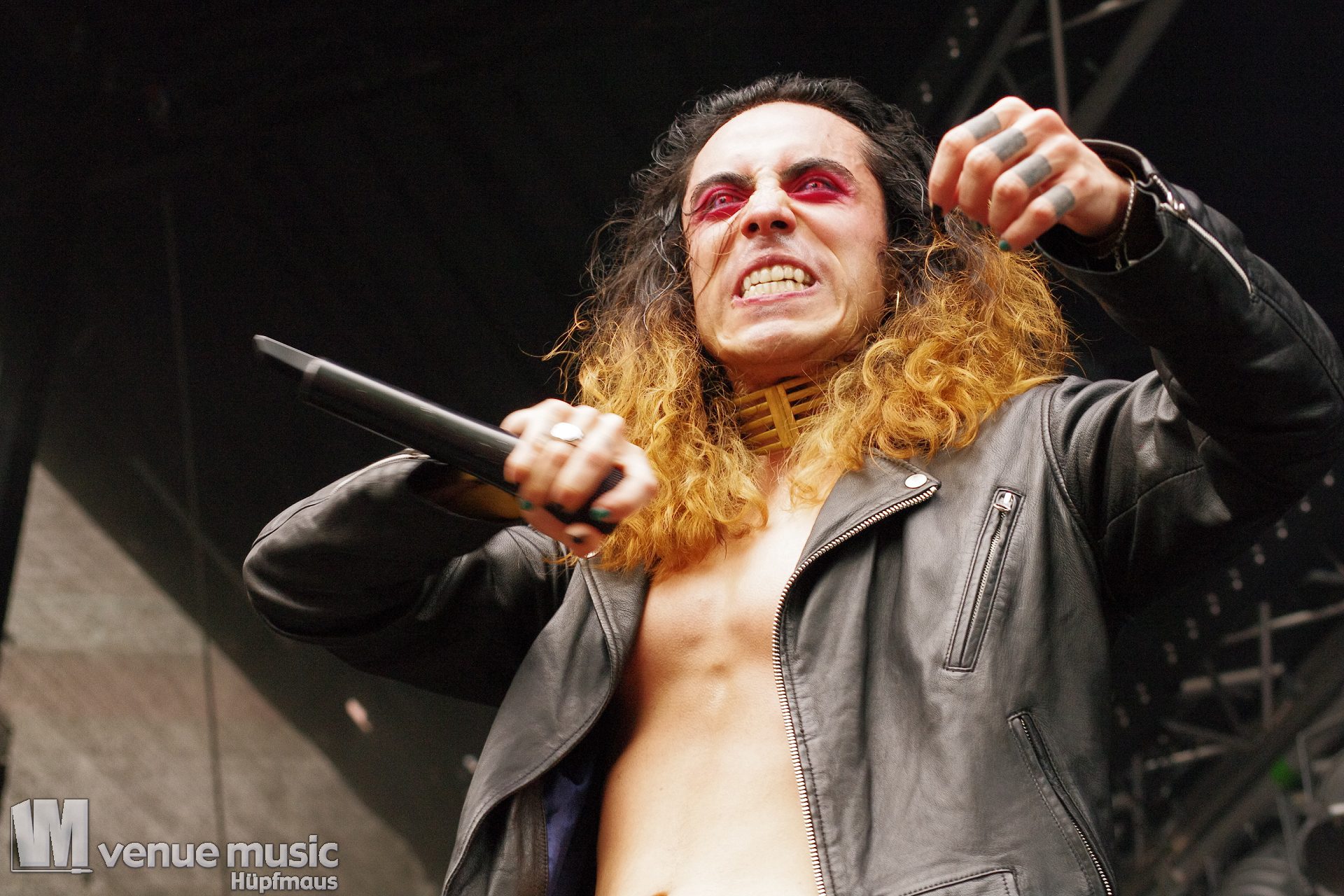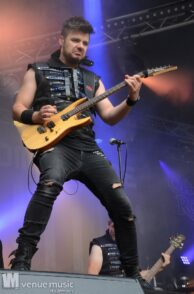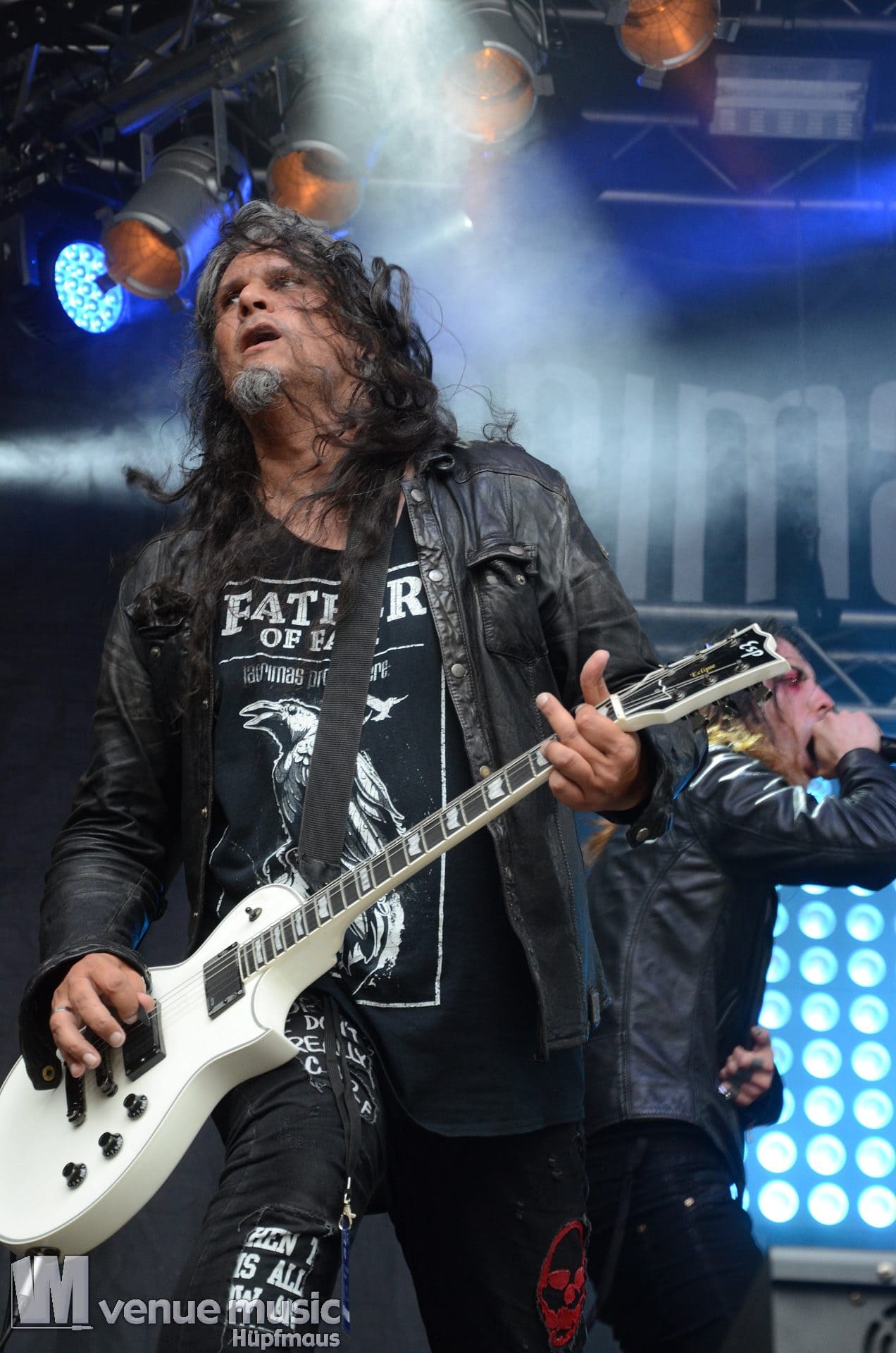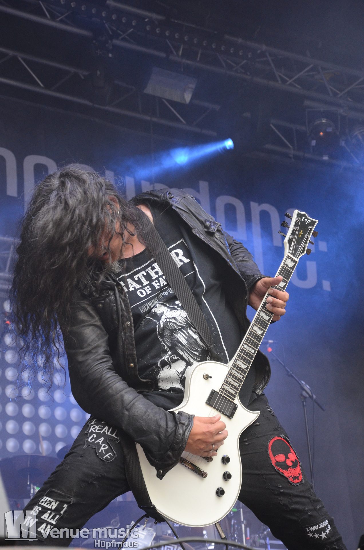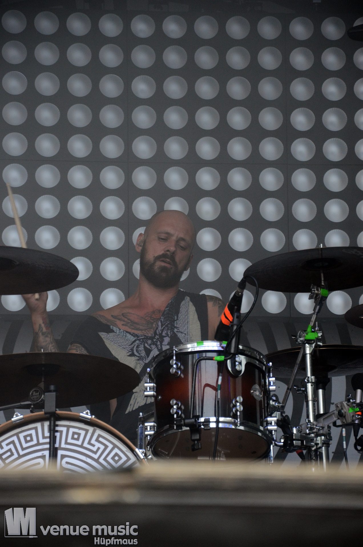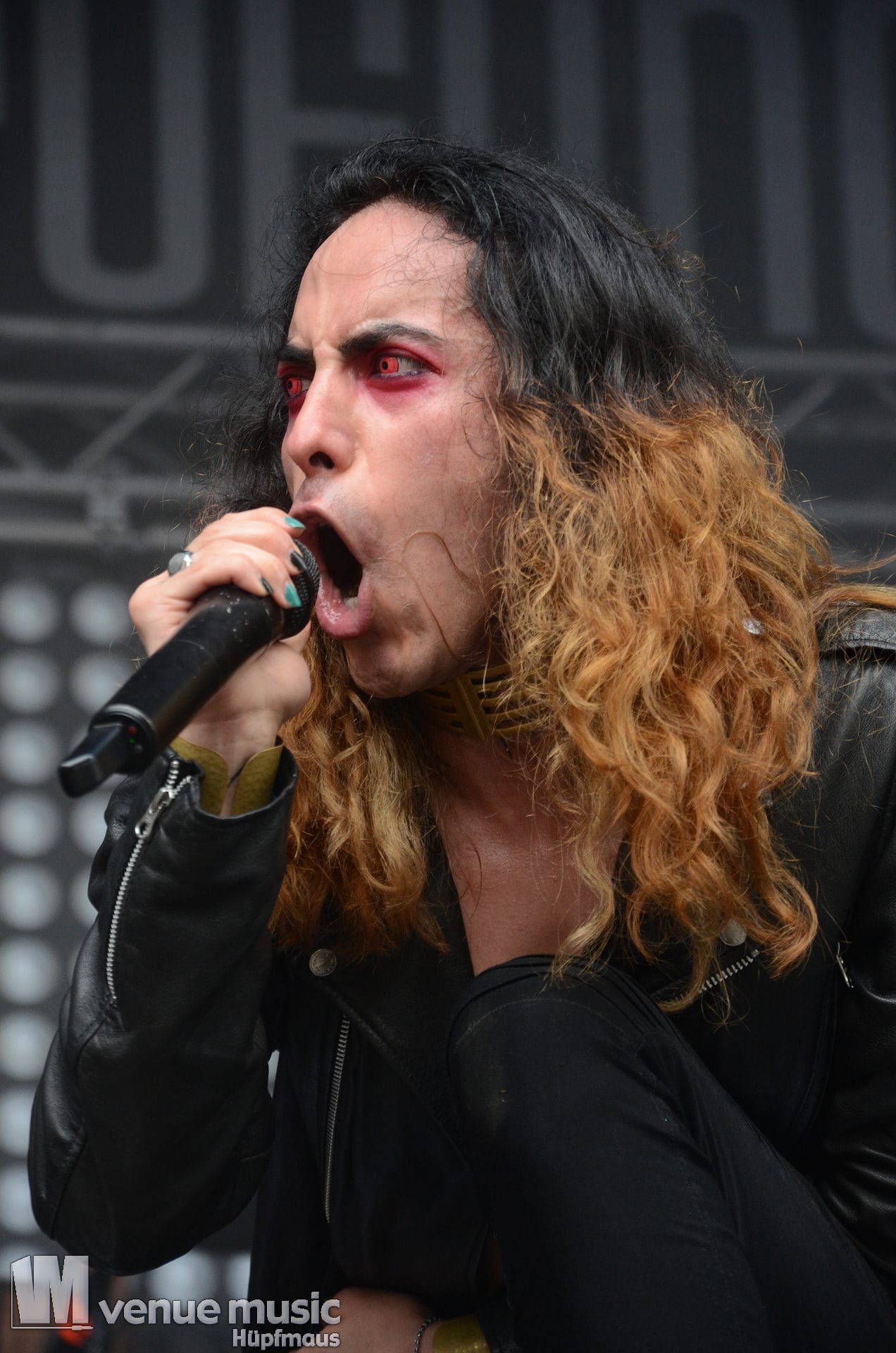 Und weiter ging es mit Neuer Deutscher Härte – Heldmaschine waren nun mit ihrem Set an der Reihe. Ich dachte noch „Moment mal, der Sänger kommt Dir aber bekannt vor“ – klar, er (und noch mehr Musiker der Band) ist ja auch Teil von Völkerball. (Die ich aber immer noch nicht live gesehen habe, dabei spielen sie so oft in Oberhausen, aber irgendwie passte es zeitlich nie bisher). Das versprach noch mal jede Menge Spaß.