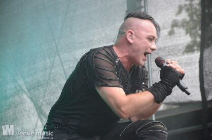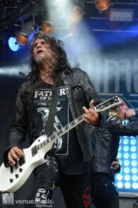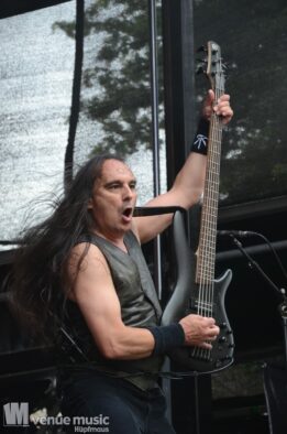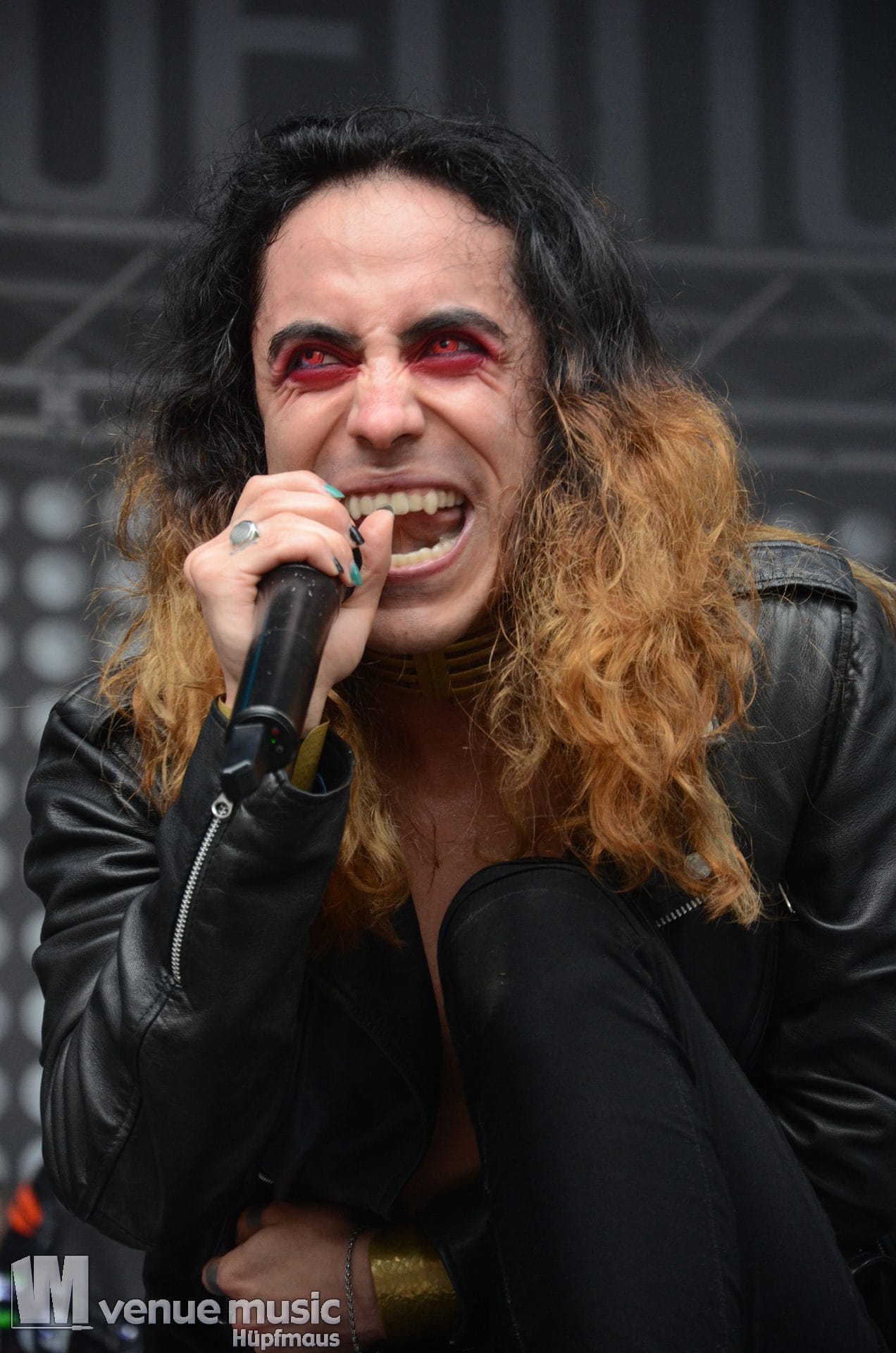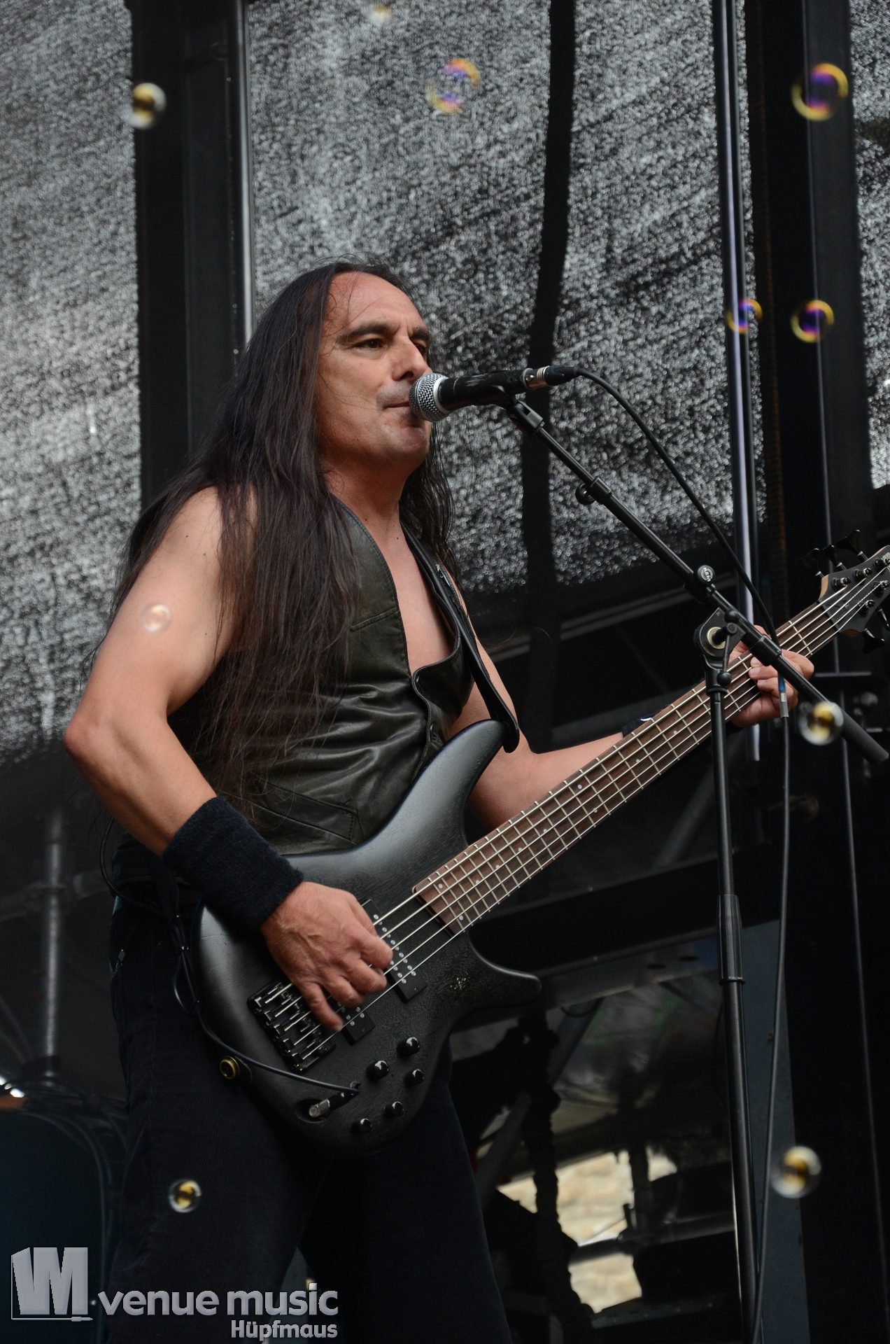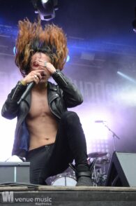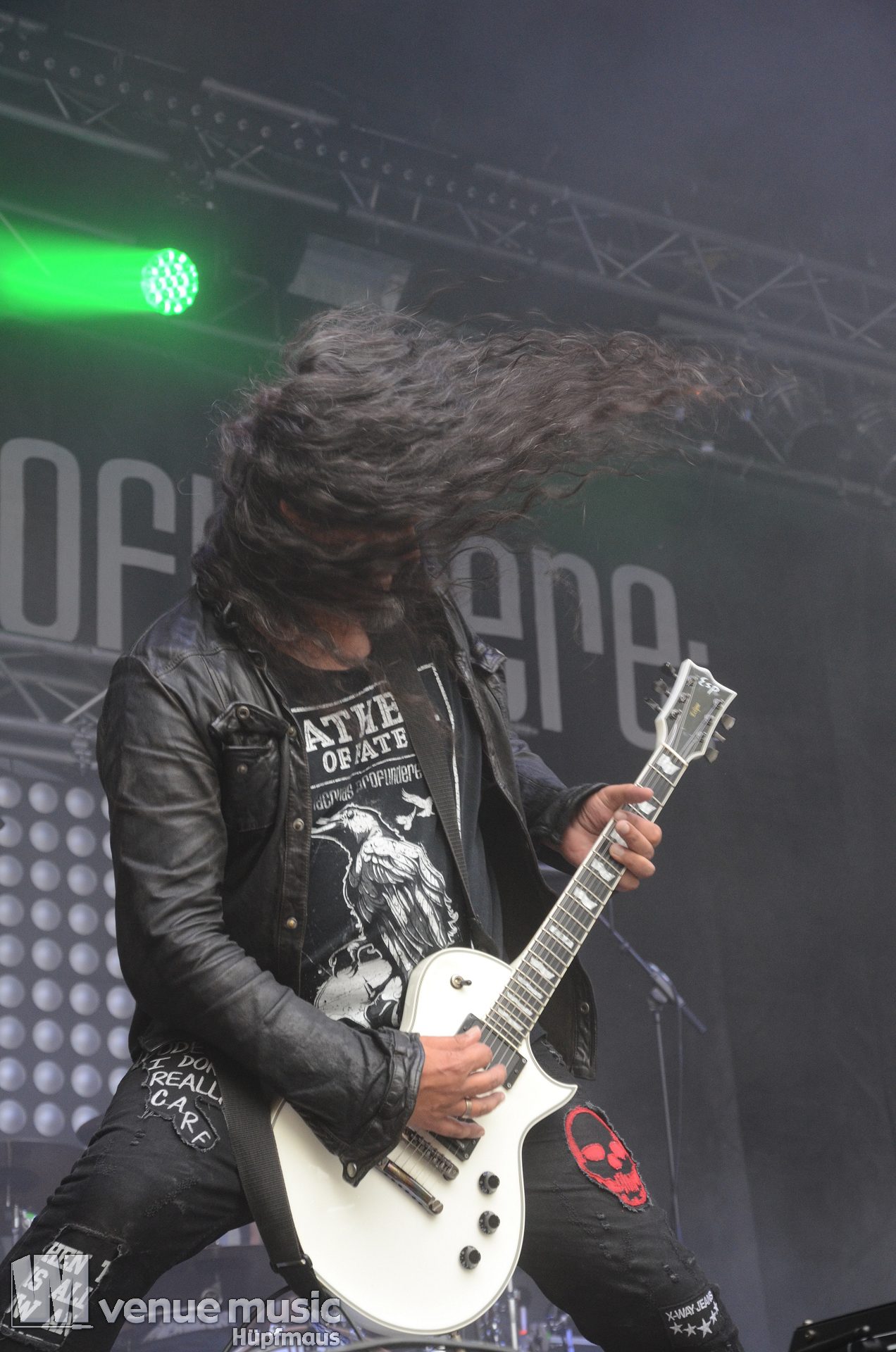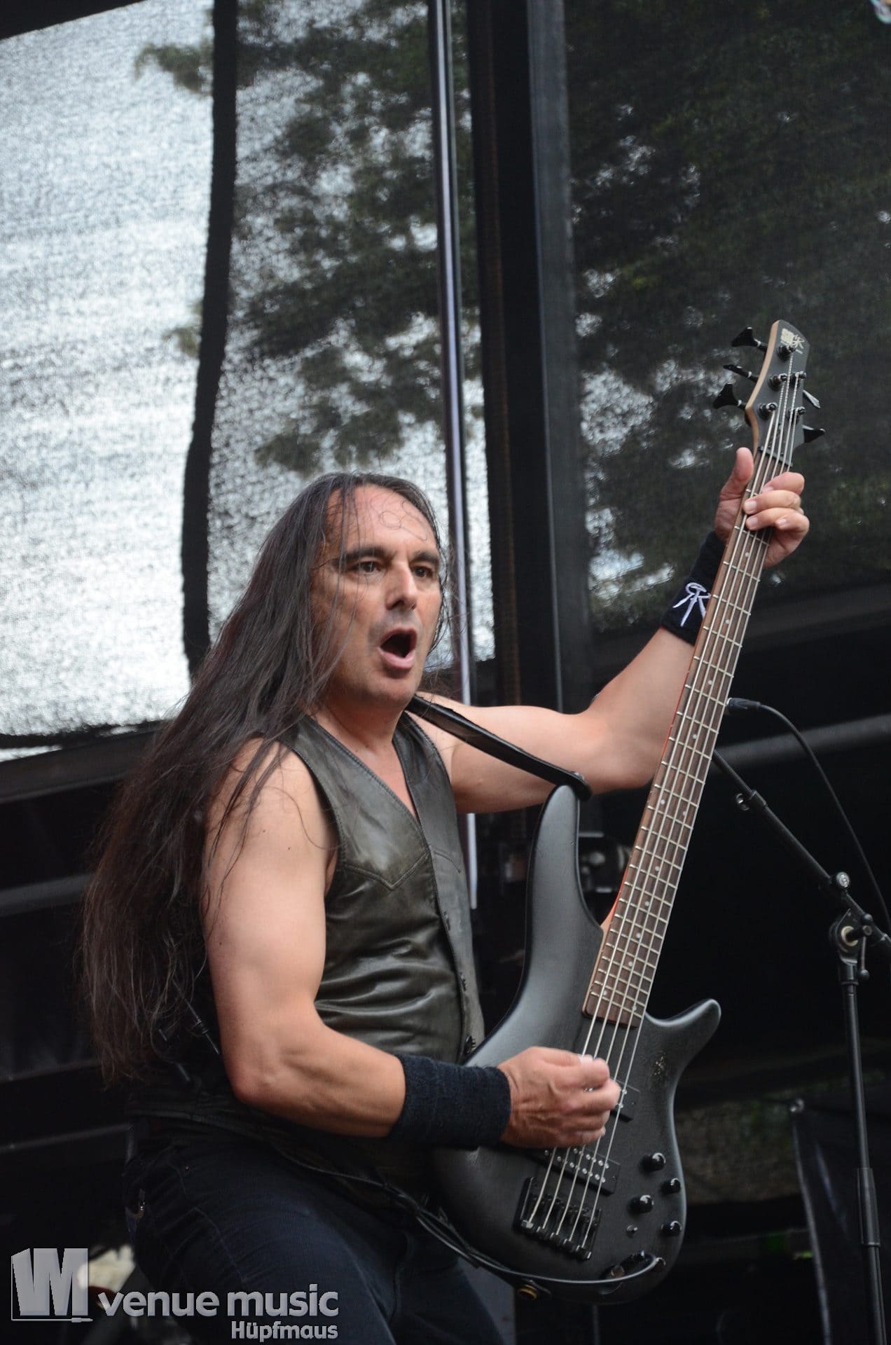 Musikalisch wieder in Richtung Dark Rock waren als nächstes Lacrimas Profundere an der Reihe. Bereits seit 30 Jahren steht Gründungsmitglied Oliver Nikolas Schmid nun schon mit der Band auf der Bühne, gab es aber doch schon viele viele Wechsel im Line-Up. Zuletzt hatte ich sie in Köln noch als Support von Mono Inc. gesehen, jetzt also rockten sie Schloß Broich. Dabei sieht Julian Larre mit dem Make-Up und den Kontaktlinsen teils ganz schön gespenstisch (oder eher vampirisch) aus.