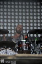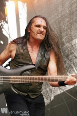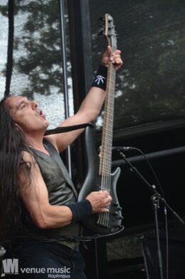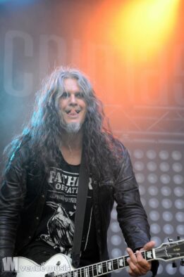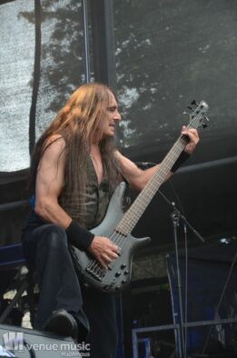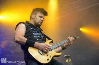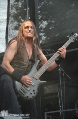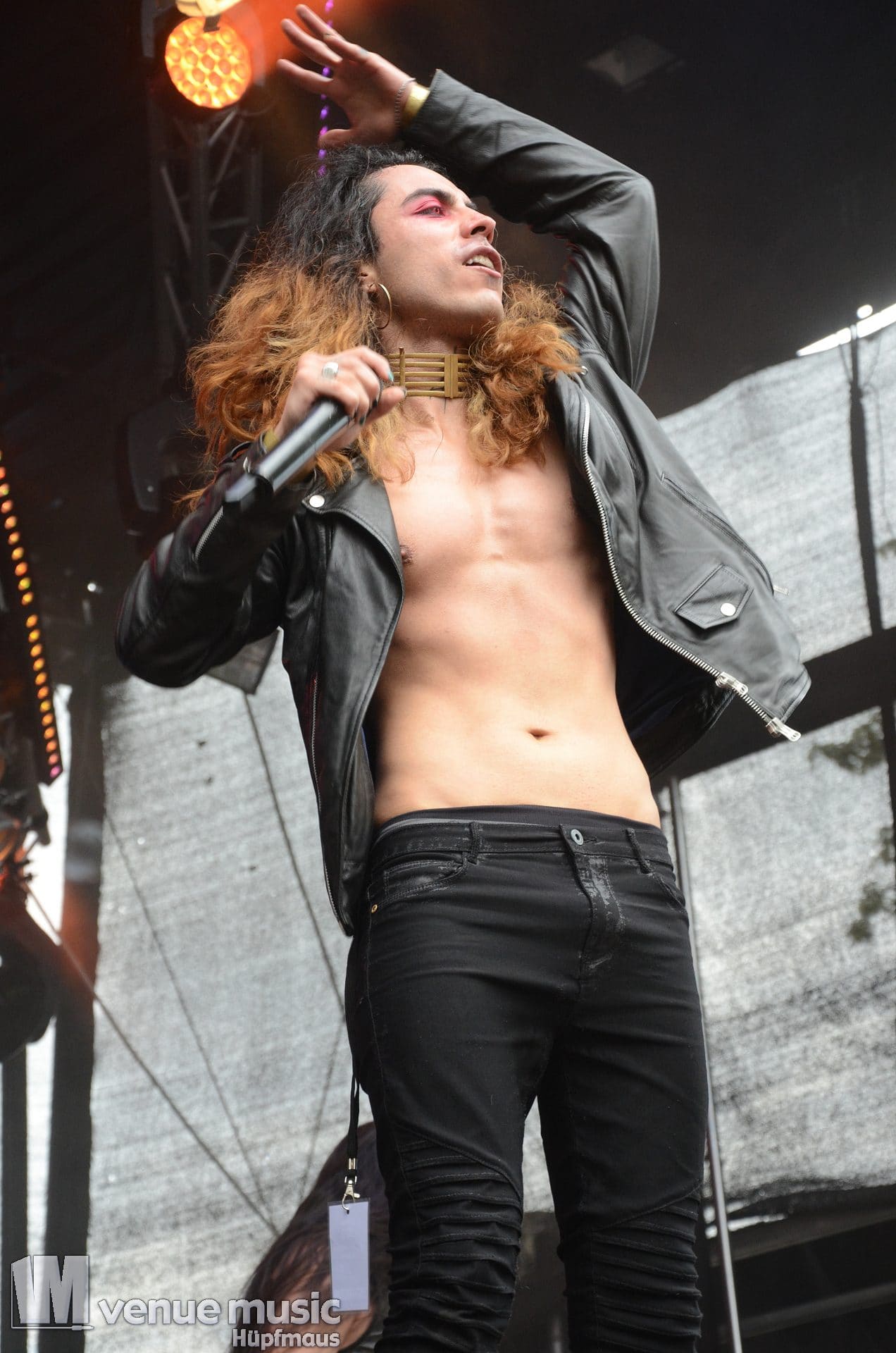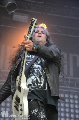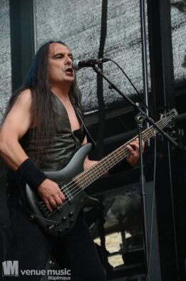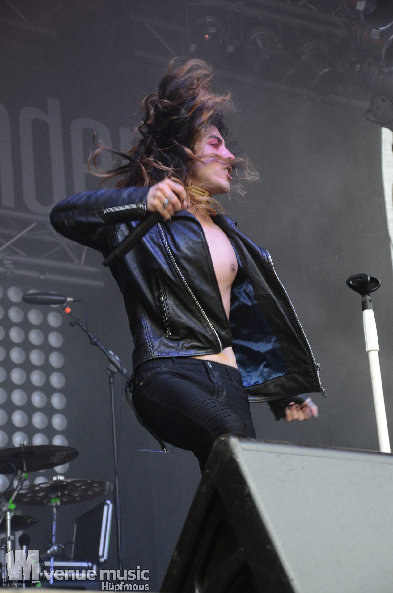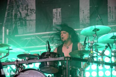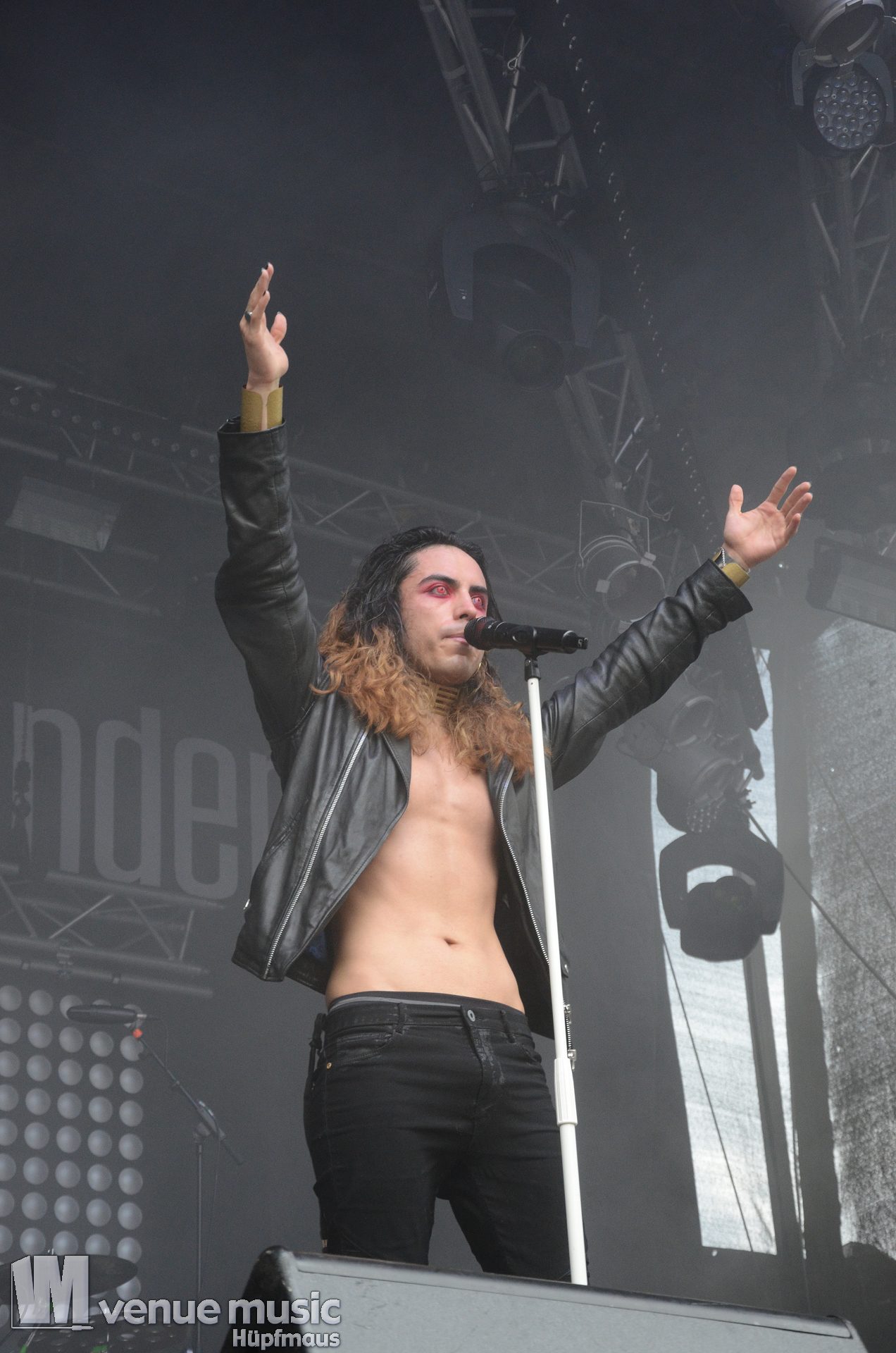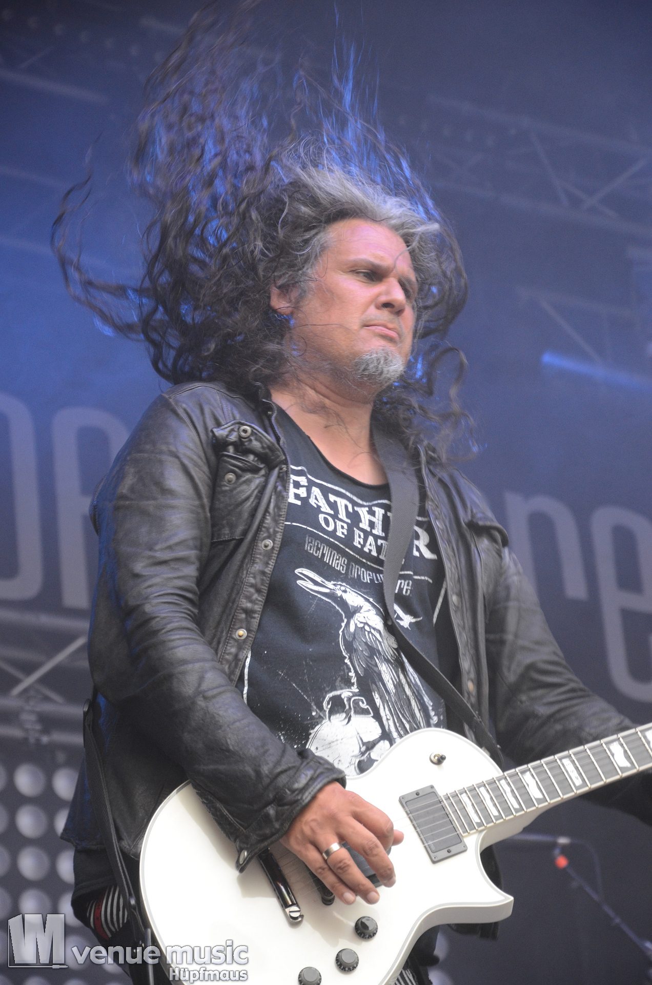 Musikalisch wieder in Richtung Dark Rock waren als nächstes Lacrimas Profundere an der Reihe. Bereits seit 30 Jahren steht Gründungsmitglied Oliver Nikolas Schmid nun schon mit der Band auf der Bühne, gab es aber doch schon viele viele Wechsel im Line-Up. Zuletzt hatte ich sie in Köln noch als Support von Mono Inc. gesehen, jetzt also rockten sie Schloß Broich. Dabei sieht Julian Larre mit dem Make-Up und den Kontaktlinsen teils ganz schön gespenstisch (oder eher vampirisch) aus.