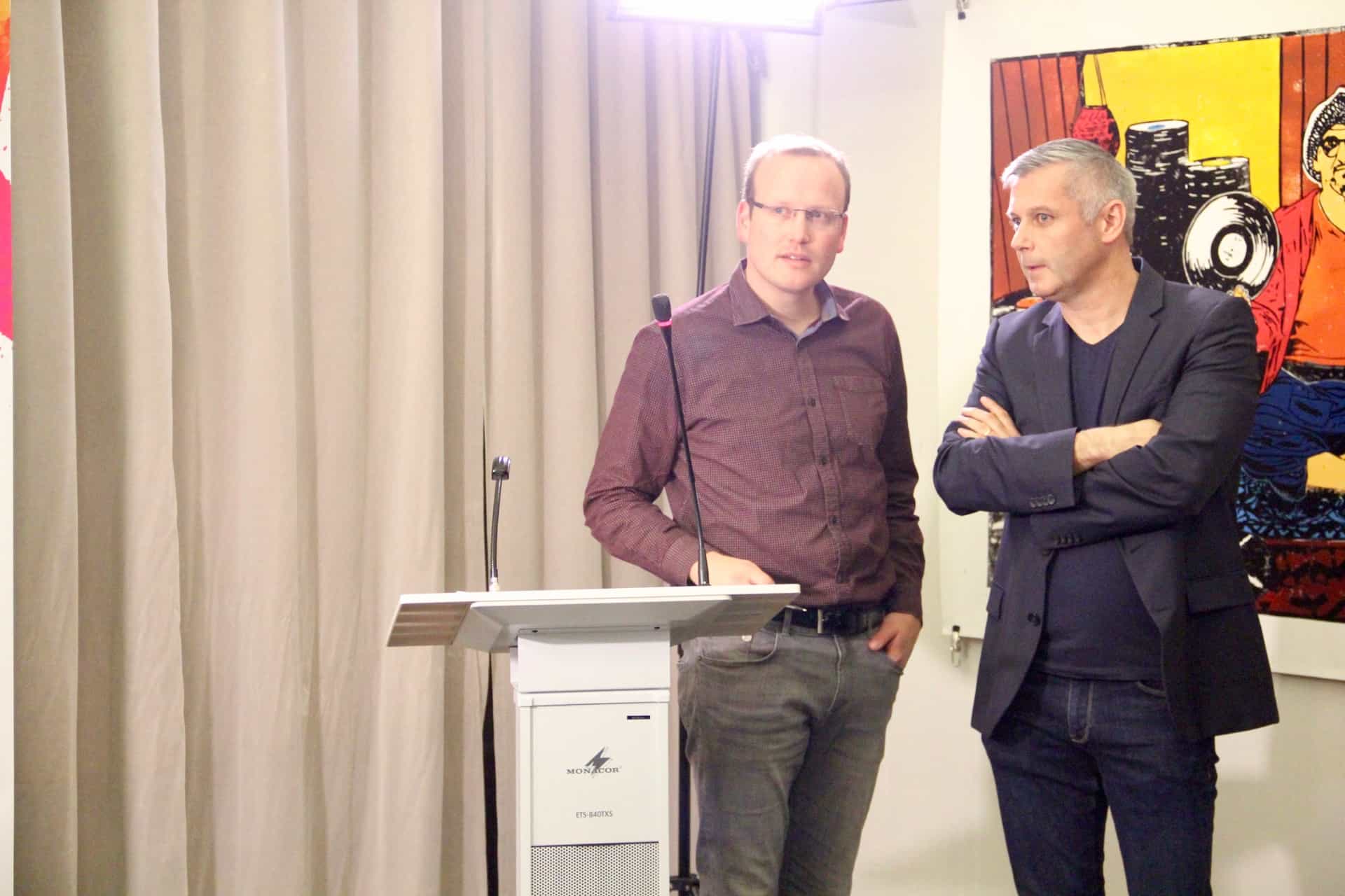Simon Matzerath (Direktor des Historischen Museums), Peter Meyer (Vorsitzender des PopRat Saarland e. V.) und Thilo Ziegler (Festivalleiter Colors of Pop) eröffneten gestern die Ausstellung, die noch bis zum 22. Oktober läuft. Ebenfalls im Historischen Museum läuft auch die Sonderausstellung „Prominente Menschen aus dem Saarland“, zu denen natürlich auch Akteuere der Popkultur gehören und drei Mitglieder des PopRats.