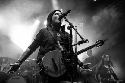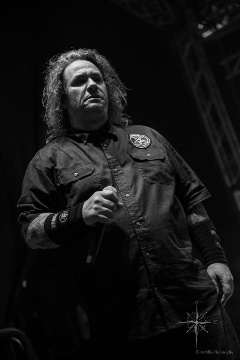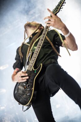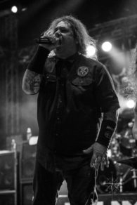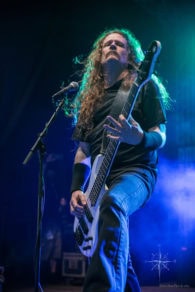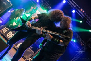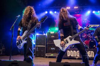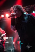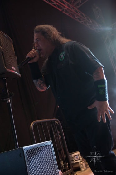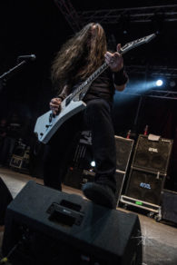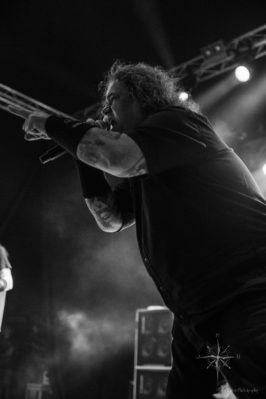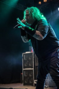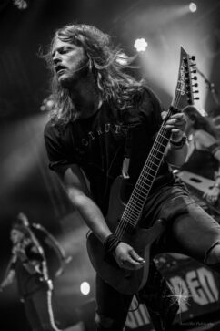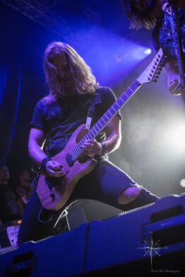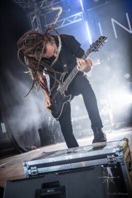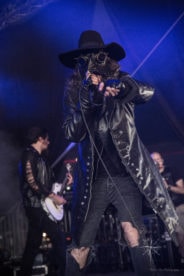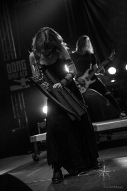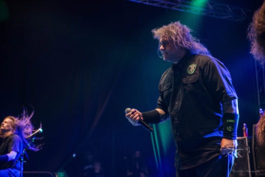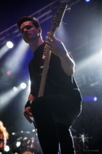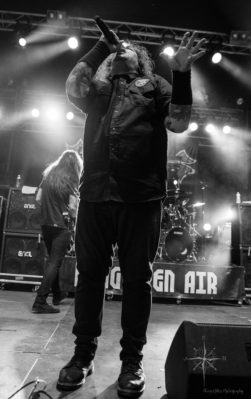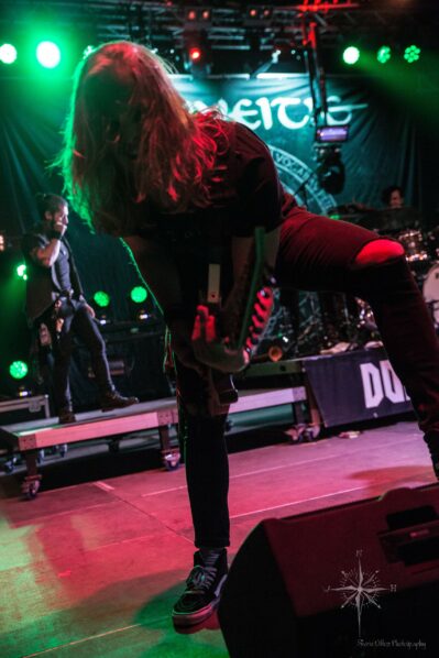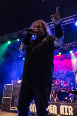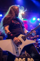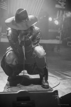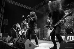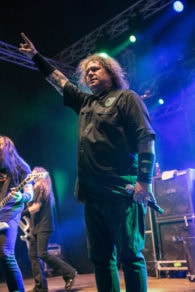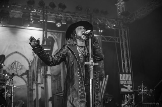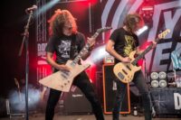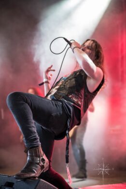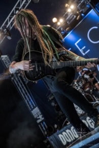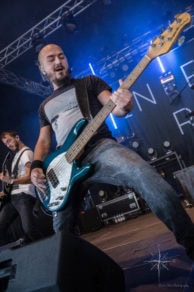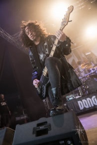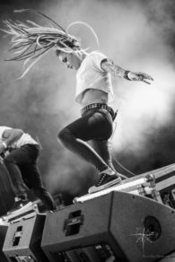 Tyler Leads, fünf Jungs aus Recklinghausen, waren angekündigt als Hard Rock mit Stoner Einflüssen und das bekam ich auch, und zwar richtig dicke. Vor allem aber eine riesige Menge Spielfreude. Ganz in ihrem Element fegten sie in einem Wirbelwind aus fliegenden Haaren, Drehungen mit und ohne Gitarre, Chuck Berry Gedächtniswalk und purer Euphorie so heftig über die Bühne, dass sich die beiden Gitarristen fast ummoshten. So muss Rock’n’Roll! Johnny der Sänger brachte sogar das Wunder zuwege kaputtere Stiefel als ich zu tragen. Wo an meinem rechten Stiefel die Sohle von Sicherheitsnadeln am Leder gehalten wird, schauten bei seinem linken Stiefel einfach unten die Zehen raus. Grandios geil, genau nach meinem Geschmack! „Sven! Du musst die Stiefel drauf kriegen!“ brüllte ich ihm noch zu, aber als erfahrender Fotograf hatte er die natürlich längst drauf.