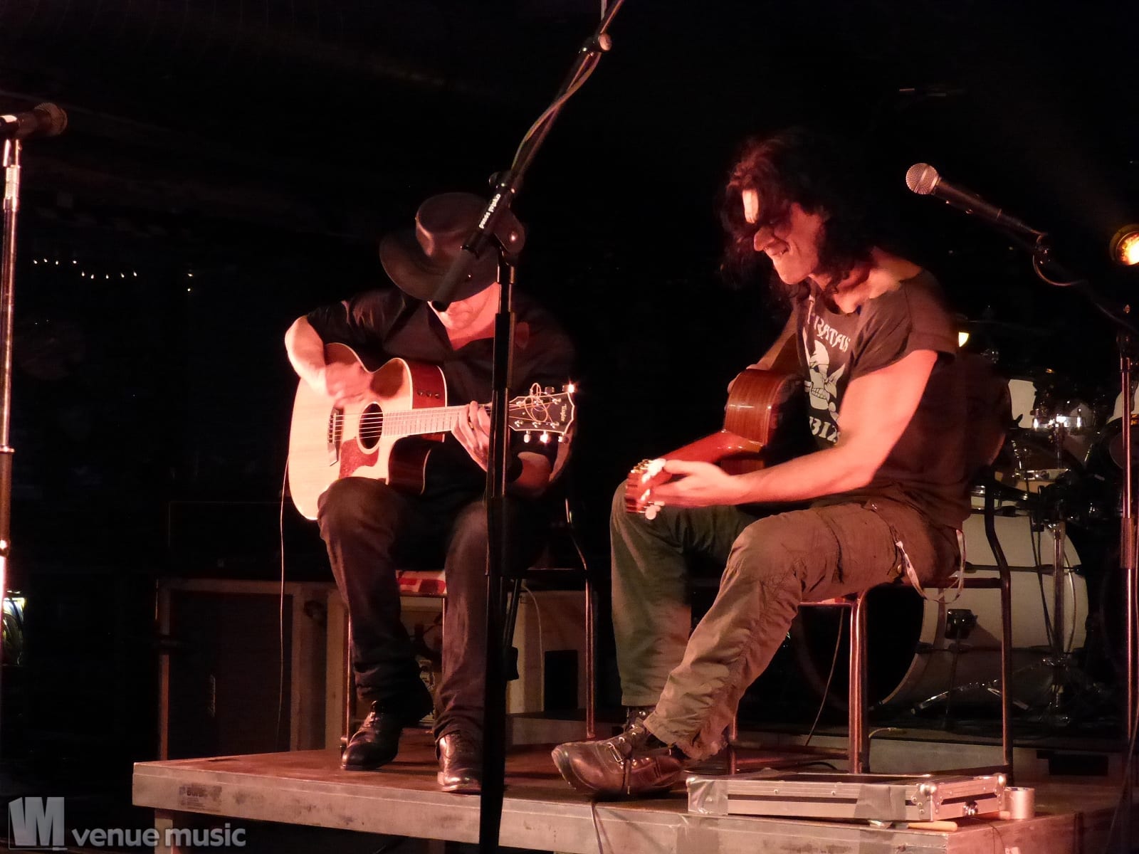 Als Vorband hatte er sich seine Kumpels von Vagabundos de Lujo mitgebracht. Das war erst einmal recht außergewöhnlich, bestand ihre Musik doch ausschließlich aus zwei Akustikgitarren. Aber die wussten sie zu bedienen und wie der Name schon vermuten lässt, war der Sound sehr spanisch – kommen die beiden doch von der schönen spanischen Insel Ibiza. Das war in der Tat mal etwas anderes, wobei nicht alle im Publikum so richtig damit warm wurden. Doch als sie dann den Song „Mexico“ coverten, steuerte das Publikum den Text dazu ein und die beiden hatten gewonnen. Vielleicht nicht jedermanns Sache, aber eindeutig zwei richtig gute Gitarristen. Die halbe Stunde ging doch schnell vorbei.