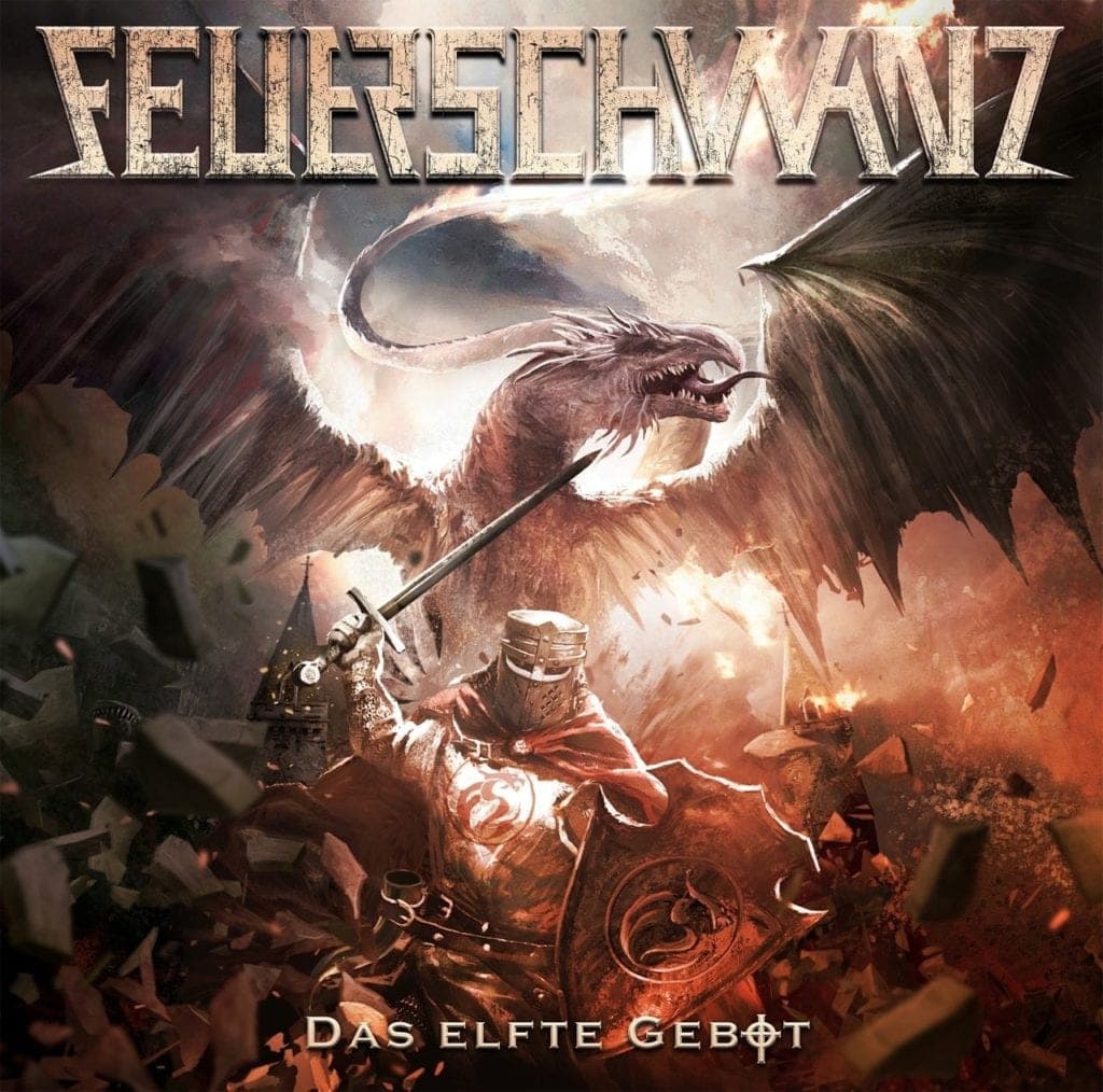 Mit orientalischen Klängen geht es los. „Meister der Minne“ hat sich schon während dem ersten Hördurchgang in mein Herz gespielt. Ein echt rockiger Ohrwurm mit exotischen Elementen, Screams und einem fetten Gitarrensolo. Alles, was ein moderner Minnesänger heutzutage so braucht, um sich in das Herz seiner Angebeteten zu spielen. „Metfest“ wurde ja schon als Single ausgekoppelt und ist der Song auf dem Album, der einen mit seinem Mitgöhl-Refrain direkt abholt und in Feierlaune versetzt. Auch ausgekoppelt wurde „Das Elfte Gebot“ – lebt jeden Tag so, als wäre es Euer Letzter und vergesst dabei nicht zu lieben, als gäbe es kein Morgen mehr. Hymne und Lebenstipp zugleich. „Kampfzwerg“ klingt im ersten Moment, als hätte man einige Feuerschwanz-Songs genommen, zusammengeschmissen und ordentlich durchgemischt. Heraus gekommen ist ein Trinklied über „Kampfzwerge“ – echte Männer also. Ok, sorry: Echte Männer – und Frauen – mit Bärten. In „Im Bauch des Wals“ geht es wieder nachdenklicher zu und der Song zeigt, wieso Feuerschwanz keine reine Comedy-Band mehr sind oder wieso man sie zumindest nicht mehr nur als solche bezeichnen sollte. Es geht um die Schäden, die der Mensch der Umwelt zugefügt hat, verpackt in ein Folk-Metal-Gewand, das für einige musikalische Überraschungen sorgt. Aber nach einem ernsteren Song, muss wieder ein Partysong folgen, damit das Gemüt nicht allzu sehr abkühlt. „Mission Eskalation“ lässt uns eskalieren und ich meine im Refrain den typischen „Kissin‘ Dynamite“-Style herauszuhören. Mit irischen Klängen wird uns die „Schildmaid“ vorgestellt mit singbarem Refrain und harten Gitarrenriffs. Eindrucksvoll ist auch der nächste Song „Malleus Maleficarum“ über den „Hexenhammer“, ein Werk zur Legitimation der Hexenverfolgung, das der Theologe und Dominikaner Heinrich Kramer im Jahre 1486 in Speyer veröffentlichte. Feuerschwanz verarbeiten das Werk in einem gewaltigen Powermetalbrett mit einem Killer-Gitarrensolo und gewaltigen Chören. Und wo wir gerade bei Powermetal waren: „Lords Of Powermet“ passt genau in diese Schublade und es scheint, als wäre der Song eine Steigerung der Krieger des Mets. Als würde er aus der Feder von Luca Turilli höchstpersönlich stammen. Eine bombastische Hymne mit fetten Screams von Hodi und erneut krassen Gitarrensoli von Hans, die einem die Kinnlade auf die Tischplatte knallen lassen. Eigentlich bräuchte ich jetzt eine Verschnaufpause, aber die ist mir nicht gegönnt, denn „Totentanz“ und „Unter dem Drachenbanner“ hauen in die gleiche Kerbe und lassen das Album mit viel Schwung enden.