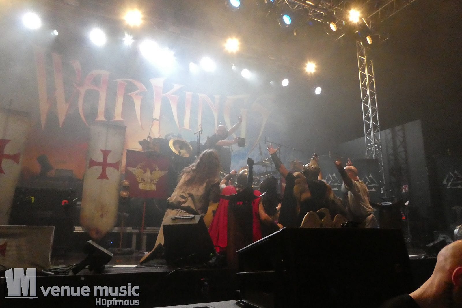 Warkings hatte ich bereits als Support von Powerwolf gesehen und sie haben mir damals schon gefallen. Umso mehr habe ich mich gefreut, sie nun noch einmal sehen zu können. Die 2018 gegründete Power Metal Band um Georg Neuhauser stellen vier Warkings unterschiedlicher Epochen dar (Tribun, Viking, Crusader und Spartan), die sich in Valhalla getroffen haben und nun – von Odin geschickt – auf der Erde Metal verbreiten. Und das machen sie richtig gut ;) Wer sie sich live anschauen will, hat z.B. auf dem Castle Rock am Freitag den 30.Juni dazu die Gelegenheit!