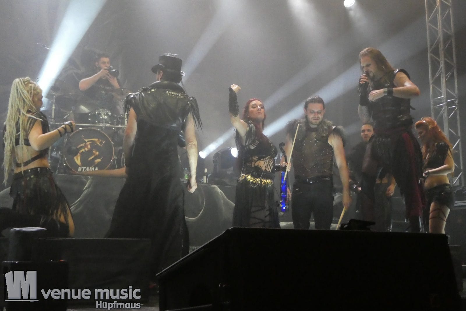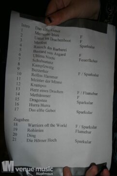 Zu Feuerschwanz braucht man nicht viel sagen, außer: „Met und Miezen!“ – auch wenn der Song dieses Mal gar nicht auf der Setlist stand. Dafür aber 7 Titel des aktuellen Albums „Memento Mori“, unter dessen Namen ja auch die Tour lief. Aber auch Songs wie „Das Elfte Gebot“ oder „Metfest“, „Methämmer“ und „Schubsetanz“ standen auf dem Programm. Natürlich gab es zu letzterem auch einen ordentlichen Schupsetanz im Publikum – wie sich das gehört.