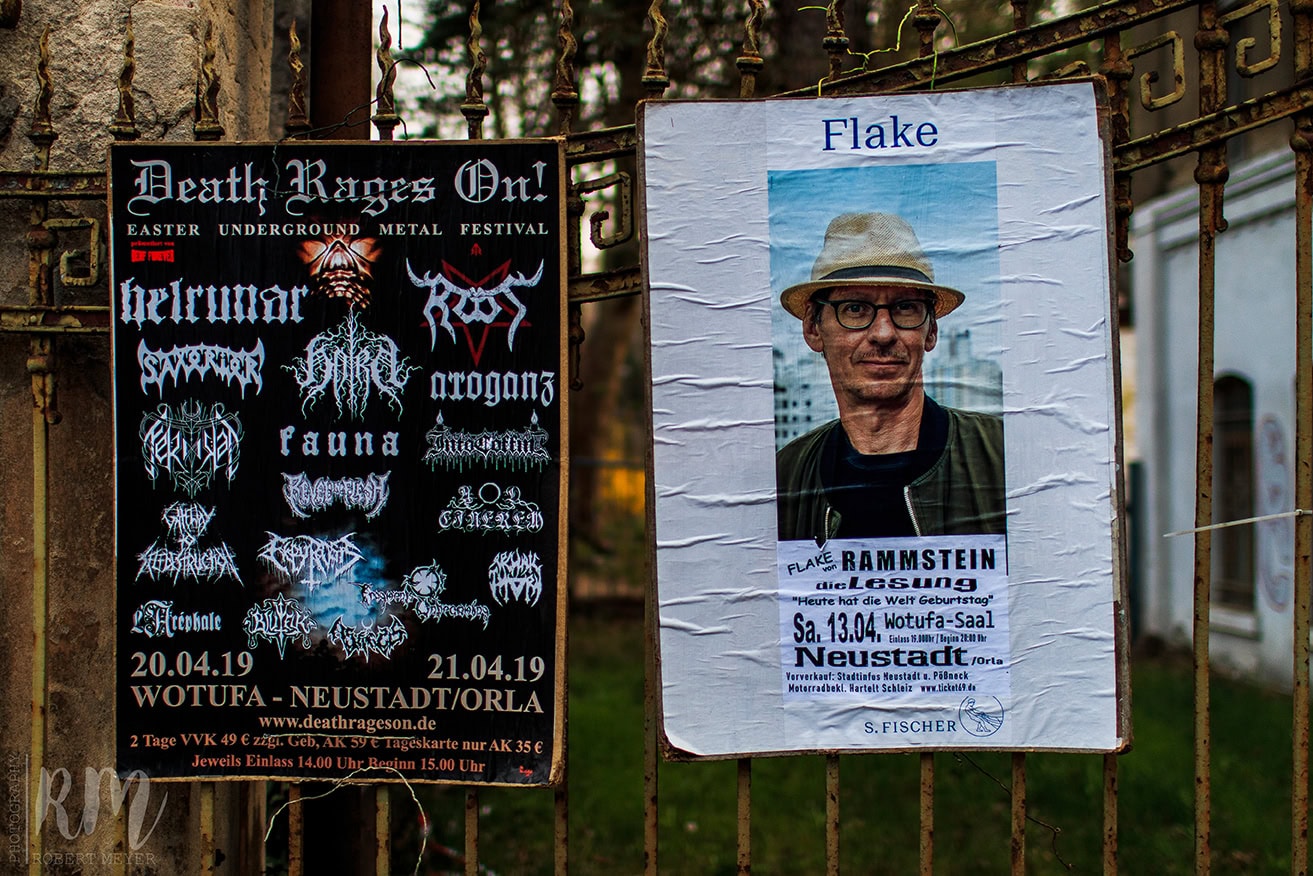 So eben bringen Rammstein ihre neue Single und umstrittene Video „Deutschland(*) auf dem Markt, bevor im Mai das neue Album an den Start geht. Und Keyboarder der Band Flake- Christian Lorenz ist mit seinem aktuellen Buch „Heute hat die Welt Geburtstag“ (Amazon(*), Apple Book Store(*)) auf diversen Lesungen unterwegs so auch am 13. April in  der Wotufa in Neustadt (Orla). Lange musste ich warten bis eine seiner Lesung mal in meinem Terminplan passt. Also nix  wie hin, wo kann man sonst einen der wenigen deutschen Weltstars so nahe kommen als bei solch einem Event. 18.30 Uhr sind wir da, ein paar wenige Fans stehen schon vor der verschlossenen Tür. Nach dem Einlass können wir in der dritten Reihe Platz nehmen und warten gespannt auf dem Beginn der Vorlesung. Die Stühle des Wotufa Saales sind etwas später restlos belegt.