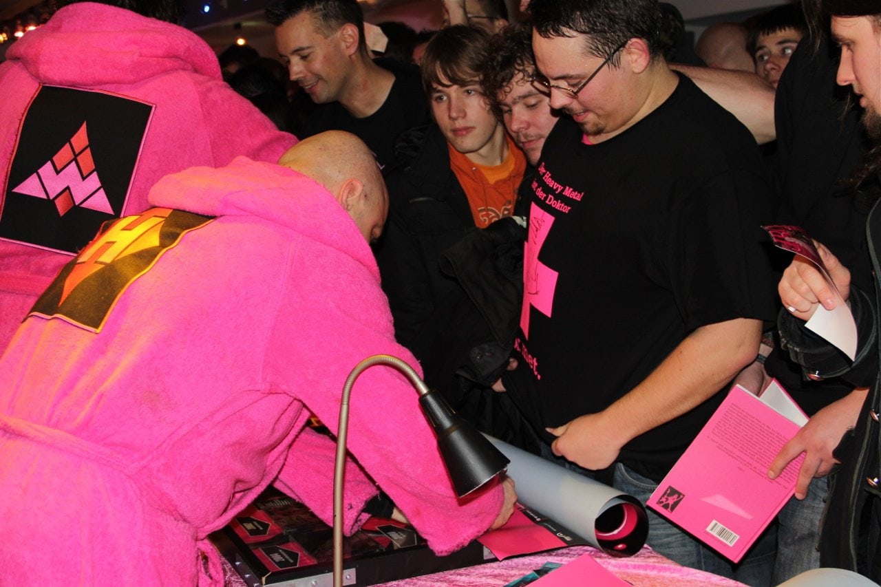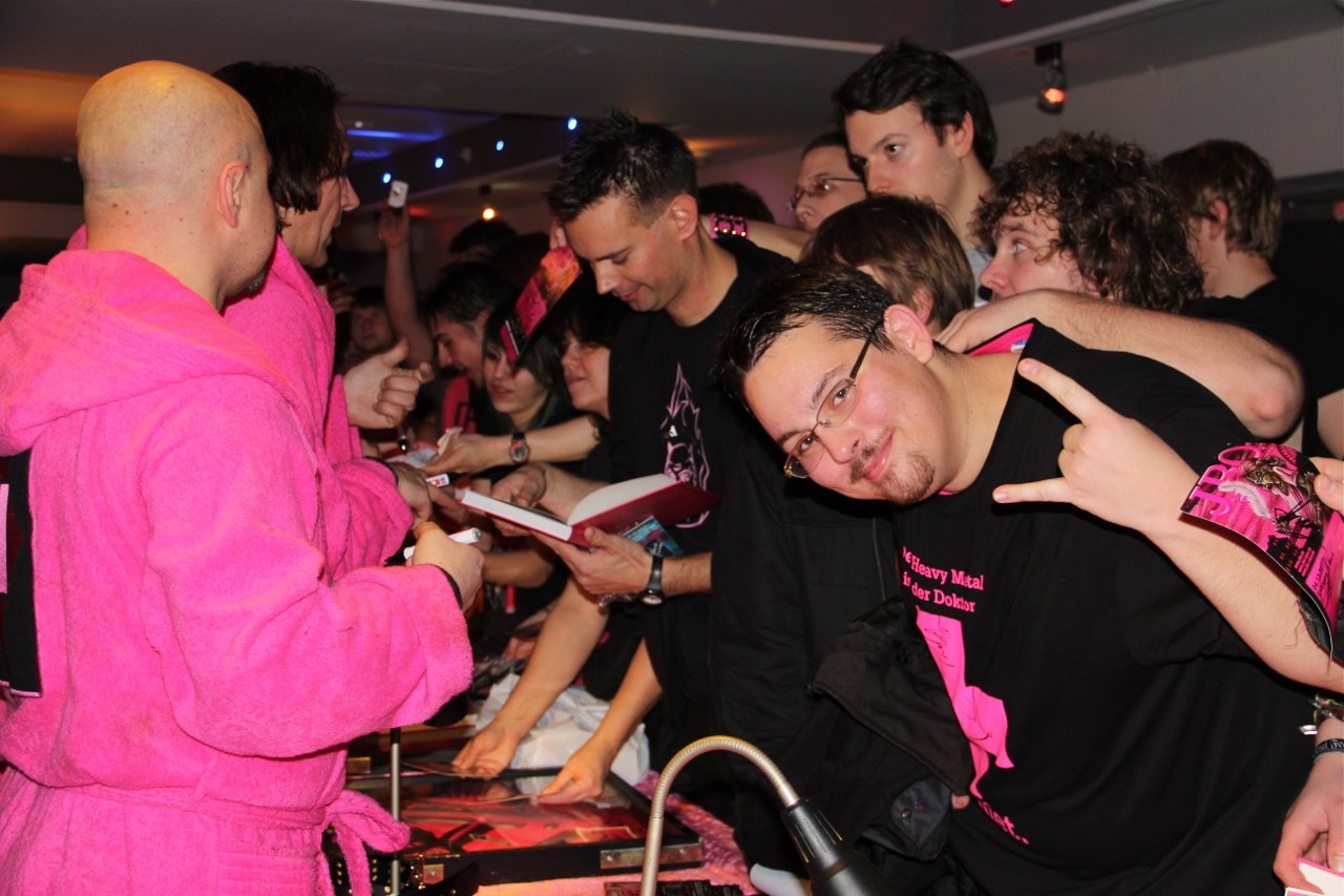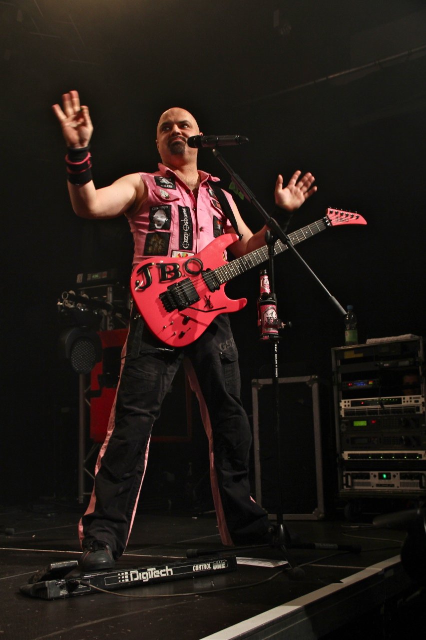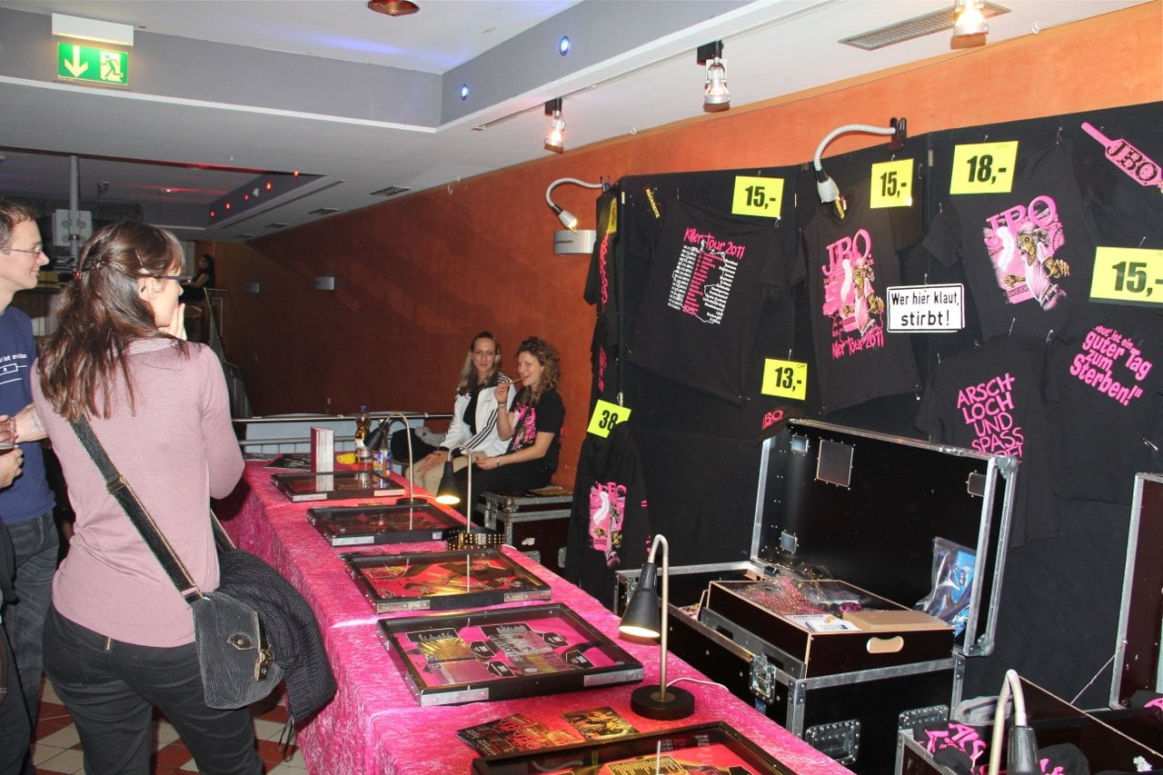 Die Setlist umfasste wieder ganz neue und ganz alte Songs und sehr viel aus der Zeit dazwischen, eine der besten denkbaren Mischungen, obwohl es natürlich nie eine Setlist geben wird, die alle Fans zufrieden stellt. Die Show wurde bei dieser Tour gleich von zwei Show-Men unterstützt, die sich gemeinsam mit der Band einiges haben einfallen lassen. Zum ersten Deutschland-Konzert der Tour in Erlangen waren Kontrust aus Österreich als Support dabei, den Rest der Tour begleiteten uns Krautschädl – ebenfalls aus Österreich. Erst mal viel Spaß mit den ersten Fotos, in den nächsten Tagen werden wir Euch hier und bei J.B.O. Fans nicht nur mit weiteren Fotos, sondern auch Geschichten aus dem Tourbus versorgen.