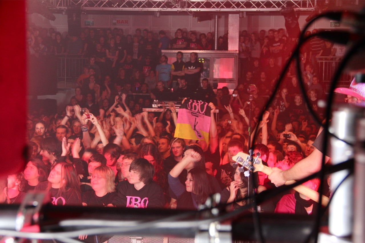 Die Killer Tour 2011 ist vorbei und damit auch unser Job als „embedded journalists“ bei dieser Tour. Seit gestern wieder im heimischen Office, kämpfen wir uns durch mehrere Tausend Fotos, die wir und natürlich die Dschäibiporter auf der Tour gemacht haben und liefern Euch hier die umfangreichen Galerien. Den Anfang machen wir natürlich mit dem ersten Konzert der Deutschland-Tour im E-Werk in Erlangen. Das erste Heimspiel dieses Teils der Tour. Nun ist das E-Werk in Erlangen in Sachen J.B.O. Konzerte natürlich über jeden Zweifel erhaben, aber ein wenig Aufregung war schon dabei, ob und wie das neue Bühnen- und Lichtdesign auf der relativ kleinen Bühne wirken würden. Aber egal auf welcher Bühne: Es wirkt und funktioniert. Und das mit relativ wenig Aufwand, da keine komplette Lichtanlage mit auf Tour genommen wurde, sondern „nur“ ergänzendes Equipment zum jeweiligen Hauslicht (der große Truck war trotzdem voll). Oder um mal einen Fachbegriff zu verwenden: Die Produktion wurde für maximal viel Bums für’s Geld geplant und optimiert. Übrigens ist die Lichtshow so beeindruckend, dass im Laufe der Tour öfter Witze darüber gemacht wurde, dass Stunky – Meister des Lichts bei J.B.O. – jetzt ganz nahe an seinem heimlichen Ziel sei: So viel Licht auf der Bühne, dass man die komischen Musiker gar nicht mehr sieht. Und nächstes Jahr ginge es dann weiter unter dem Titel „Stunkys Lightshow – akustisch untermalt von J.B.O.“ ;)