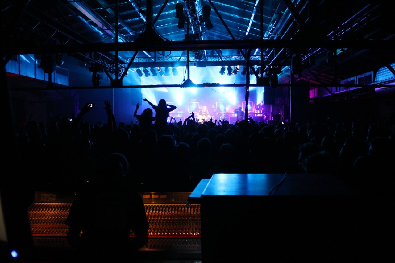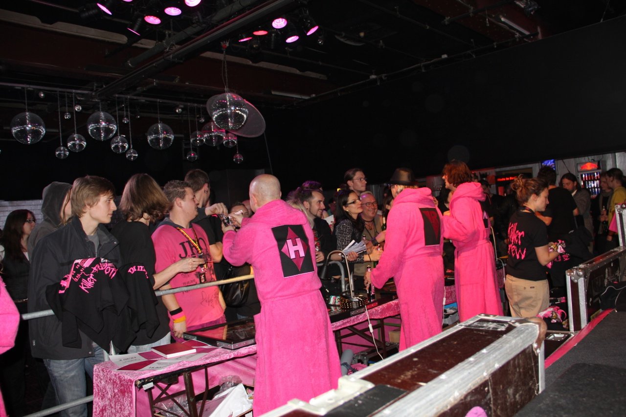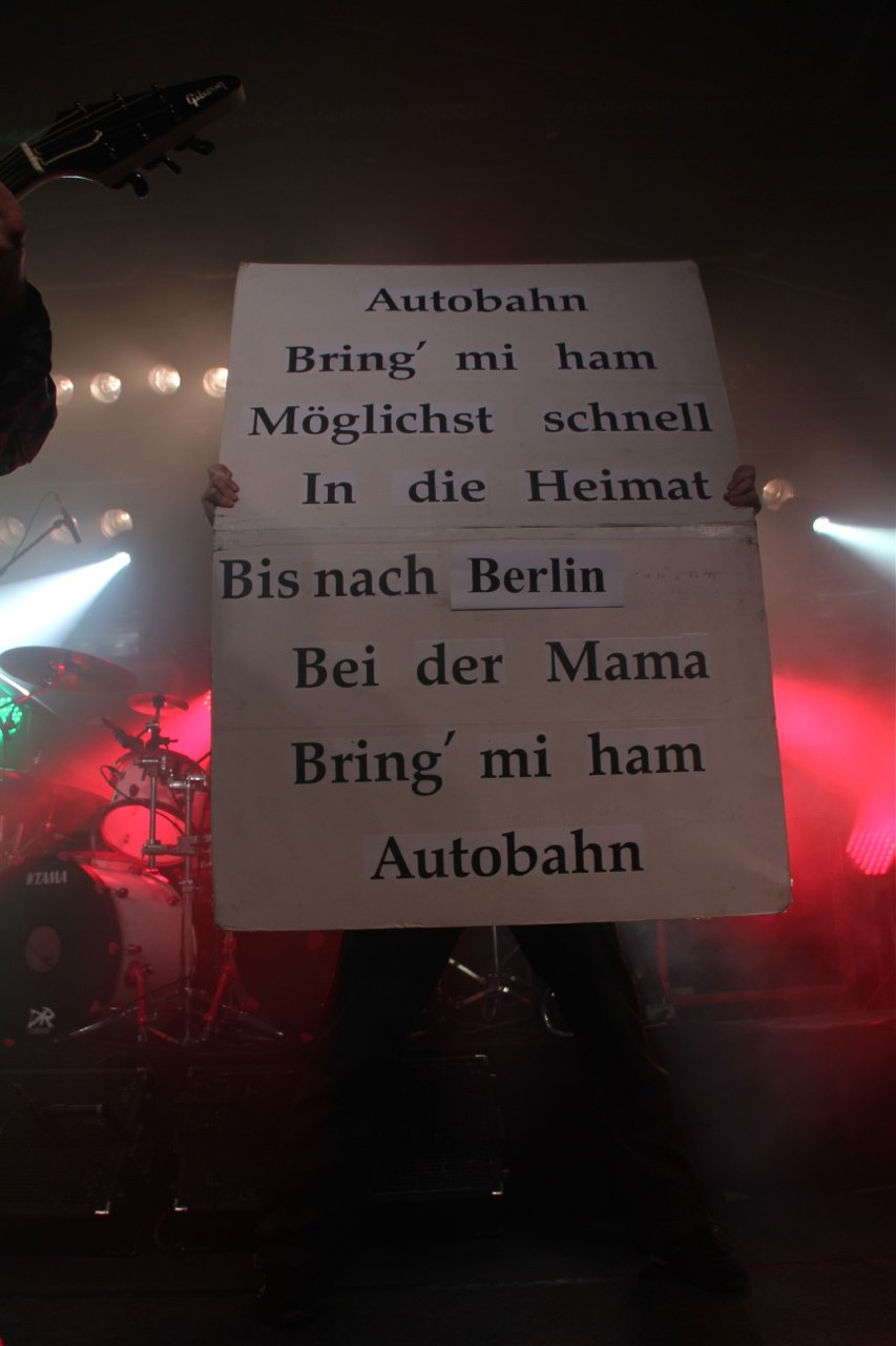 Berlin war neben Stuttgart bereits im Vorverkauf ausverkauft, also zumindest die Frage „Wie viele Besucher werden es heute?“ war schon vorab geklärt. Auf jeden Fall war der Postbahnhof ein erstes Highlight in Sachen Catering, wirklich schlecht war es auf der Tour zwar nirgends (höchstens zu wenig bzw. zu früh abgeräumt), aber Berlin war schon mal sehr lecker. Das entschädigte für den doch recht weiten Weg zwischen Bühne und Backstage-Bereich, zu dem auch noch eine Wendeltreppe gehörte. Aber das Produktionsbüro – in Berlin teilten wir es uns wieder mit Mama ;) – war praktisch direkt neben der Bühne. Und dann war da noch die Aussicht die folgende Nacht in einem stationären Bett in einem Hotel zu verbringen. Einerseits Grund zur Freude, da ich mich bis zu diesem Tag immer noch nicht so recht an das Schlafen in einer fahrenden Koje gewöhnt hatte, andererseits ist das schon etwas früh, wenn bereits nach dem dritten Konzert der Tour ein Tag Pause auf dem Plan steht – wie soll man sich da auch an die Koje gewöhnen?