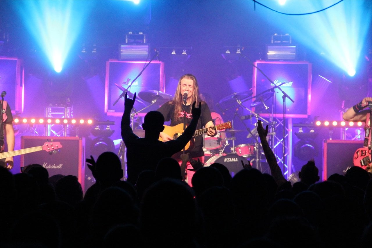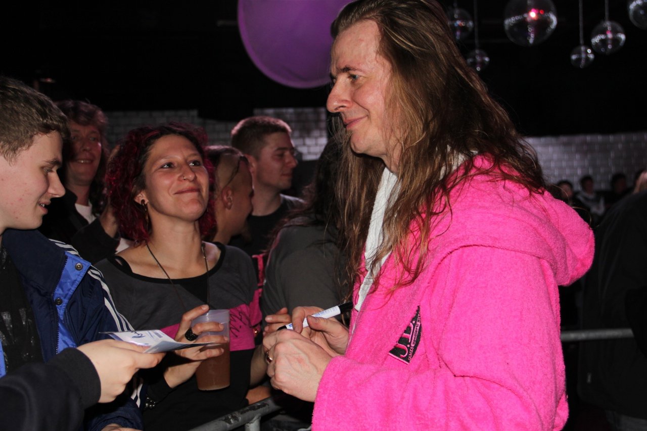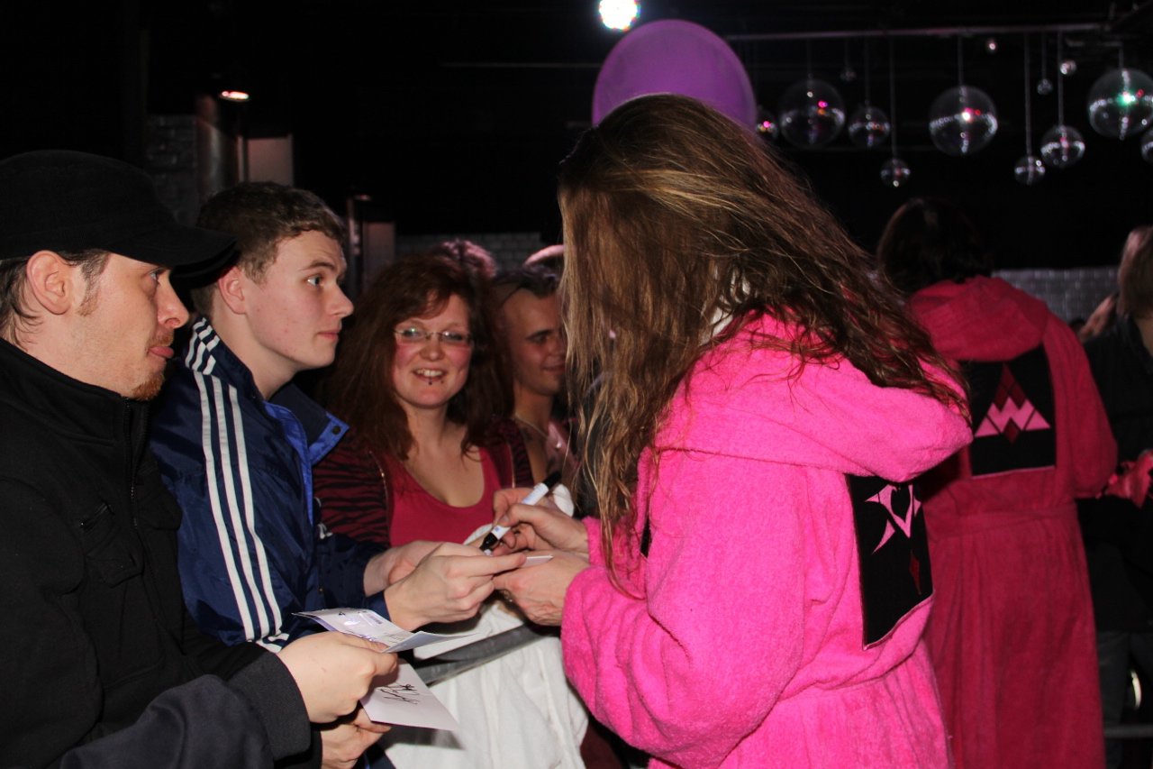 Berlin war neben Stuttgart bereits im Vorverkauf ausverkauft, also zumindest die Frage „Wie viele Besucher werden es heute?“ war schon vorab geklärt. Auf jeden Fall war der Postbahnhof ein erstes Highlight in Sachen Catering, wirklich schlecht war es auf der Tour zwar nirgends (höchstens zu wenig bzw. zu früh abgeräumt), aber Berlin war schon mal sehr lecker. Das entschädigte für den doch recht weiten Weg zwischen Bühne und Backstage-Bereich, zu dem auch noch eine Wendeltreppe gehörte. Aber das Produktionsbüro – in Berlin teilten wir es uns wieder mit Mama ;) – war praktisch direkt neben der Bühne. Und dann war da noch die Aussicht die folgende Nacht in einem stationären Bett in einem Hotel zu verbringen. Einerseits Grund zur Freude, da ich mich bis zu diesem Tag immer noch nicht so recht an das Schlafen in einer fahrenden Koje gewöhnt hatte, andererseits ist das schon etwas früh, wenn bereits nach dem dritten Konzert der Tour ein Tag Pause auf dem Plan steht – wie soll man sich da auch an die Koje gewöhnen?