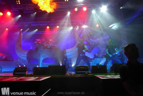 Am 28.10.2016 eröffneten Amon Amarth ihre Jomyviking Tour in Oberhausen. Mit dabei waren Grand Magus und Testament. Das Konzert war ausverkauft und entsprechend voll war die Turbinenhalle. Da hieß es mittendrin statt nur dabei.