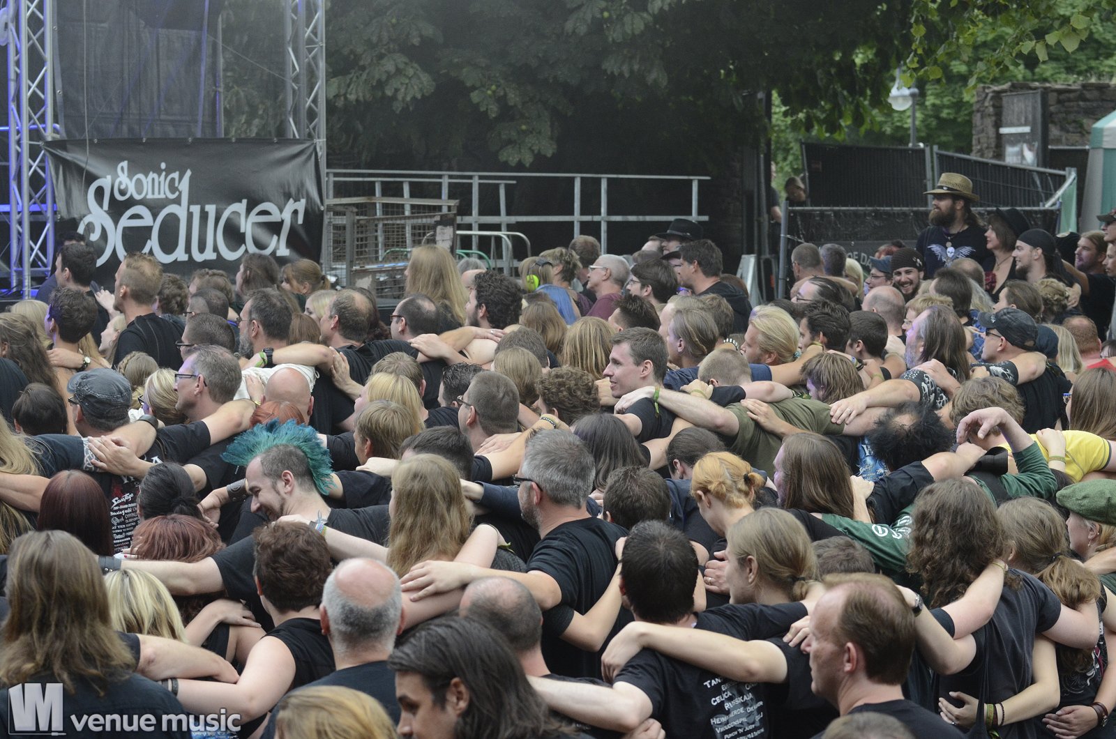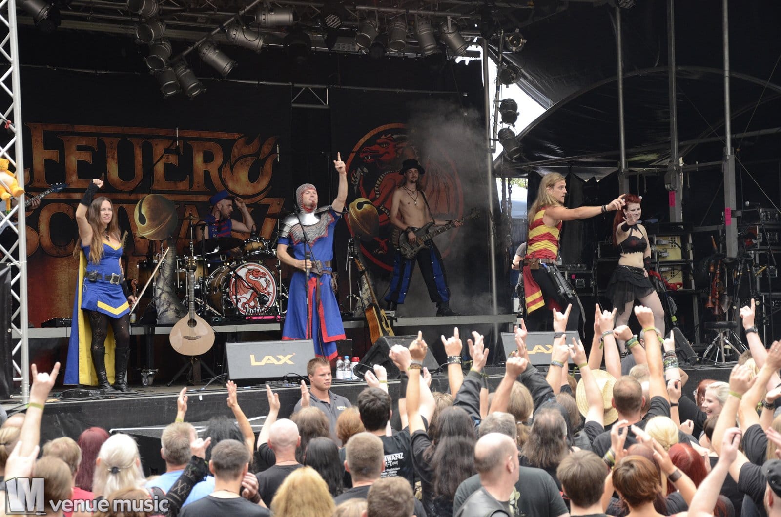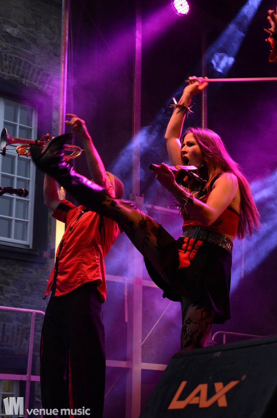 Am zweiten Tag vom Burgfolk Festival 2015 haben The O´Reillys and the Paddyhats, Punch´n´Judy, Die Kammer, Vroudenspil, Feuerschwanz, Omnia und Russkaja den Tag perfekt gemacht. Auch der kurze, aber sehr heftige Regenschauer pünktlich zum Beginn des Sets von Omnia konnten die Zuschauer nicht schrecken. Spaß haben alle Bands gemacht, aber wer sich vorher noch gefragt hat, wer überhaupt Russkaja sind und warum ausgerechnet sie Headliner sind, der wusste es spätestens nach dem ersten Song, denn sie konnten absolut überzeugen und das Publikum auf ihre Seite ziehen. Das war ganz große Klasse!