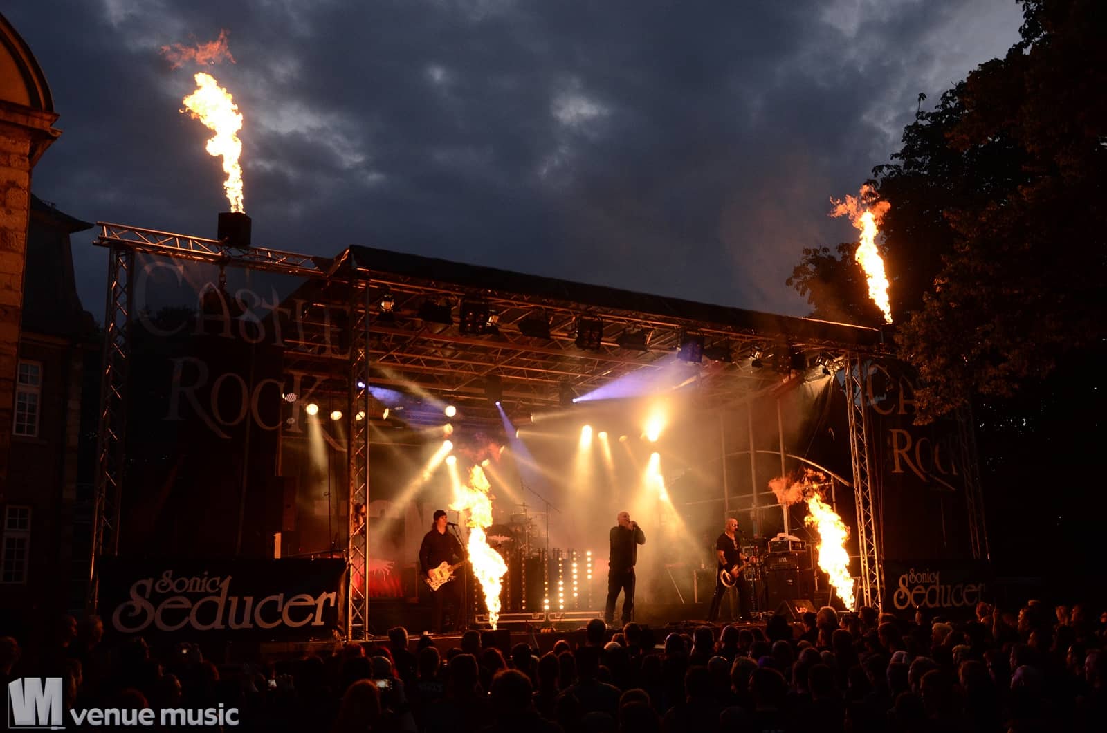 Auch am zweiten Festivaltag des Castle Rock 2016 war der Wettergott gnädig und es blieb bis auf einen kleinen Schauer trocken. Direkt zur ersten Band war es wieder richtig voll und die Stimmung prächtig.