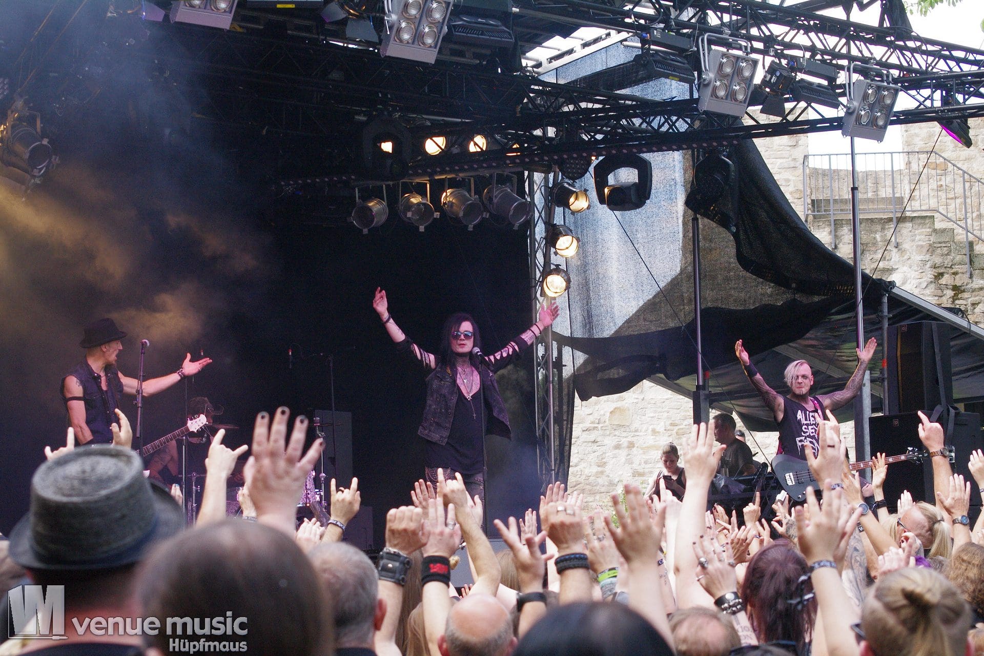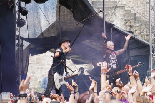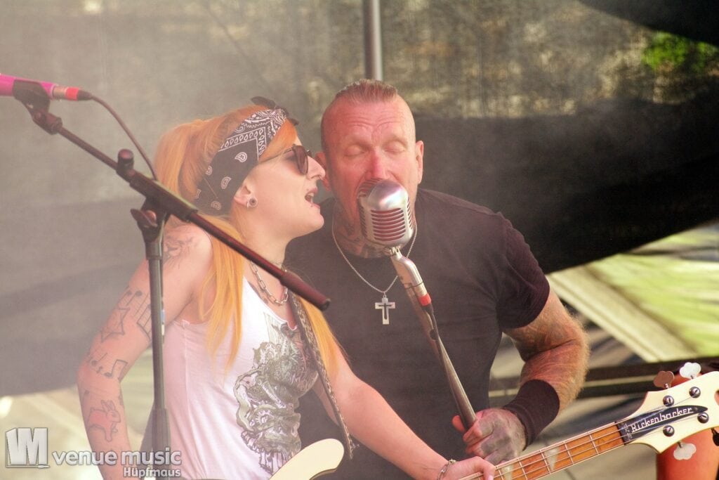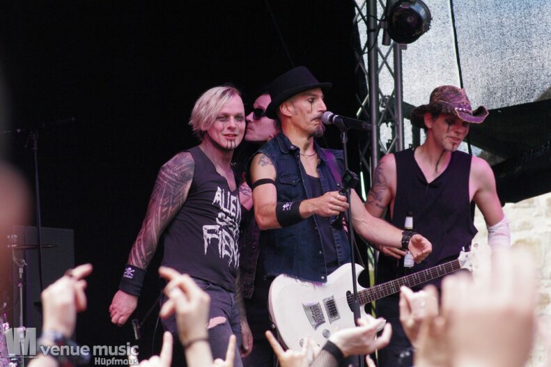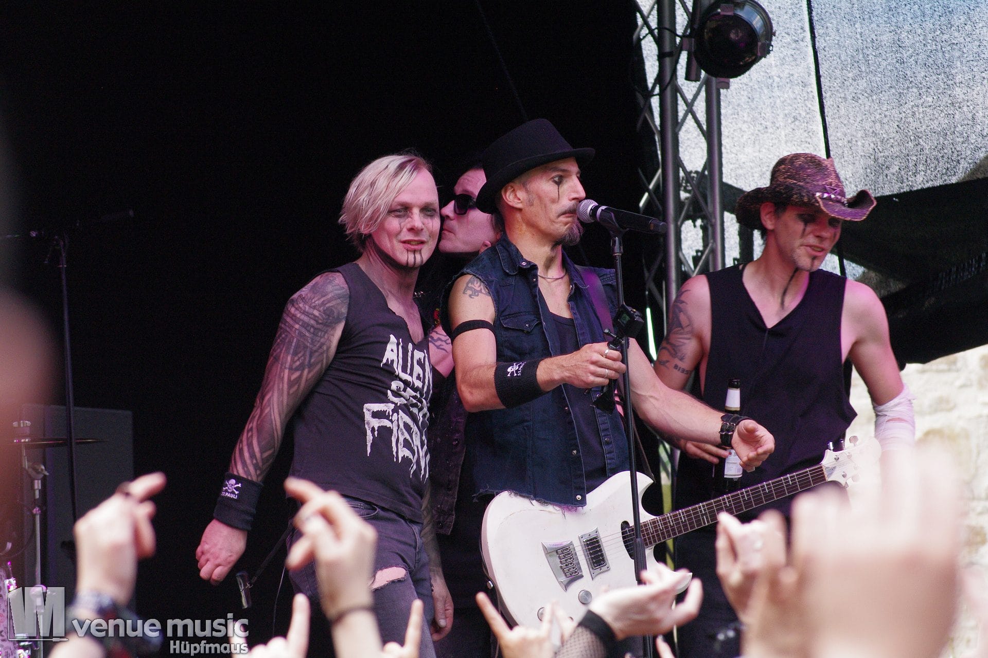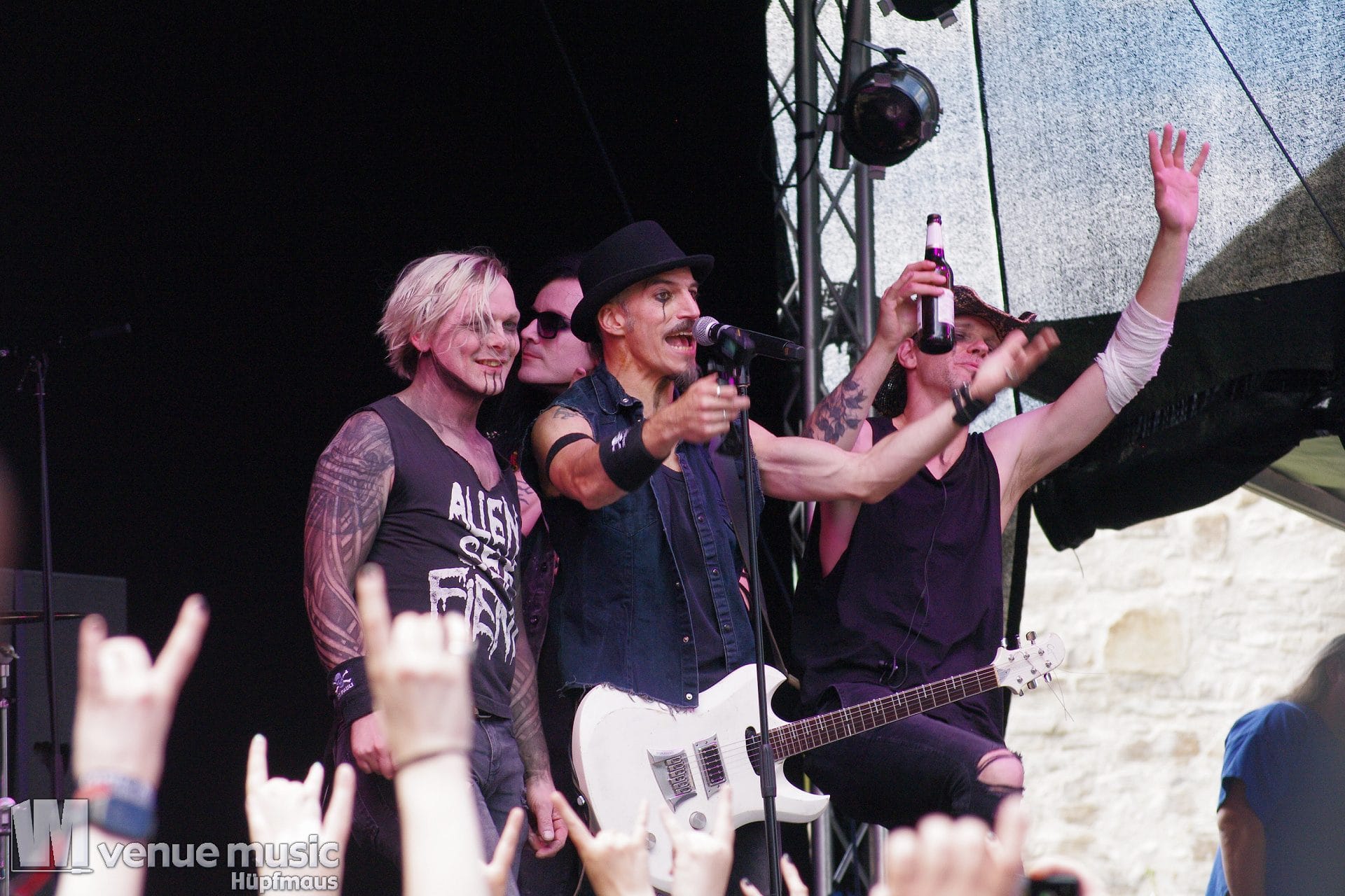 Die ertse Band für mich am zweiten Festivaltag waren Hell Boulevard, die ich bisher noch nicht gesehen hatte. Sie durften als zweite Band des Samstags das Publikum anheizen.