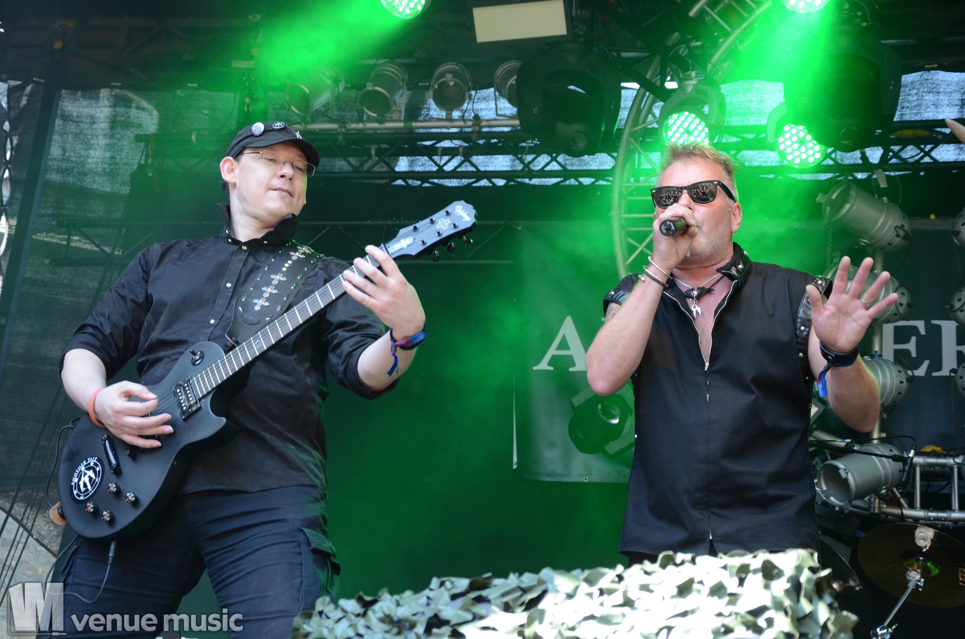 Der Soundcheck von Another Tale sorgte schon für Erheiterung, denn bereits hier ergab sich eine Interaktion von der Band mit dem Publikum „Ausziehen? Später.. Aber wer mich kennt, sagt anziehen“ ;) heiß genug zum Ausziehen war es jedenfalls, doch die Band schaffte es, viele ihrer Fans aus dem Schatten vor die Bühne zu locken – hatte man sie doch 15 Jahre lang nicht mehr auf der Bühne gesehen, seit dem sie sich nach dem Tod von ihrem ursprünglichen Fronter Frank Peter Hermsen aufgelöst hatten. Umso mehr freuten sich die Fans, die alten Songs wieder live erleben zu können.