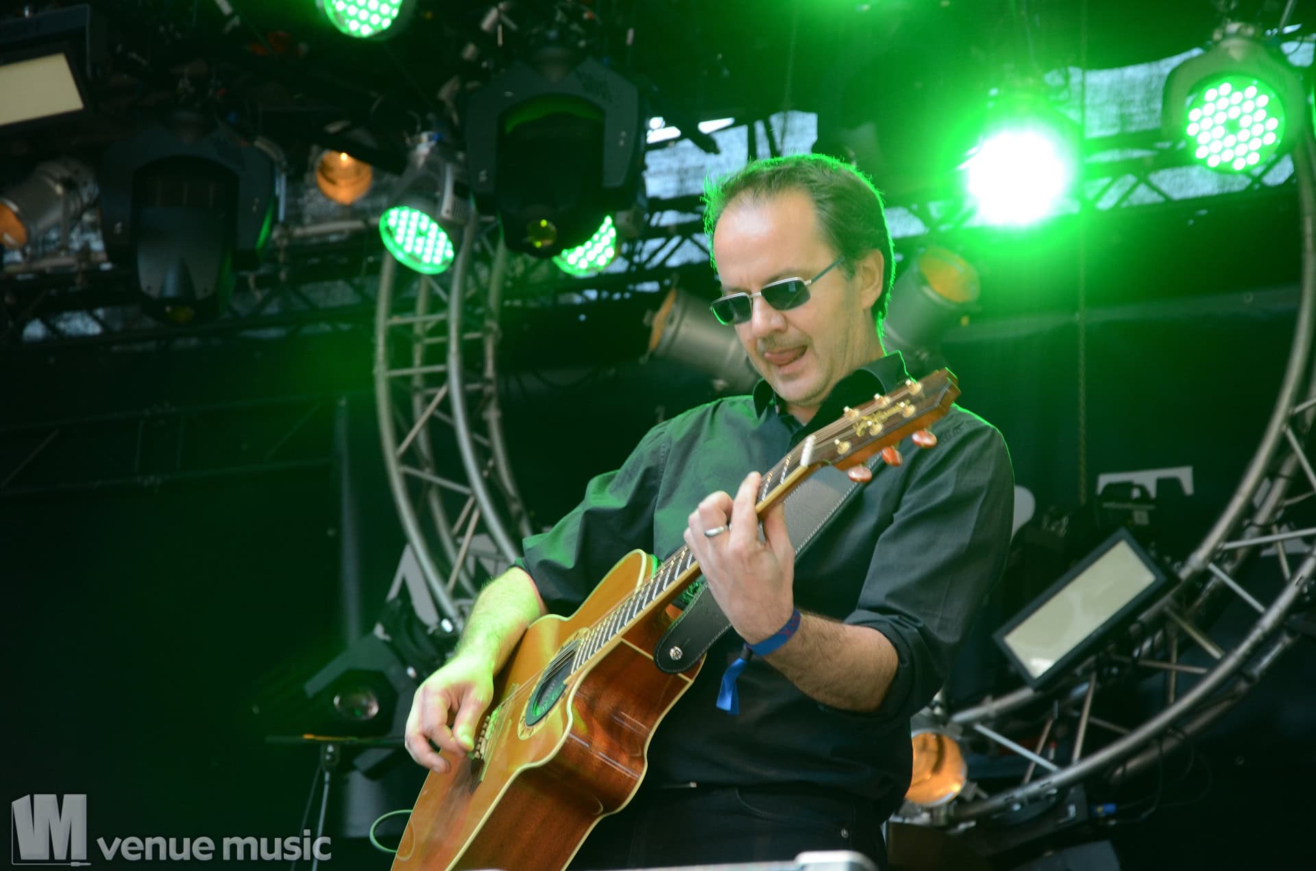 Ein, bzw. mehrere besondere modische Accessoires trug Bassist Andreas Baumert: sein Bass war mit schwarz-rot-gelben Saiten bespannt und auch seine Ohrringe ließen erahnen, dass ja die WM noch läuft – auch wenn Deutschland bereits nicht mehr dabei war..