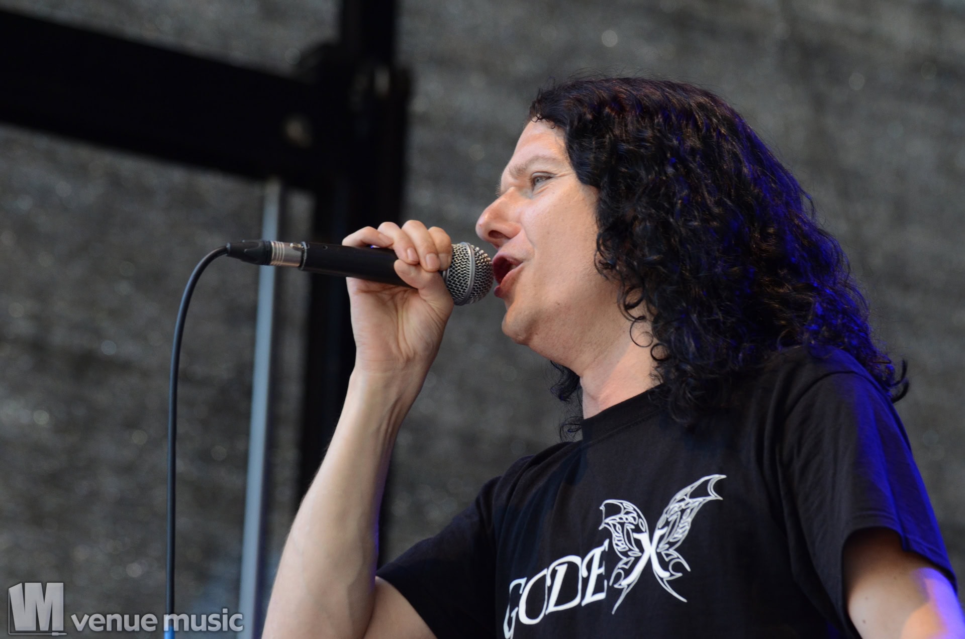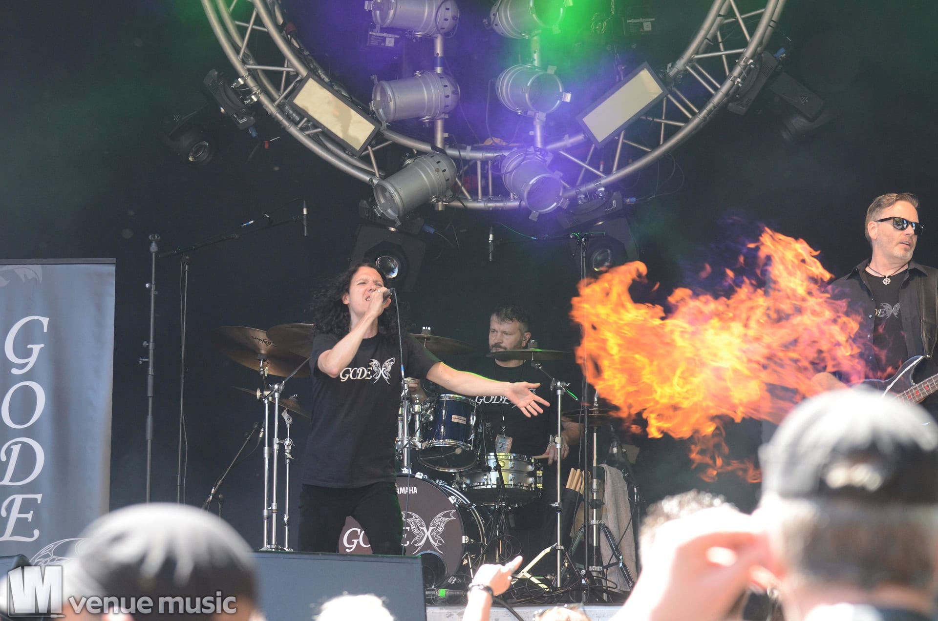 Der Sänger von Godex Tommy Tom kam mir irgendwie bekannt vor – habe ich ihn schon bei einer anderen Band gesehen? hmm.. keine Ahnung, komme nicht drauf. Seine ehemalige Band Thora sagt mir auch nichts. Aber die Stimme, die kommt einem schon bekannt vor. Sie passt optimal zu dem Gothic Rock der Band und erinnert an Ville Vallo von Him. Also musikalisch und gesanglich war es schon ein toller Auftritt, aber mir persönlich ein wenig zu ruhig, mich konnte die Band nicht so ganz in ihren Bann ziehen – wie so einige andere auch, denn im Vergleich zu vorher war es vor der Bühne ein wenig lichter geworden. Aber draußen auf der Wiese im Schatten bei einem kühlen Getränk konnte man der Musik ja auch lauschen, wobei es für die Künstler natürlich schöner ist, wenn es vor der Bühne so richtig voll ist.