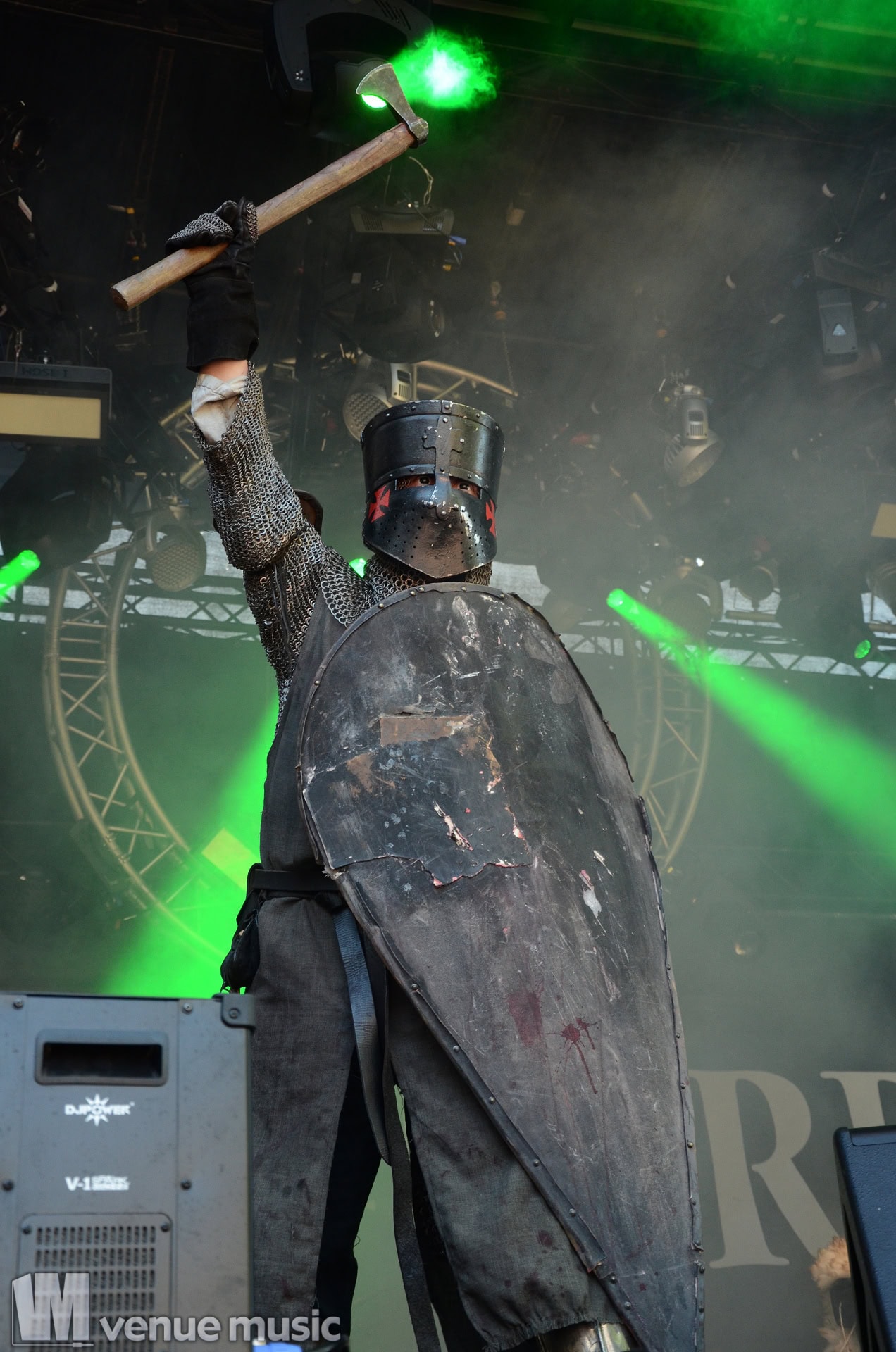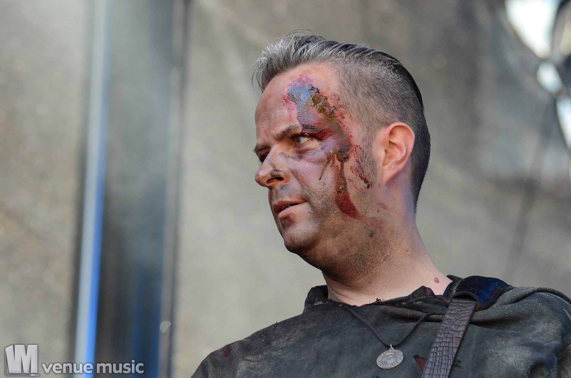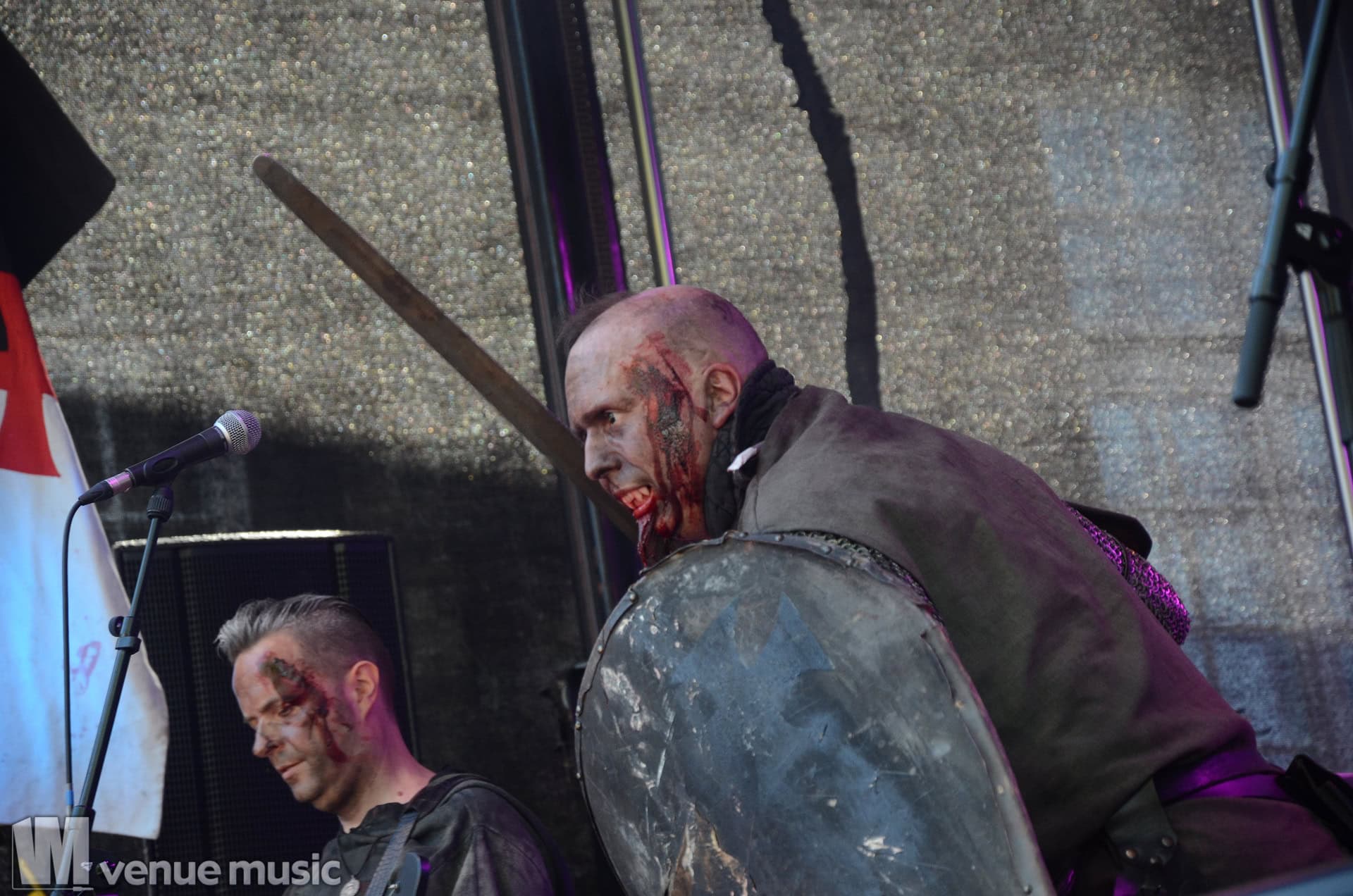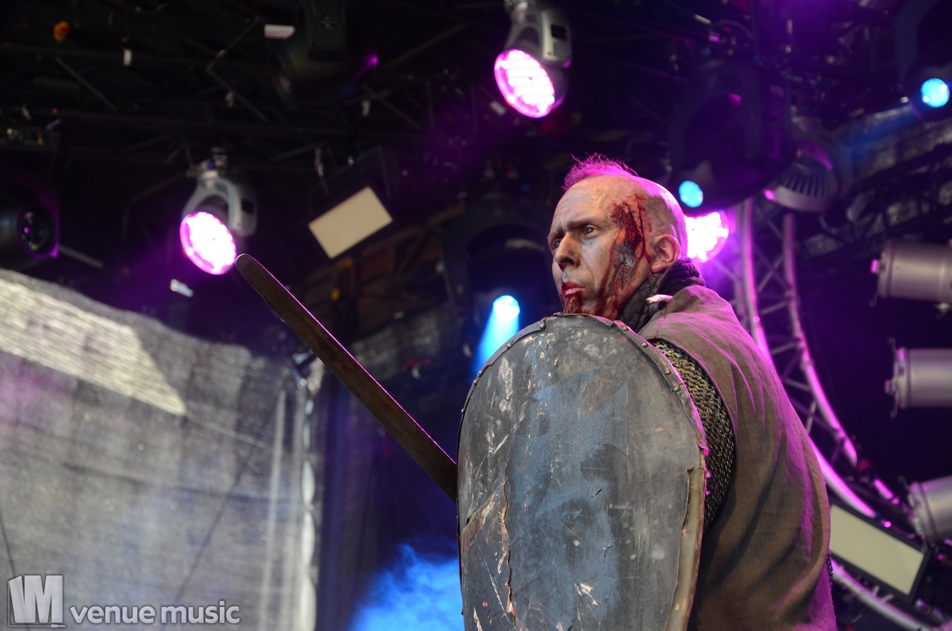 Einiges mehr an Action auf der Bühne wurde dann bei Heimataerde geboten, die von Michael Bohnes mit den Worten „ein bisschen Burgfolg muss sein“ angekündigt wurden. Dort sie schließlich schon häufiger zu Gast gewesen. Auch wenn die Band als Ritter auf der Bühne steht, so ist sie doch eher dem Elektro zuzuordnen, selbst wenn sie verschiedene andere (mittelalterliche) Elemente mit einbezieht. Laut Aussage von Frontmann und Bandgründer Ashlar von Megalon waren in die Show ein paar neue Elemente eingebaut. Und die Band ist schließlich Mittelalter, also mittelalt ;)