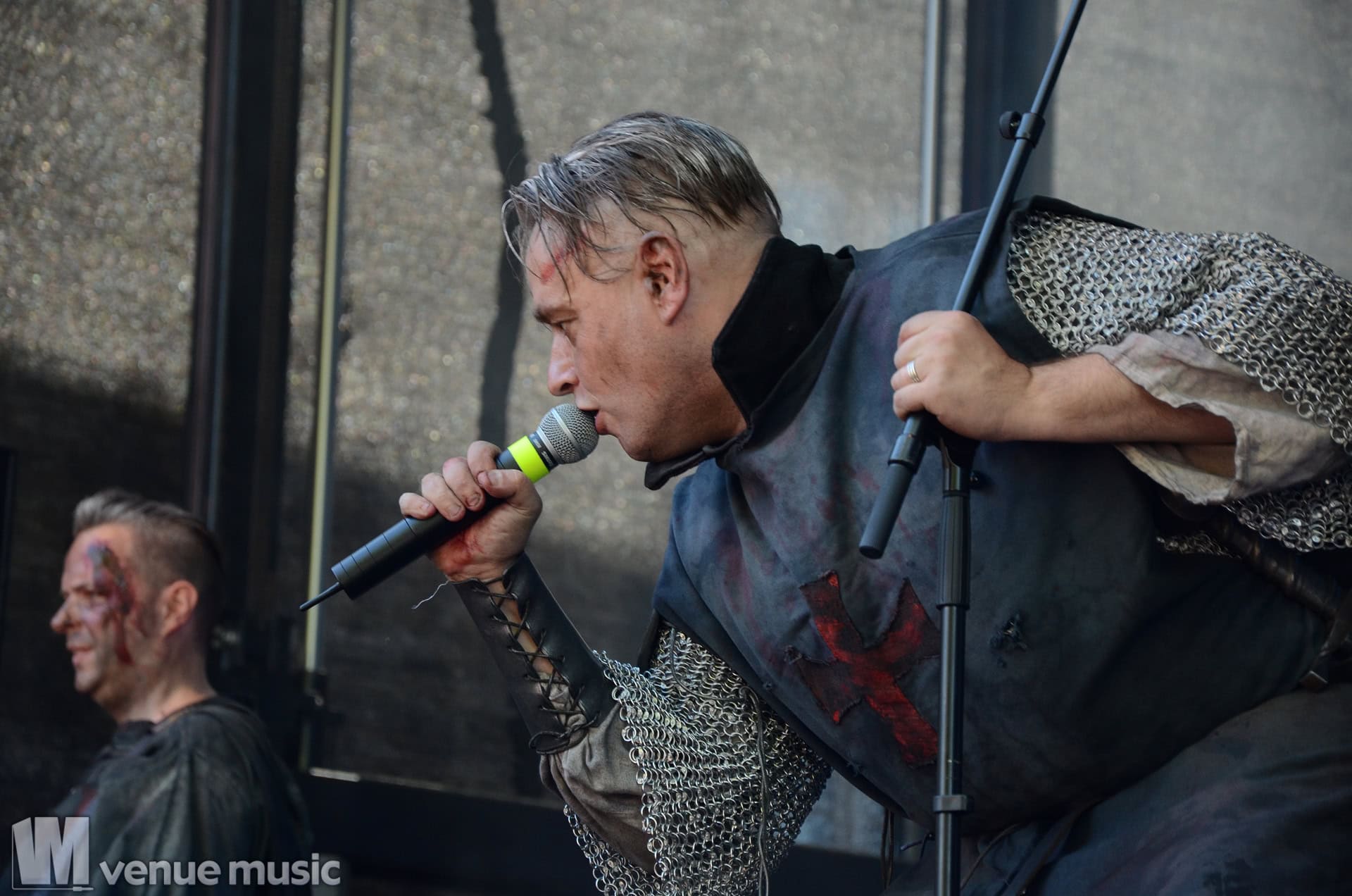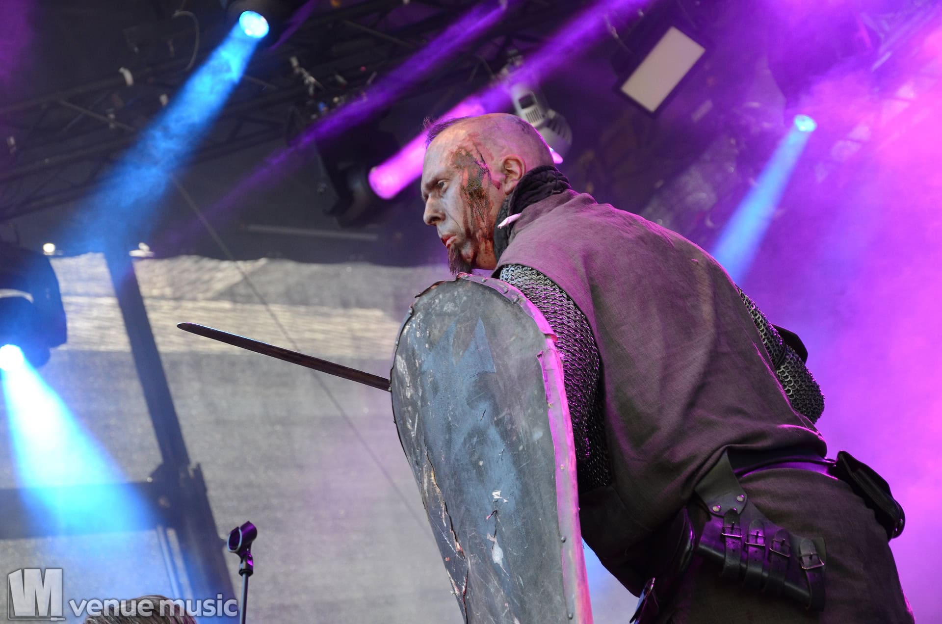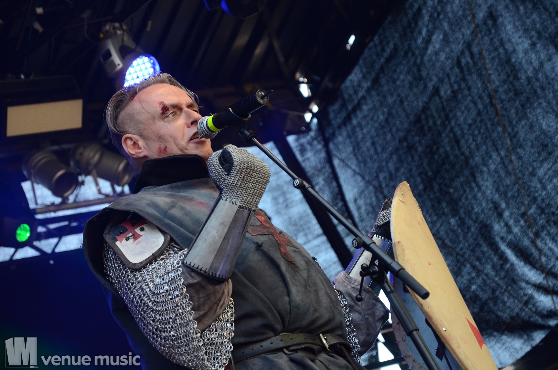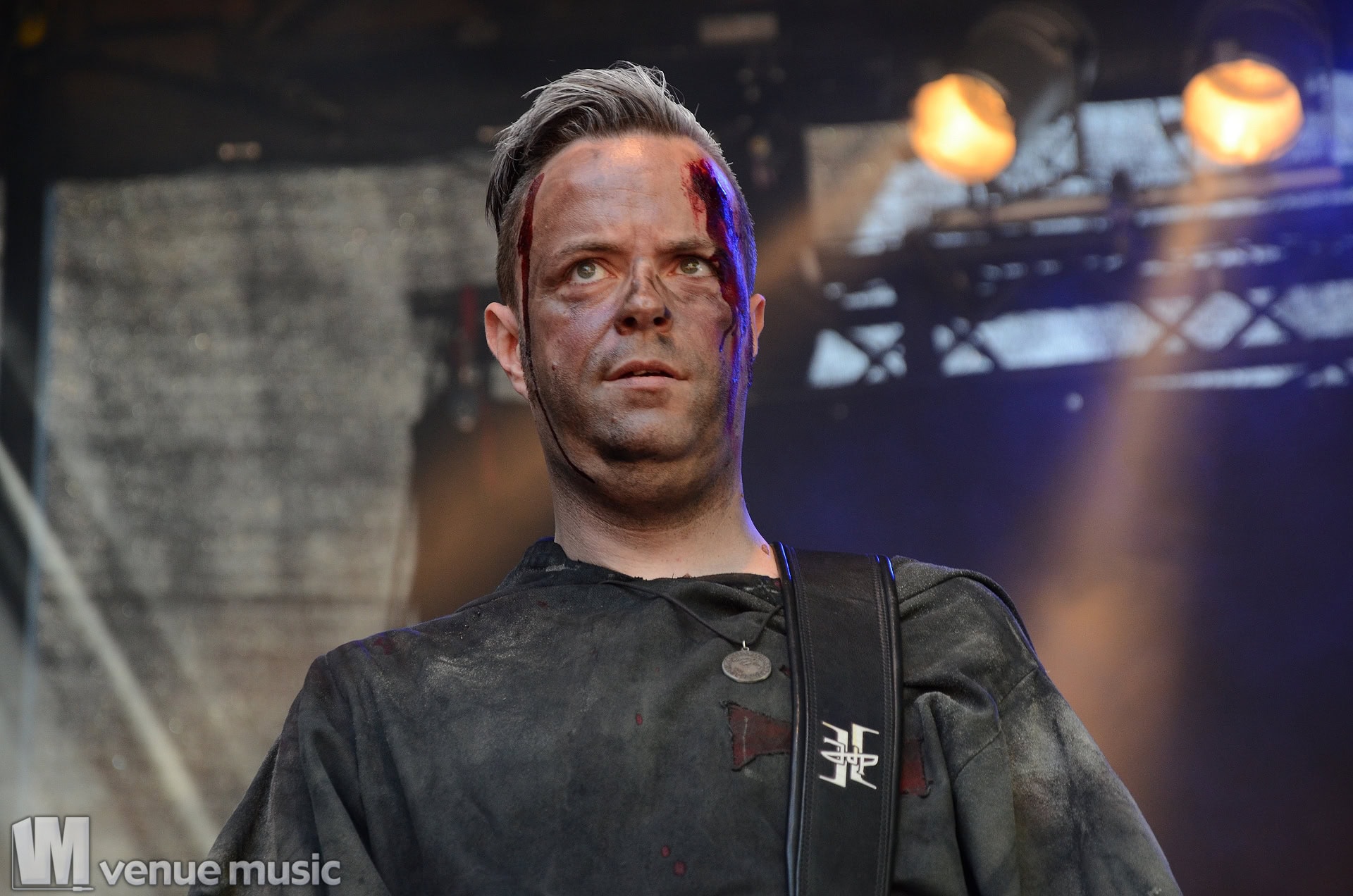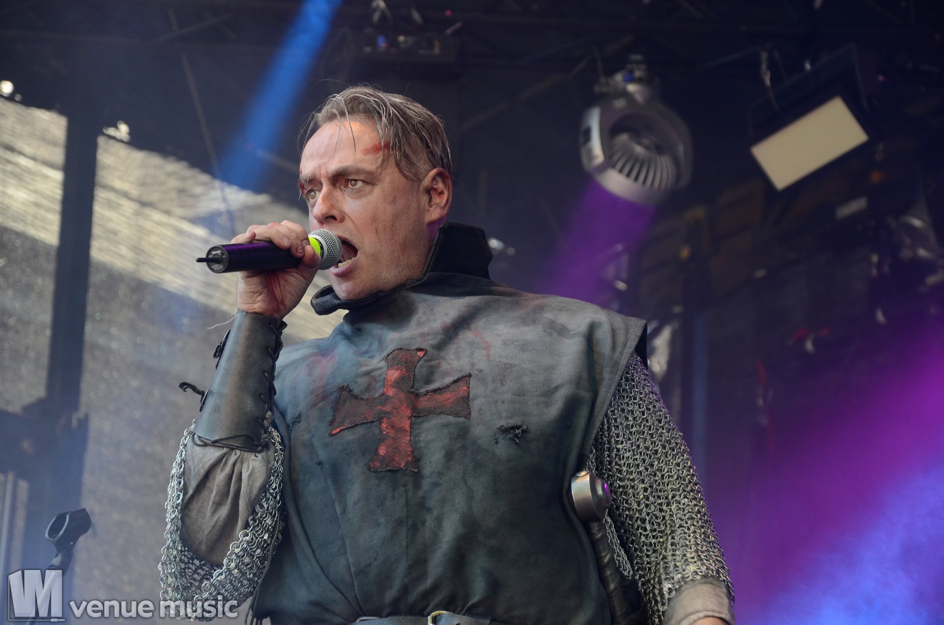 Einiges mehr an Action auf der Bühne wurde dann bei Heimataerde geboten, die von Michael Bohnes mit den Worten „ein bisschen Burgfolg muss sein“ angekündigt wurden. Dort sie schließlich schon häufiger zu Gast gewesen. Auch wenn die Band als Ritter auf der Bühne steht, so ist sie doch eher dem Elektro zuzuordnen, selbst wenn sie verschiedene andere (mittelalterliche) Elemente mit einbezieht. Laut Aussage von Frontmann und Bandgründer Ashlar von Megalon waren in die Show ein paar neue Elemente eingebaut. Und die Band ist schließlich Mittelalter, also mittelalt ;)