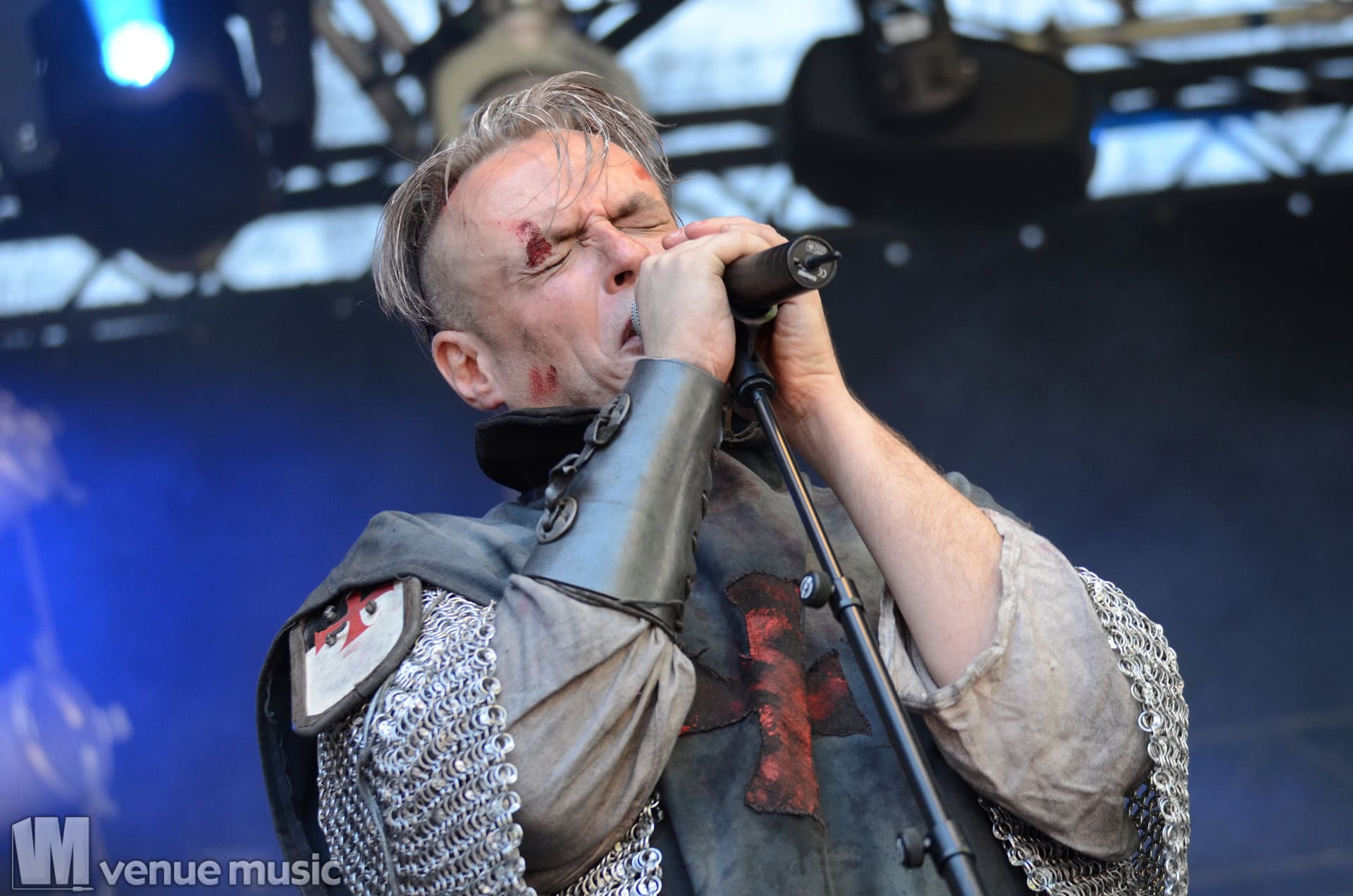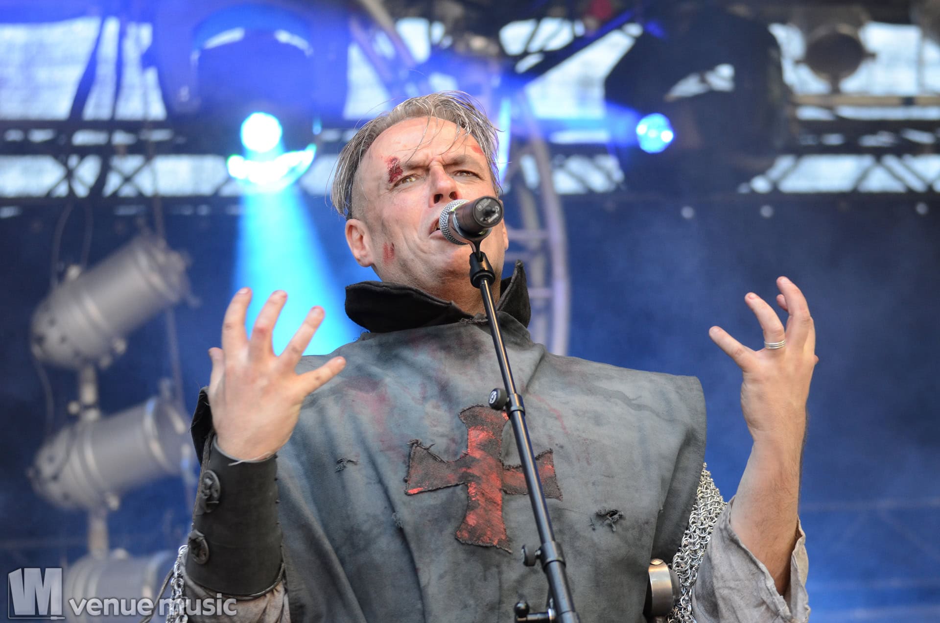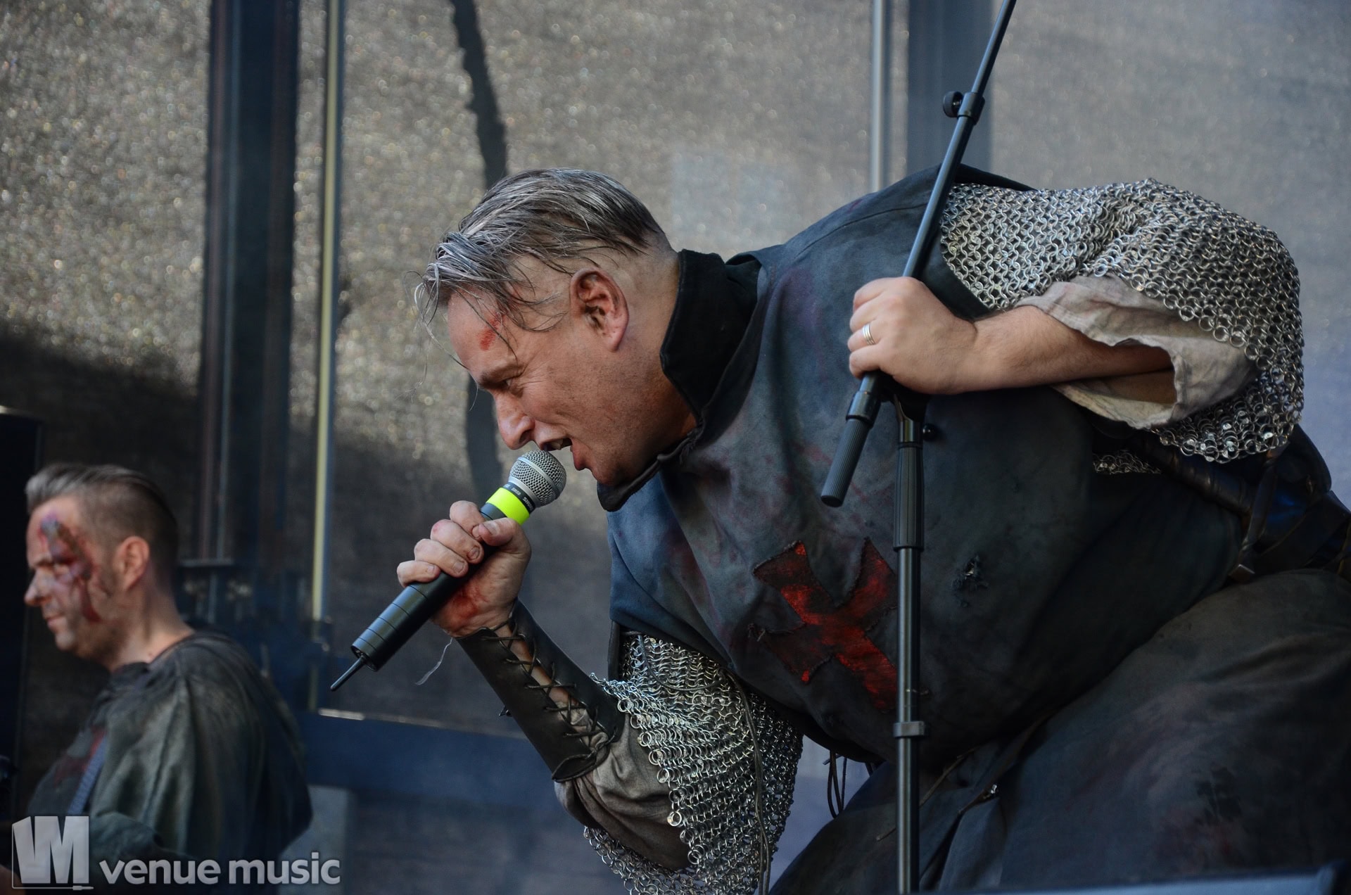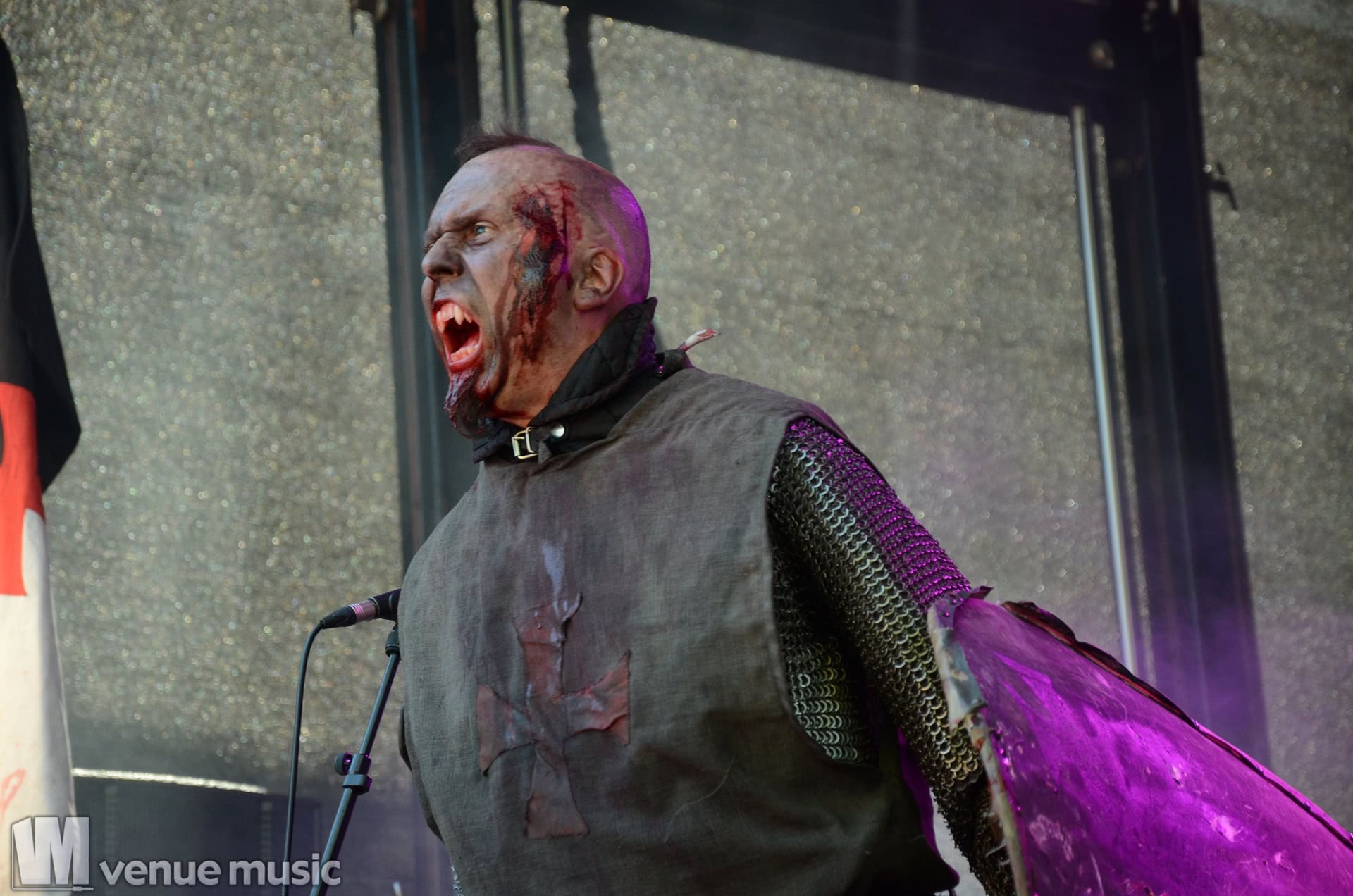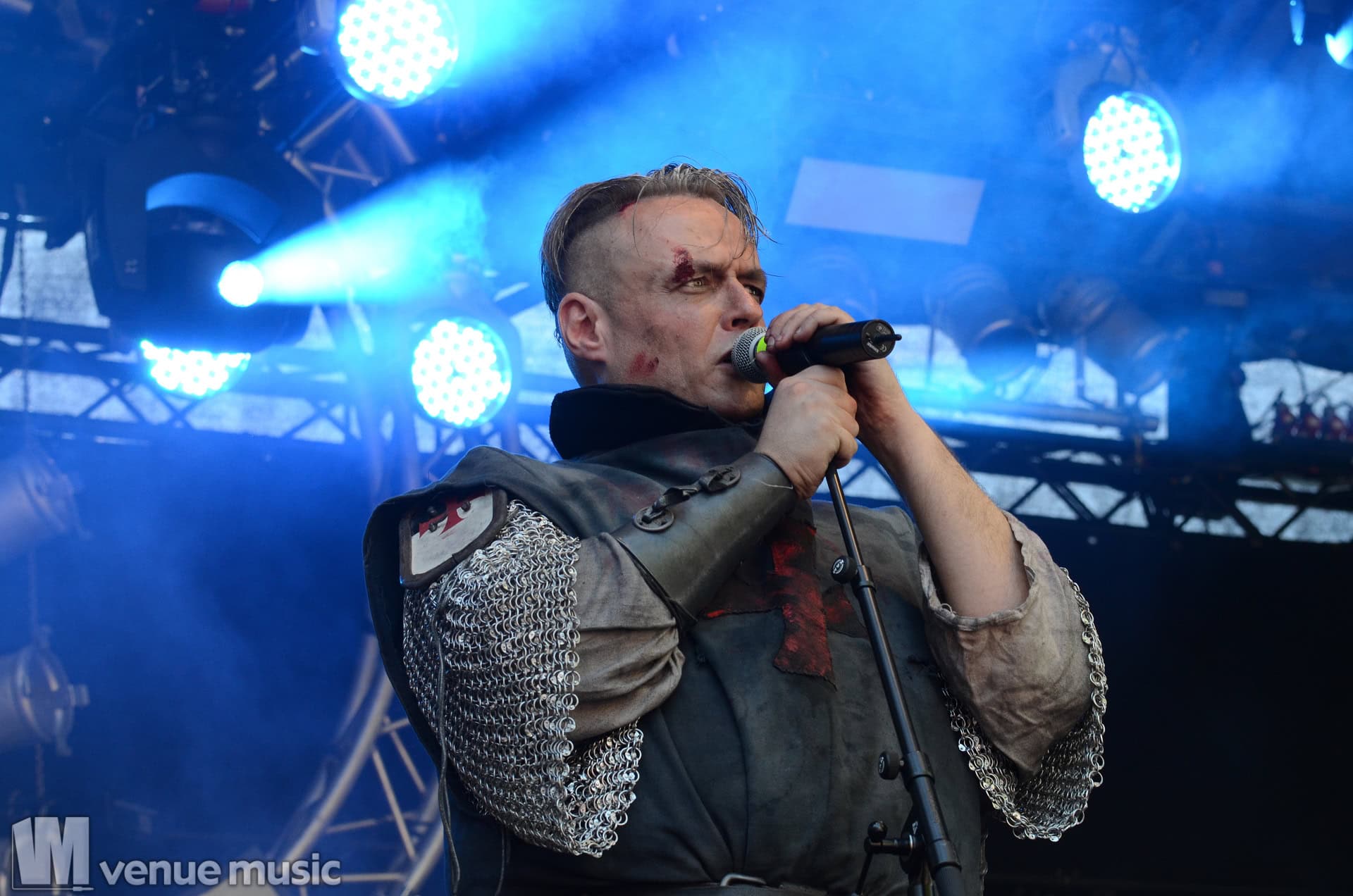 Einiges mehr an Action auf der Bühne wurde dann bei Heimataerde geboten, die von Michael Bohnes mit den Worten „ein bisschen Burgfolg muss sein“ angekündigt wurden. Dort sie schließlich schon häufiger zu Gast gewesen. Auch wenn die Band als Ritter auf der Bühne steht, so ist sie doch eher dem Elektro zuzuordnen, selbst wenn sie verschiedene andere (mittelalterliche) Elemente mit einbezieht. Laut Aussage von Frontmann und Bandgründer Ashlar von Megalon waren in die Show ein paar neue Elemente eingebaut. Und die Band ist schließlich Mittelalter, also mittelalt ;)