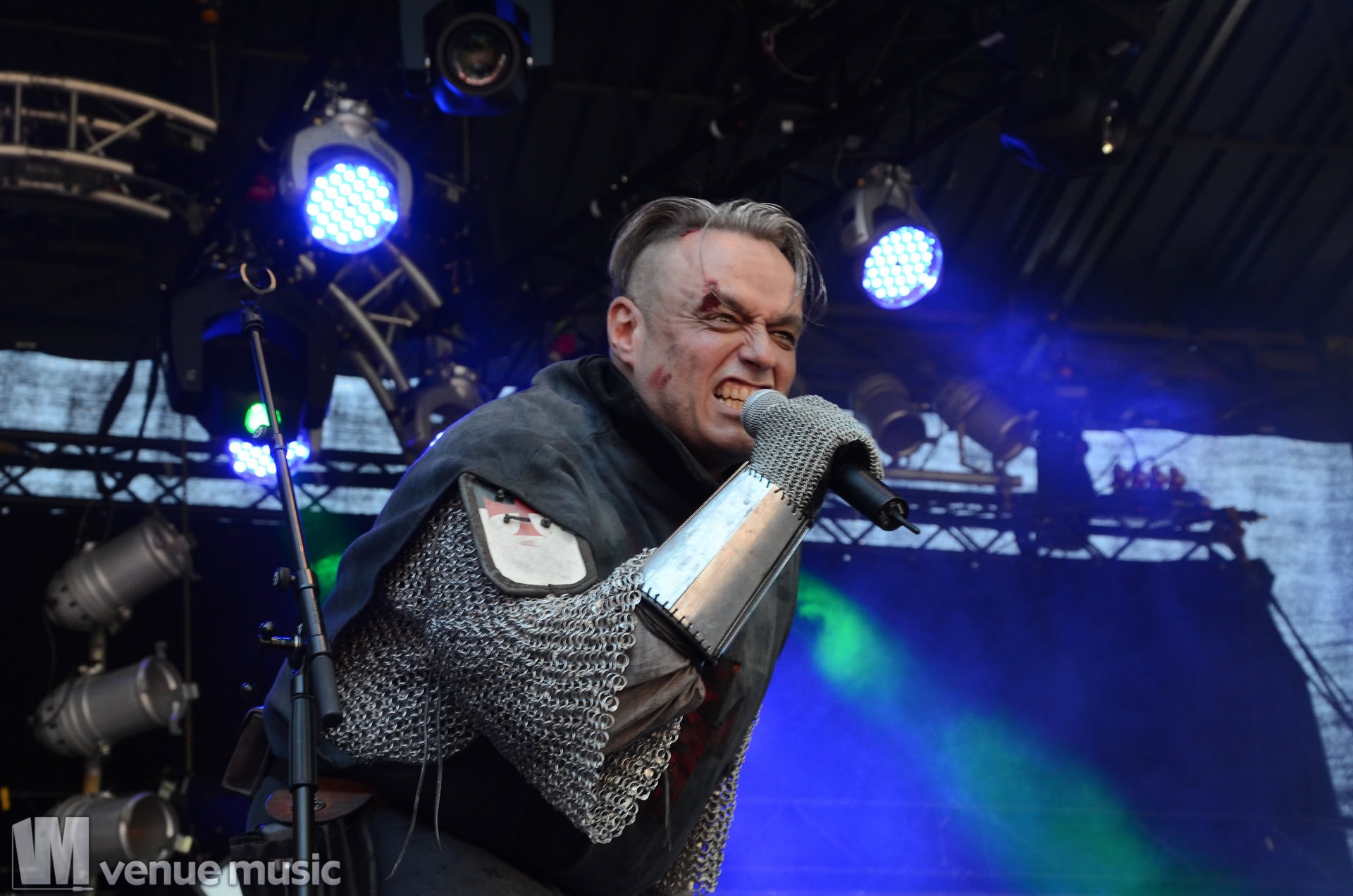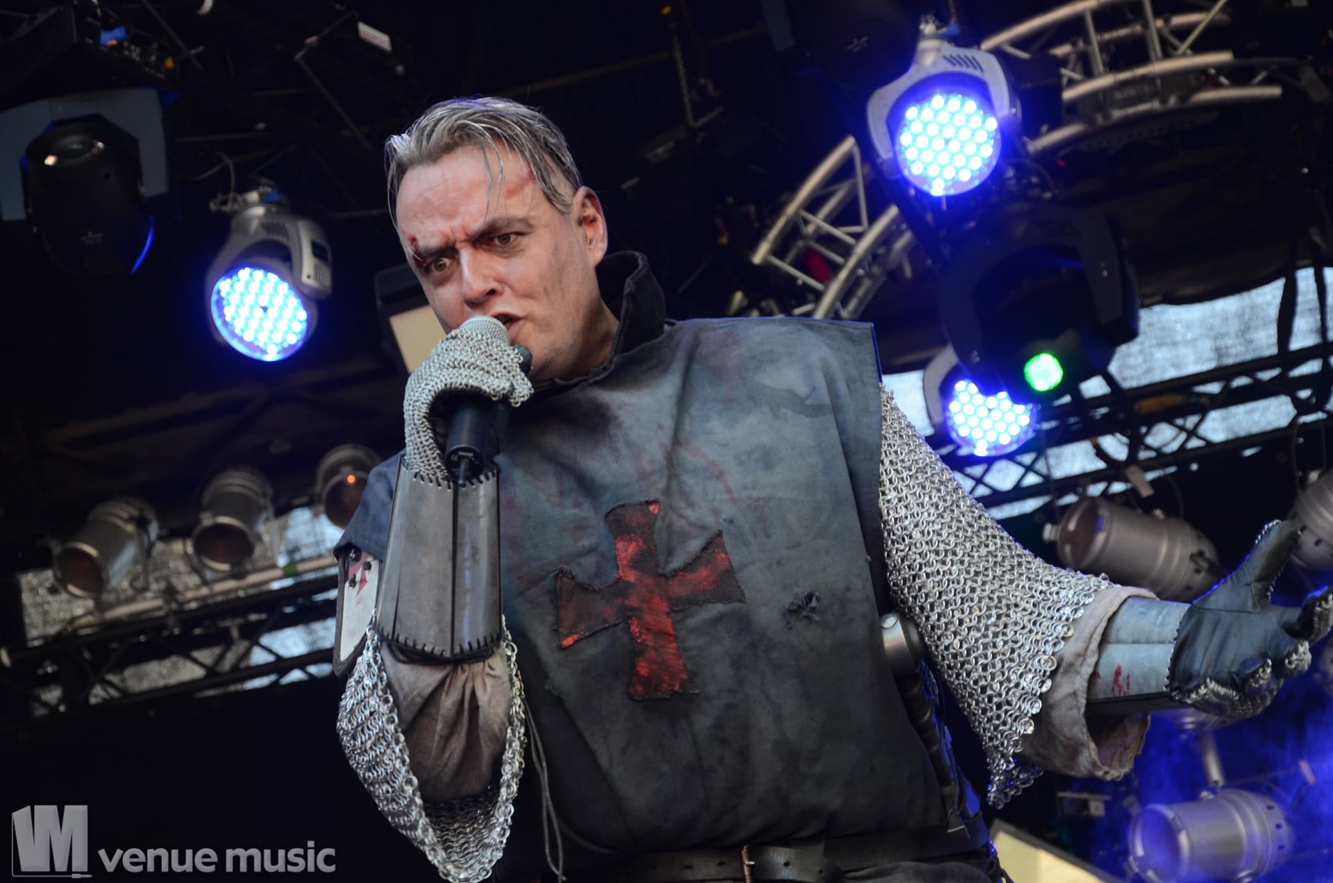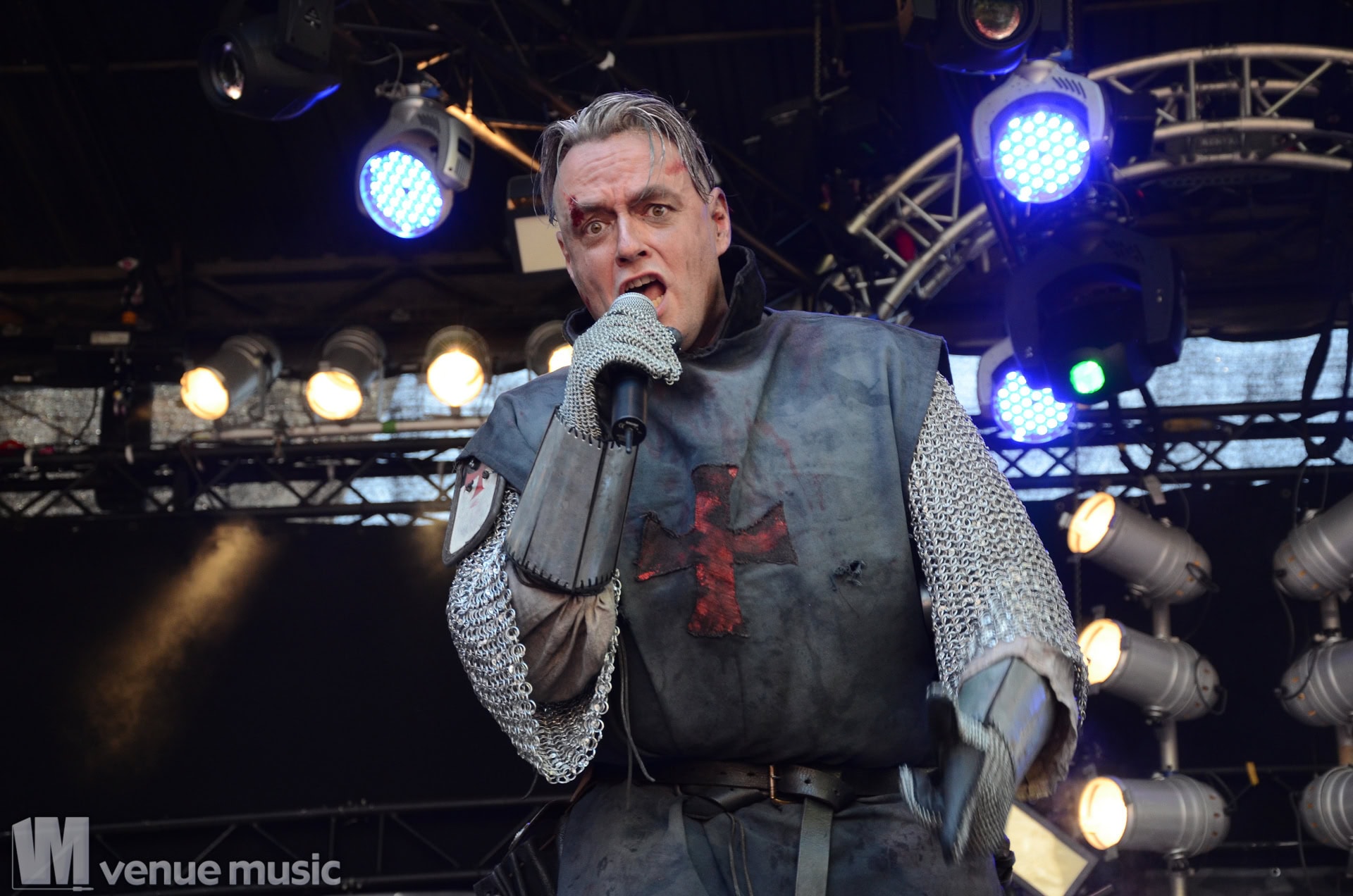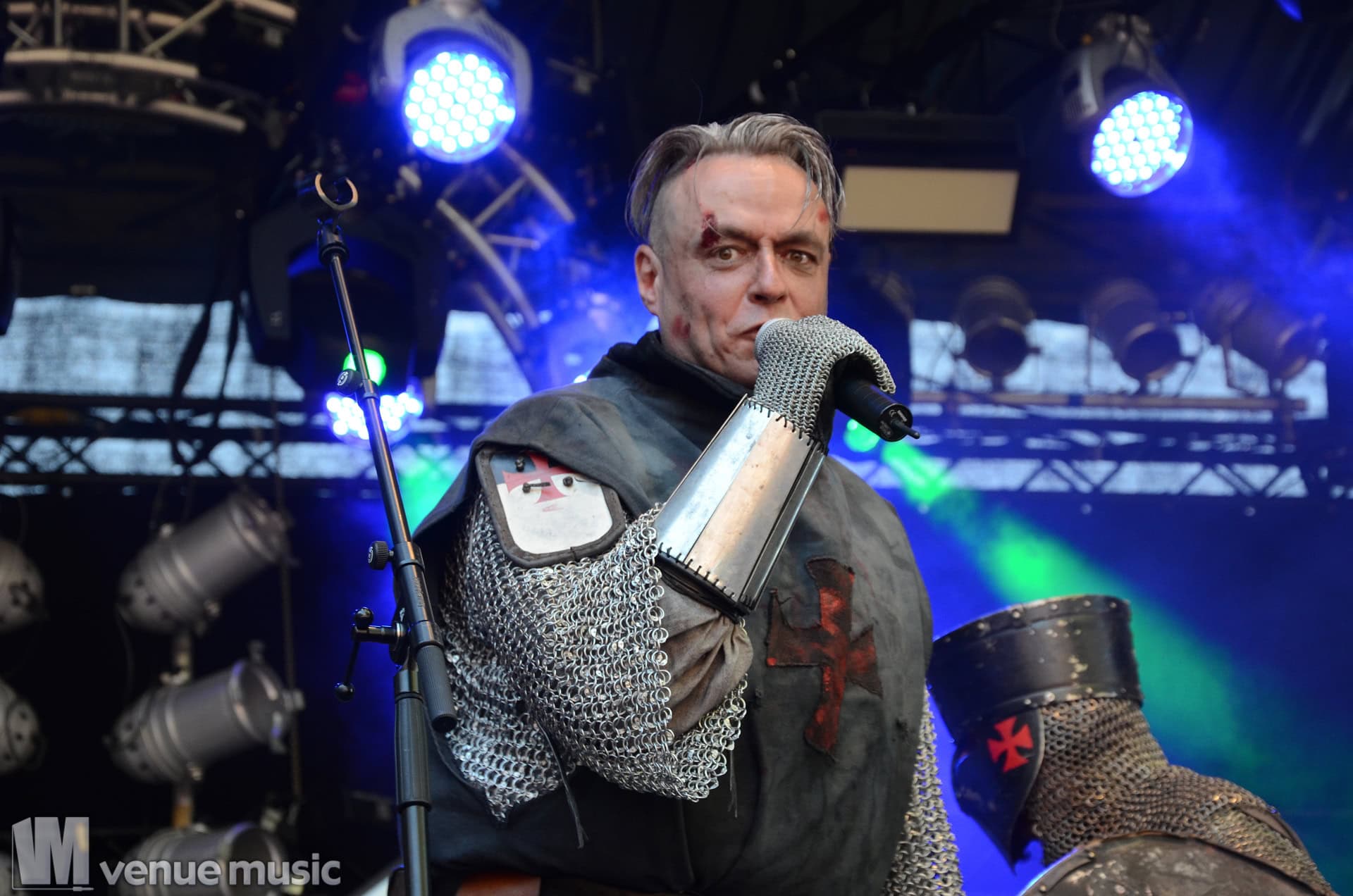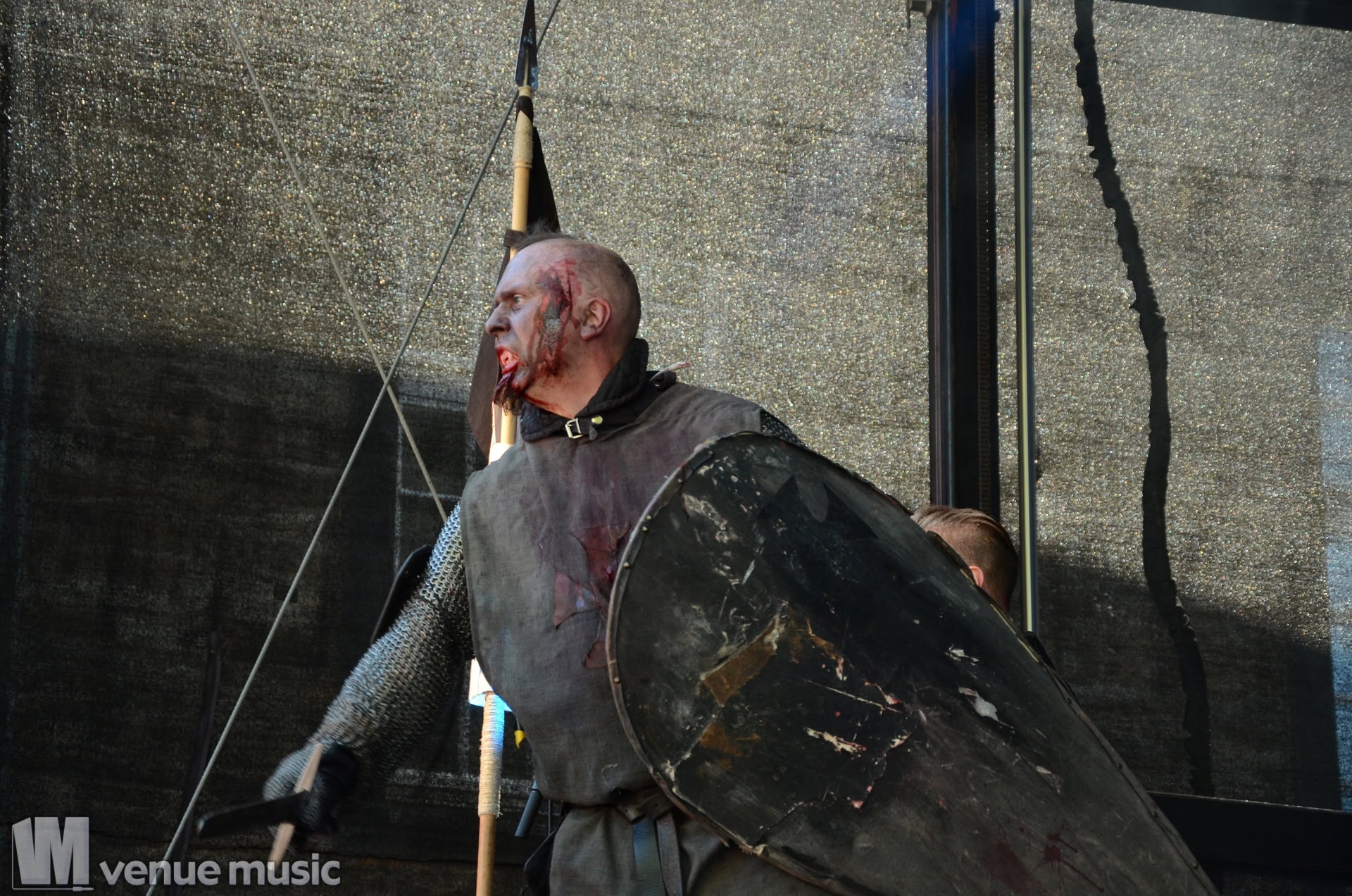 Einiges mehr an Action auf der Bühne wurde dann bei Heimataerde geboten, die von Michael Bohnes mit den Worten „ein bisschen Burgfolg muss sein“ angekündigt wurden. Dort sie schließlich schon häufiger zu Gast gewesen. Auch wenn die Band als Ritter auf der Bühne steht, so ist sie doch eher dem Elektro zuzuordnen, selbst wenn sie verschiedene andere (mittelalterliche) Elemente mit einbezieht. Laut Aussage von Frontmann und Bandgründer Ashlar von Megalon waren in die Show ein paar neue Elemente eingebaut. Und die Band ist schließlich Mittelalter, also mittelalt ;)