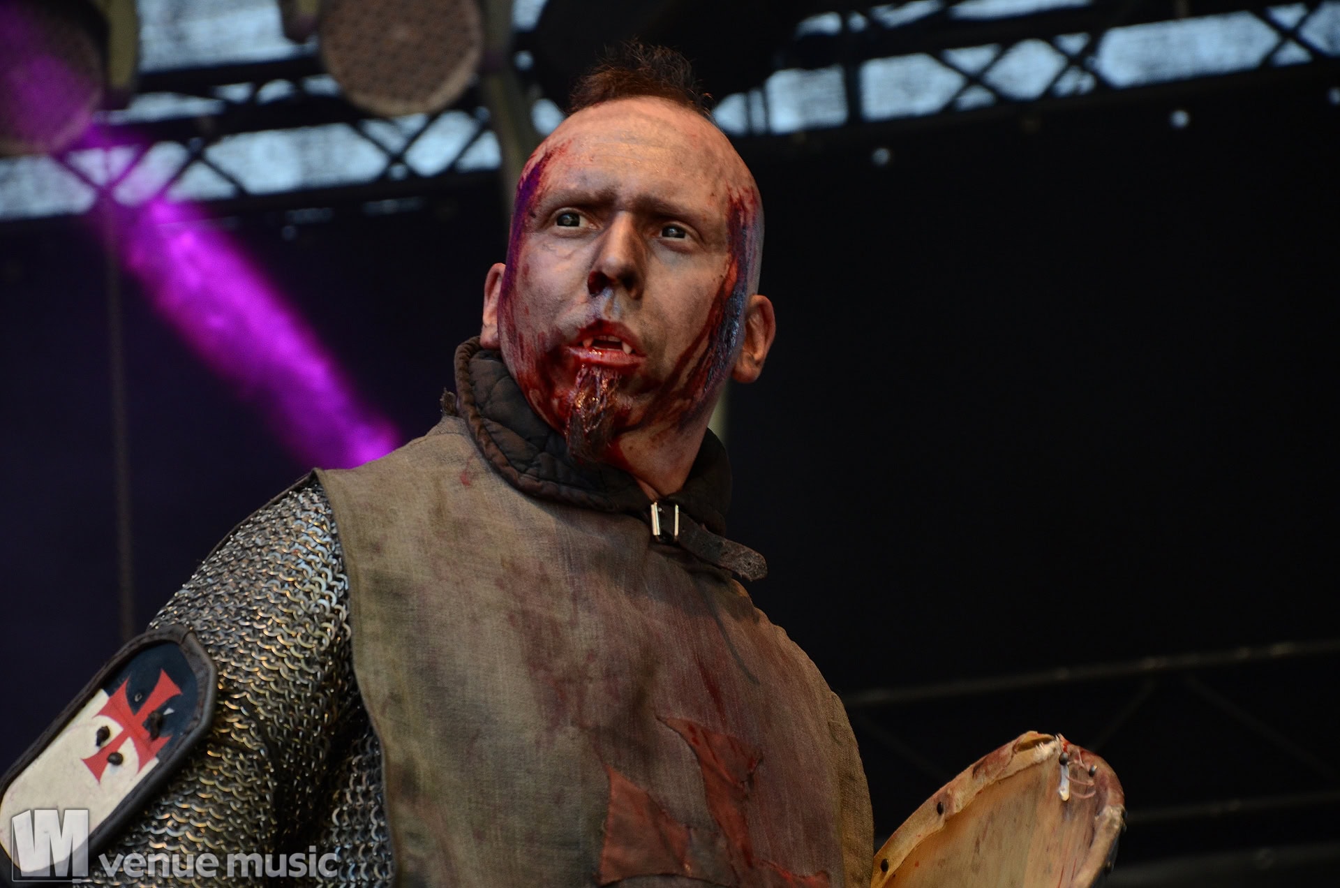 Wer in den ersten Reihen empfindliche Klamotten an hatte, sollte sich schleunigst in Sicherheit bringen, denn ein paar Kunstblutspritzer konnte man schon mal abbekommen, dafür sorgte spätestens „Showfuzzi“ – ähm.. „Showritter“ (oder doch eher „Rittervampir“?) Bruder Ignatius von Schneeberg.