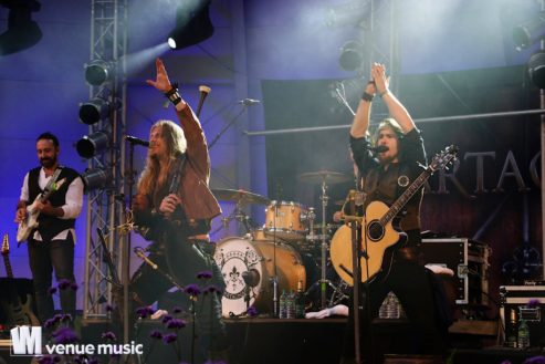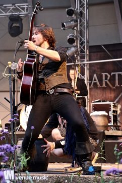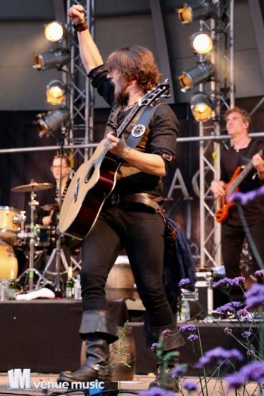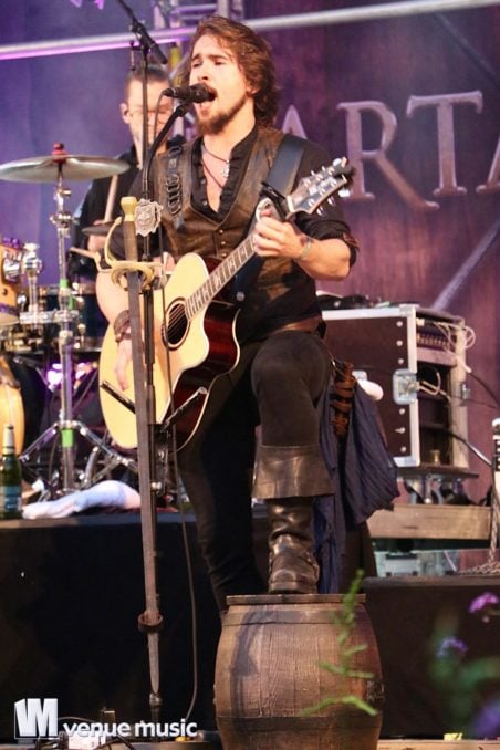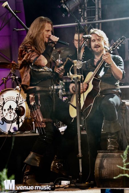 Jeder der mich kennt weiss, dass mein Musikgeschmack sehr vielfältig ist. Neben Rock und Metal darf es gerne auch mal Folk-Rock sein. Und da habe ich es mir natürlich nicht nehmen lassen, die Musketiere von dArtagnan bei den Phantasie und Mittelaltertagen in Saarbrücken anzuschauen. Auch wenn ich für meine Rezensionen gerne musikalische Schubladen verwende und viele die Musik der drei sympathischen Jungs in die Schlager-Schublade stecken: Das was sie gestern abgeliefert haben, war astreiner Folk-Rock mit deutschen Texten – mitten auf die zwölf. Felix, Ben und Tim konnten das Publikum mitreissen und aufheizen – auch wenn es zu Beginn des Konzerts noch anständig zu regnen anfing. Die gute Laune kam schnell wieder zurück. Auf der Setlist standen natürlich die Songs des Debütalbums „Seit an Seit“(*) und sie hatten auch Songs von der kommenden CD „Verehrt und Verdammt“(*) (VÖ 15.09.2017) mit im Gepäck. Bei „Jubel“ war das Publikum nicht mehr zu halten und auch die Coverversion des Bots Klassikers „Was wollen wir trinken“ wurde lauthals mitgesungen. Live ist das Trio mit Band ein echtes Erlebnis und ist noch eine Spur rockiger als auf dem Album. Ich freue mich aufs nächste Mal und bis dahin: Ein paar Fotos von gestern :)