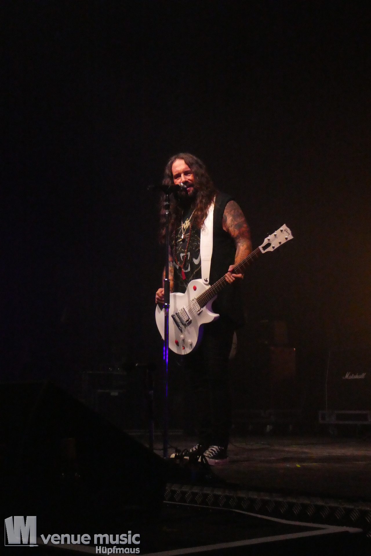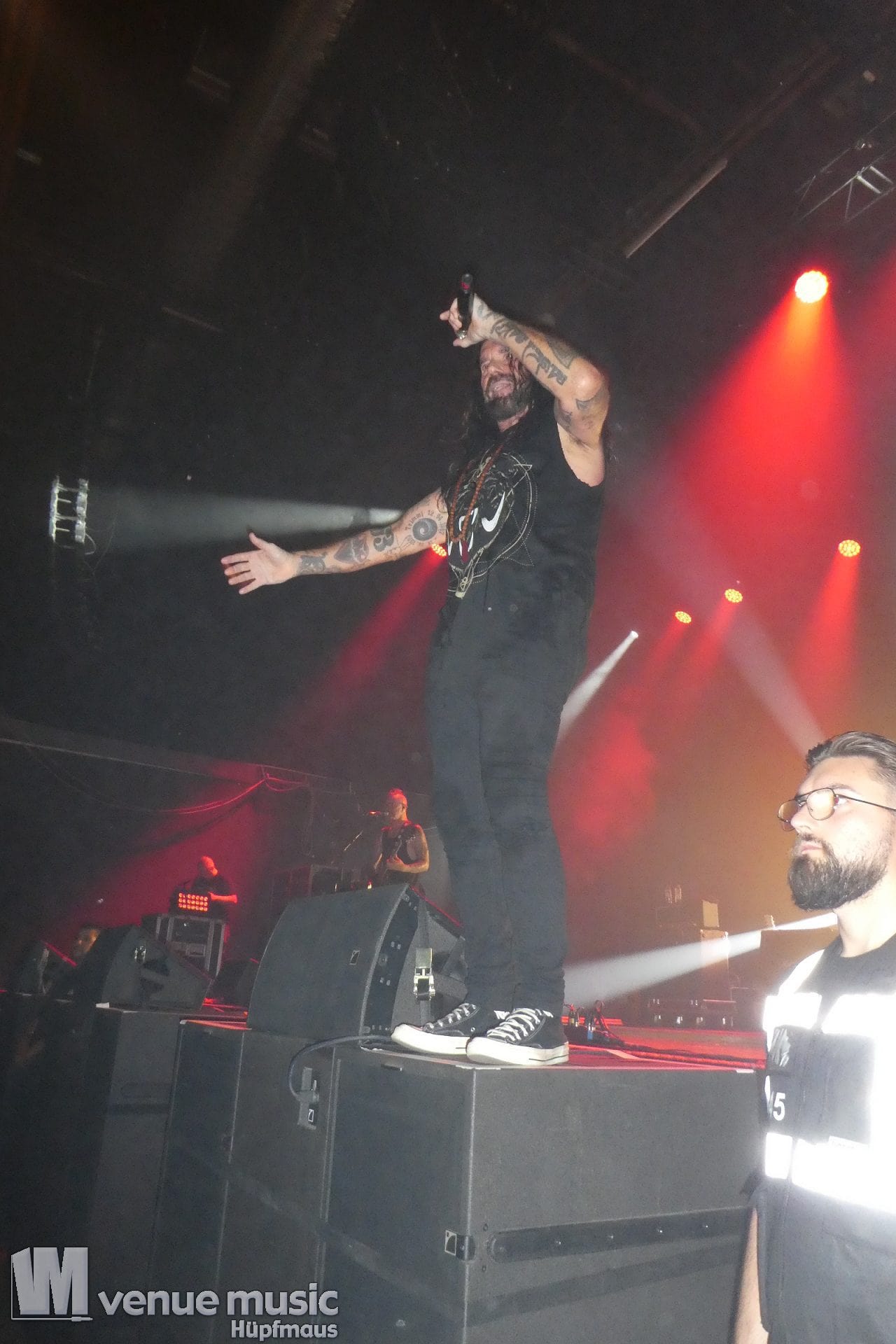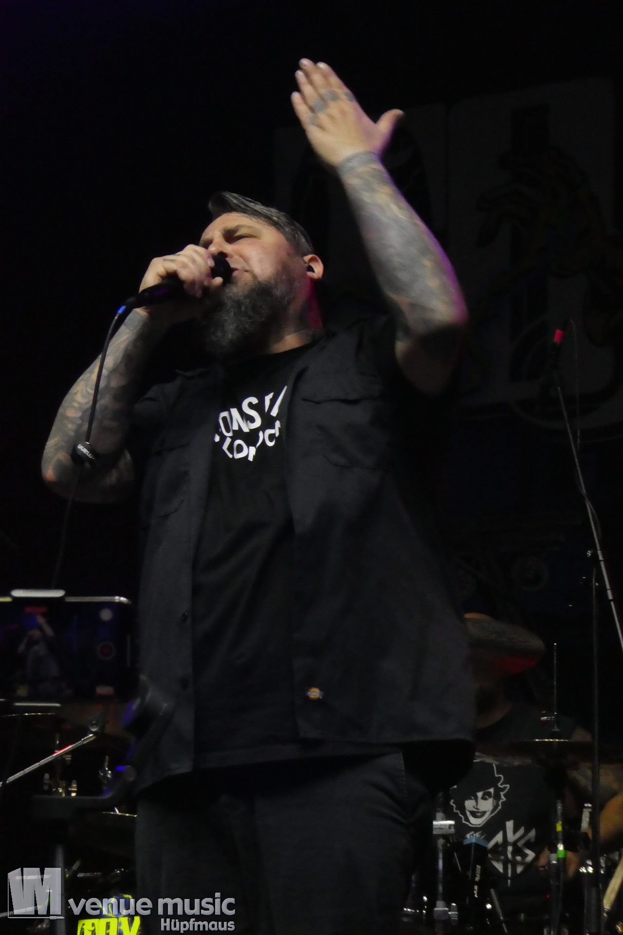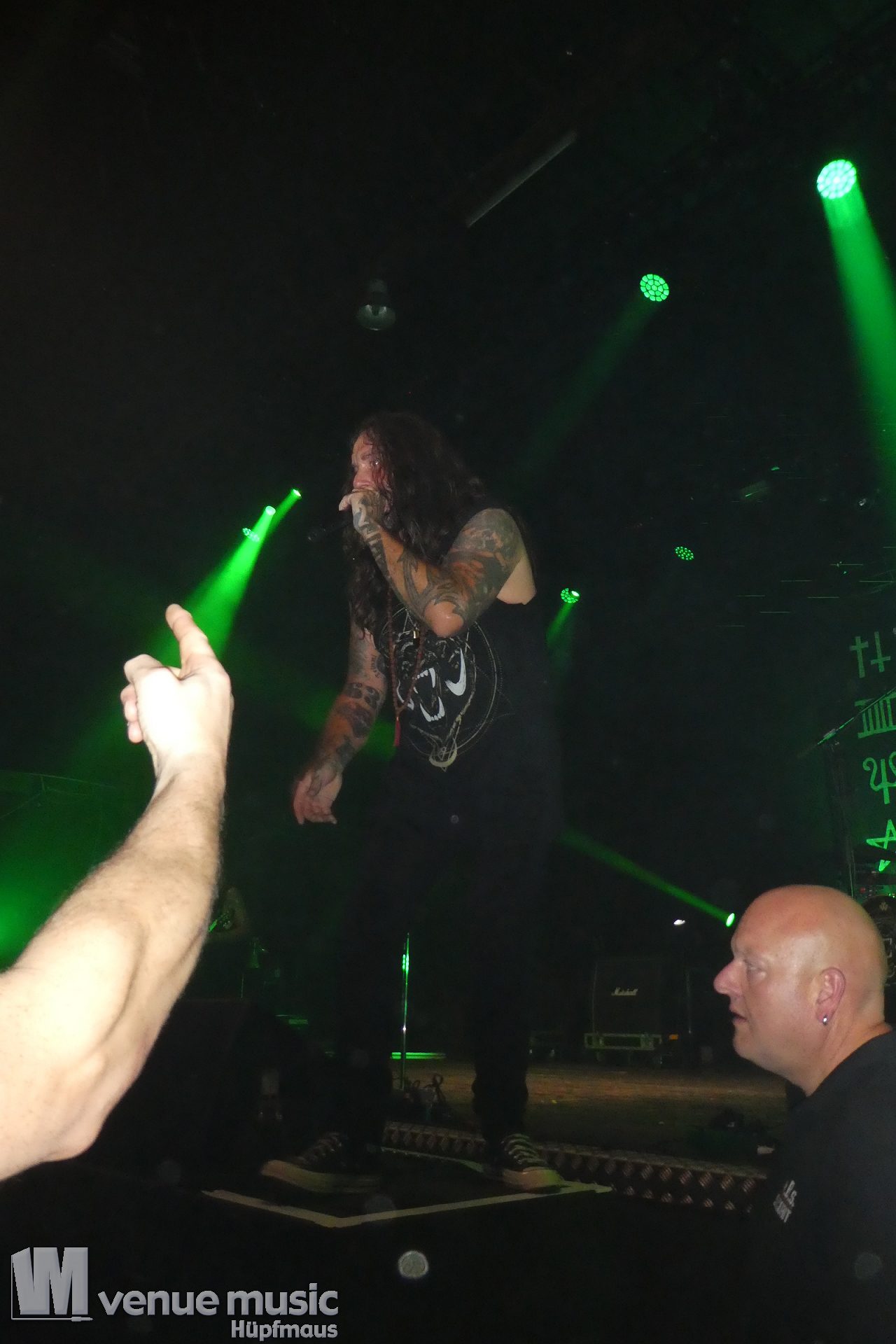 Zwischendurch muss es im Publikum mal irgendwo Ärger gegeben haben, denn der W. hat da ne klare Ansage gemacht, dass Gewalt und Aggressionen auf (seinen) Konzerten mal so gar nichts zu suchen haben. Ein bisschen Pogen OK, aber alles andere – no go. Die Sec musste dann da ihre Arbeit (leider) machen, danach ging es aber weiter. Was da nun genau war – man weiss es nicht. Aber Leute: alle wollen doch nur ein geiles Konzert abfeiern, bleibt doch friedlich und habt zusammen Spaß! Bei uns war es zwischendrin ein bisschen anstrengend vorne, aber hielt sich im Rahmen mit dem Gedrängel. So muss das (und Deppen gibts leider immer)
