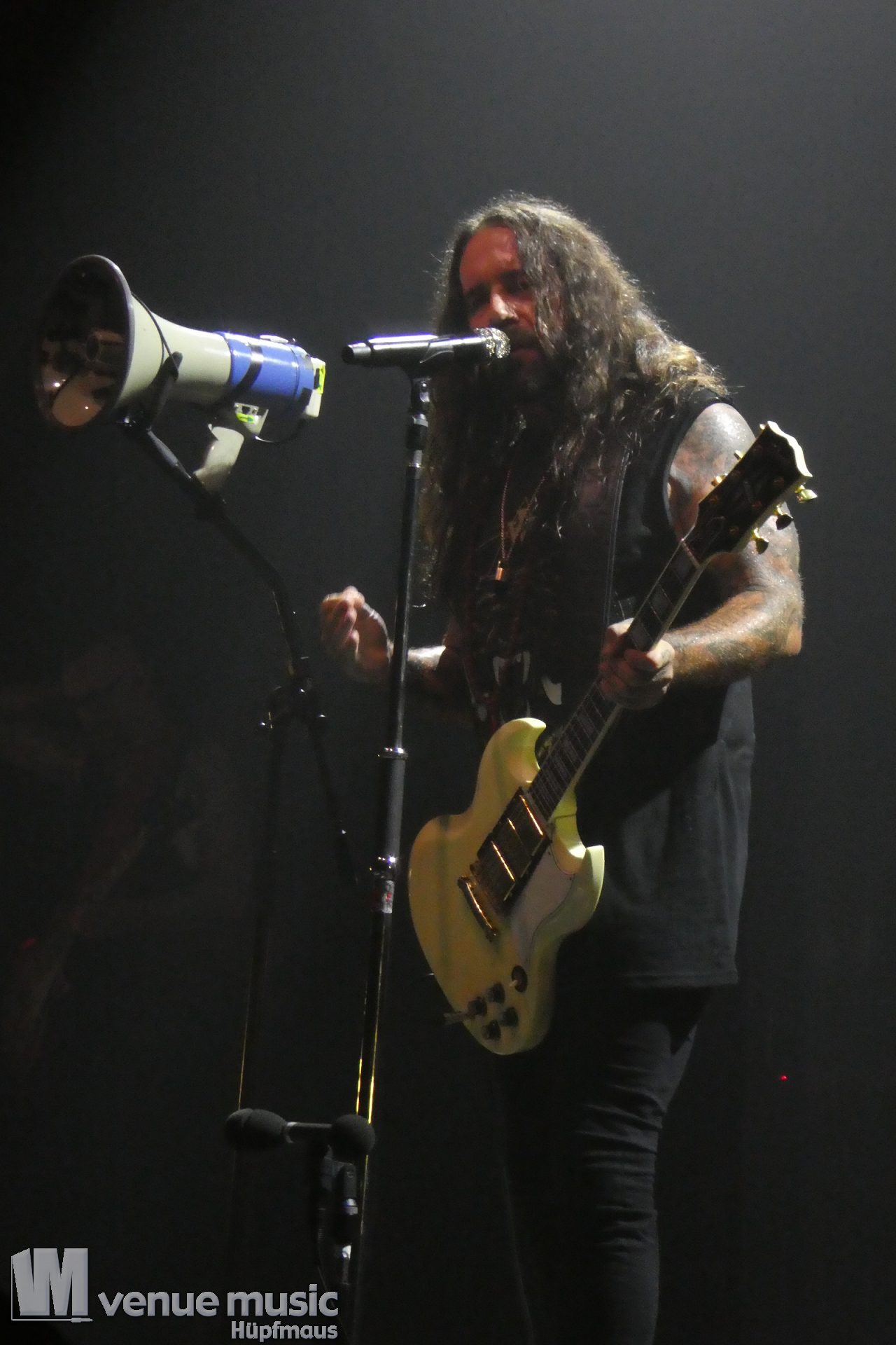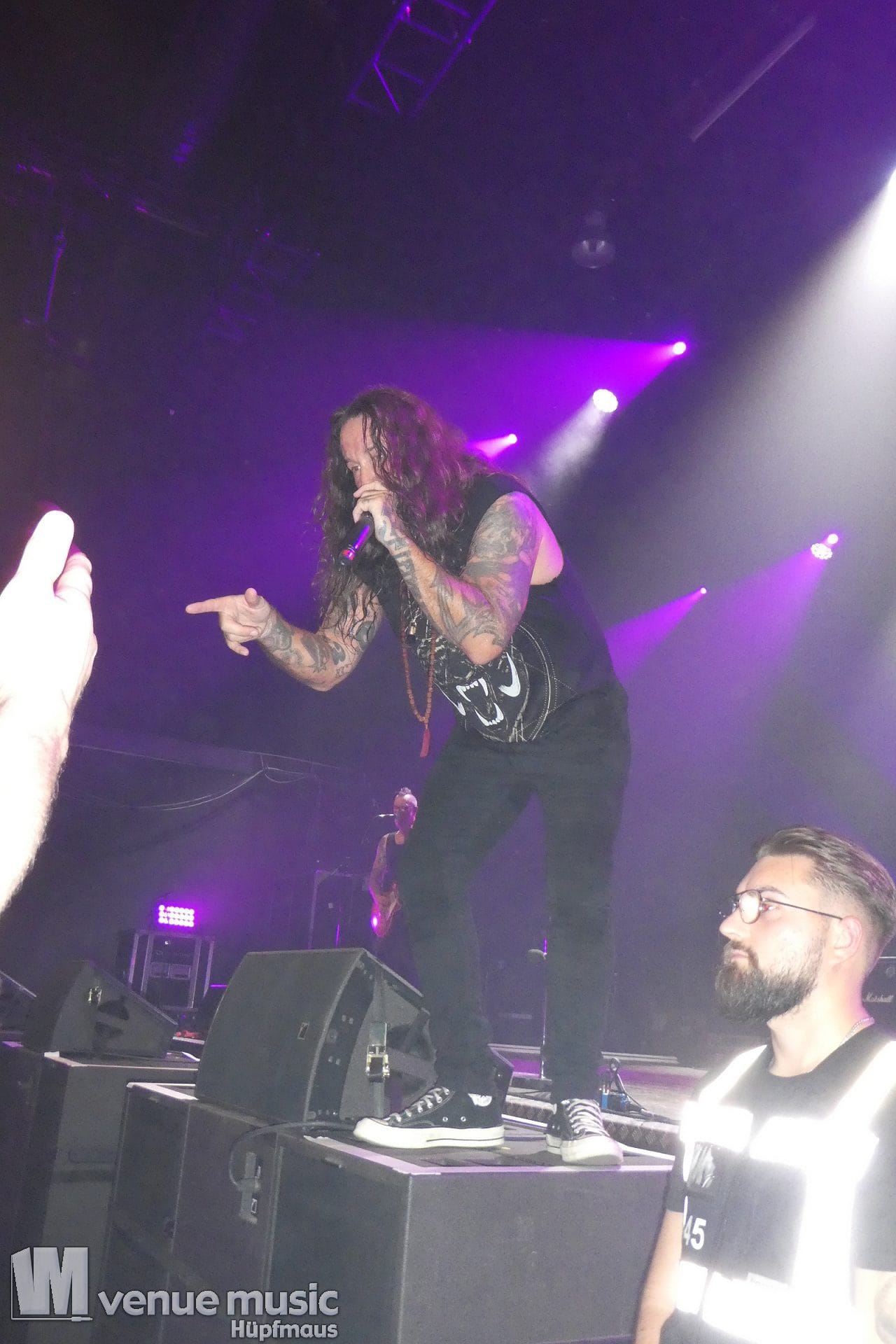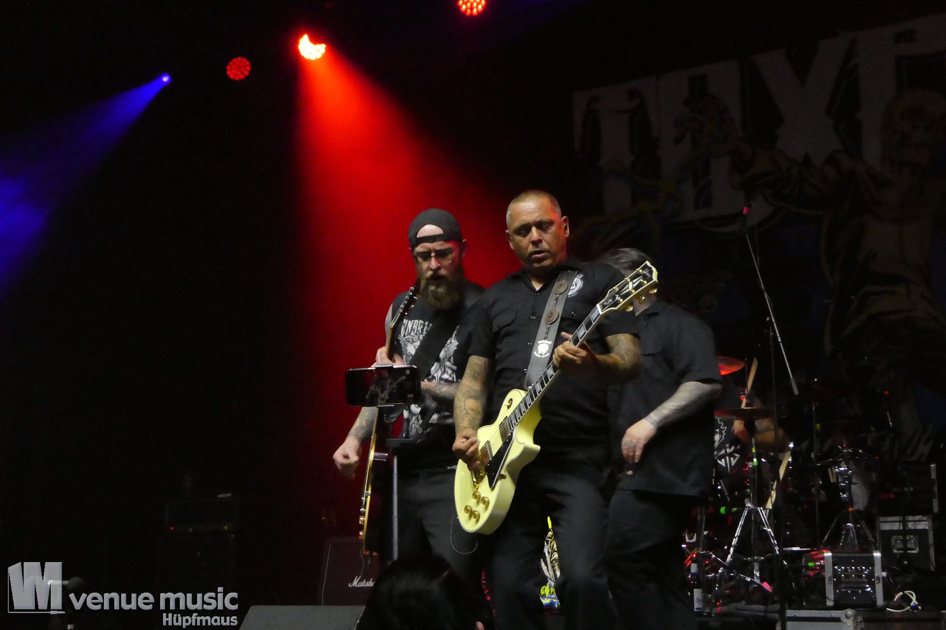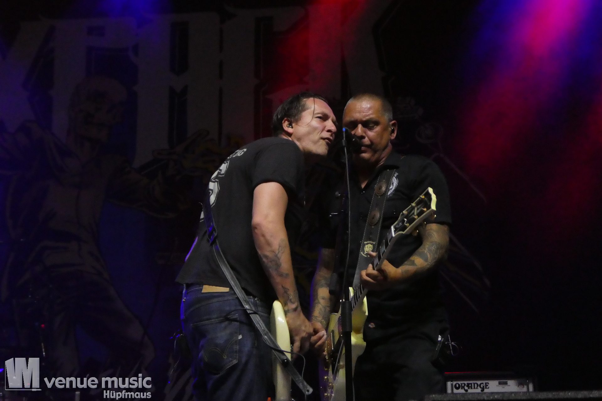 Zwischendurch muss es im Publikum mal irgendwo Ärger gegeben haben, denn der W. hat da ne klare Ansage gemacht, dass Gewalt und Aggressionen auf (seinen) Konzerten mal so gar nichts zu suchen haben. Ein bisschen Pogen OK, aber alles andere – no go. Die Sec musste dann da ihre Arbeit (leider) machen, danach ging es aber weiter. Was da nun genau war – man weiss es nicht. Aber Leute: alle wollen doch nur ein geiles Konzert abfeiern, bleibt doch friedlich und habt zusammen Spaß! Bei uns war es zwischendrin ein bisschen anstrengend vorne, aber hielt sich im Rahmen mit dem Gedrängel. So muss das (und Deppen gibts leider immer)