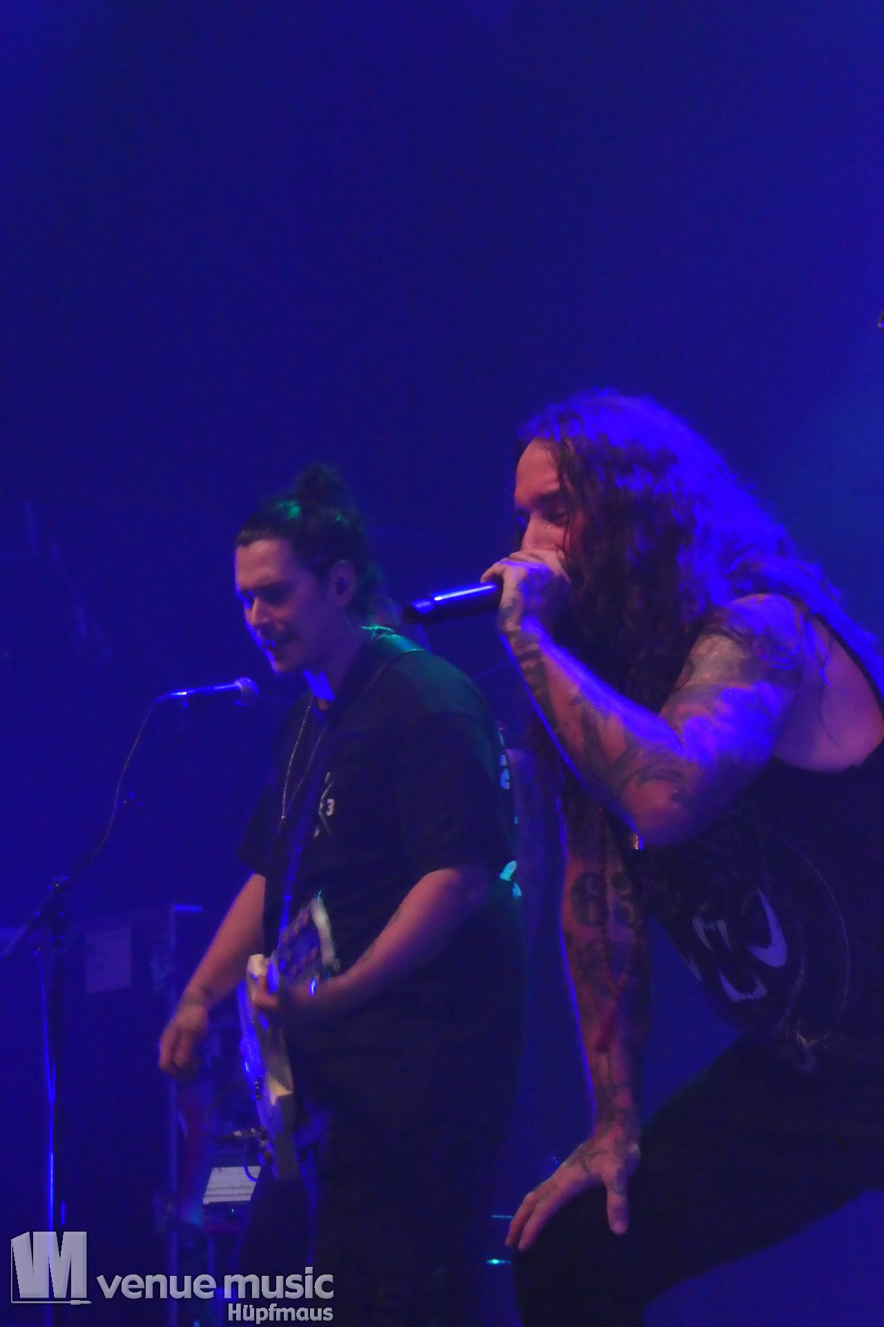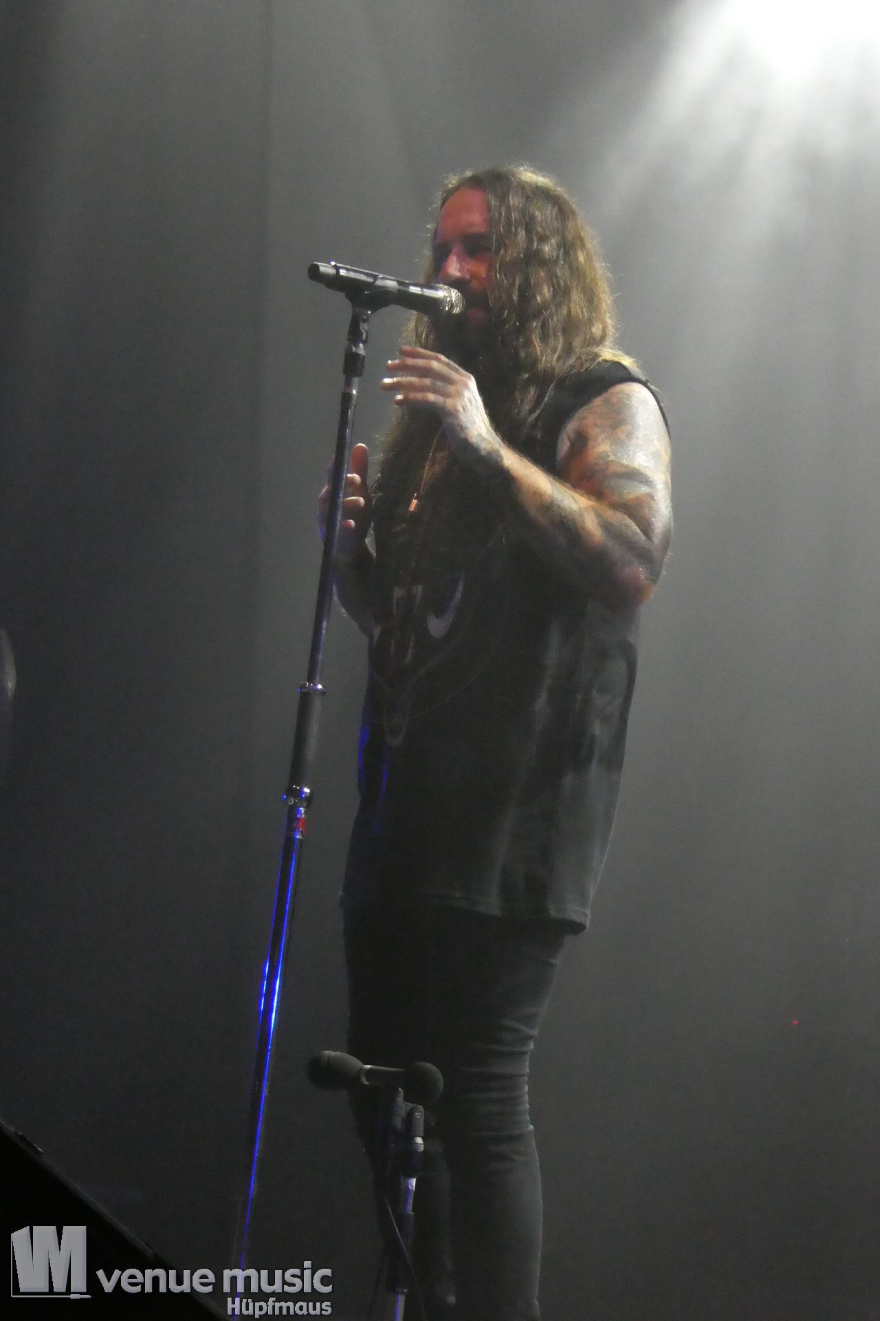Für uns ist die Turbinenhalle ja nicht soo groß, aber die größte Halle der W-Tour, zumal der Gig von der kleinen in die große Halle verlegt worden war. Sehr angetan war Stephan nicht vom Abstand der Bühne zu den Fans, denn der ist in der Turbinenhalle neuerdings relativ groß, da im Fotograben noch große Boxen stehen (die von der Bühne aber betretbar sind) und davor und dahinter Platz ist. Im Verhältnis zu den anderen Venues war im da das Publikum viel zu weit weg. Keine Spur von so etwas wie Wohnzimmerkonzert (anders als in der Matrix letzte Mal).