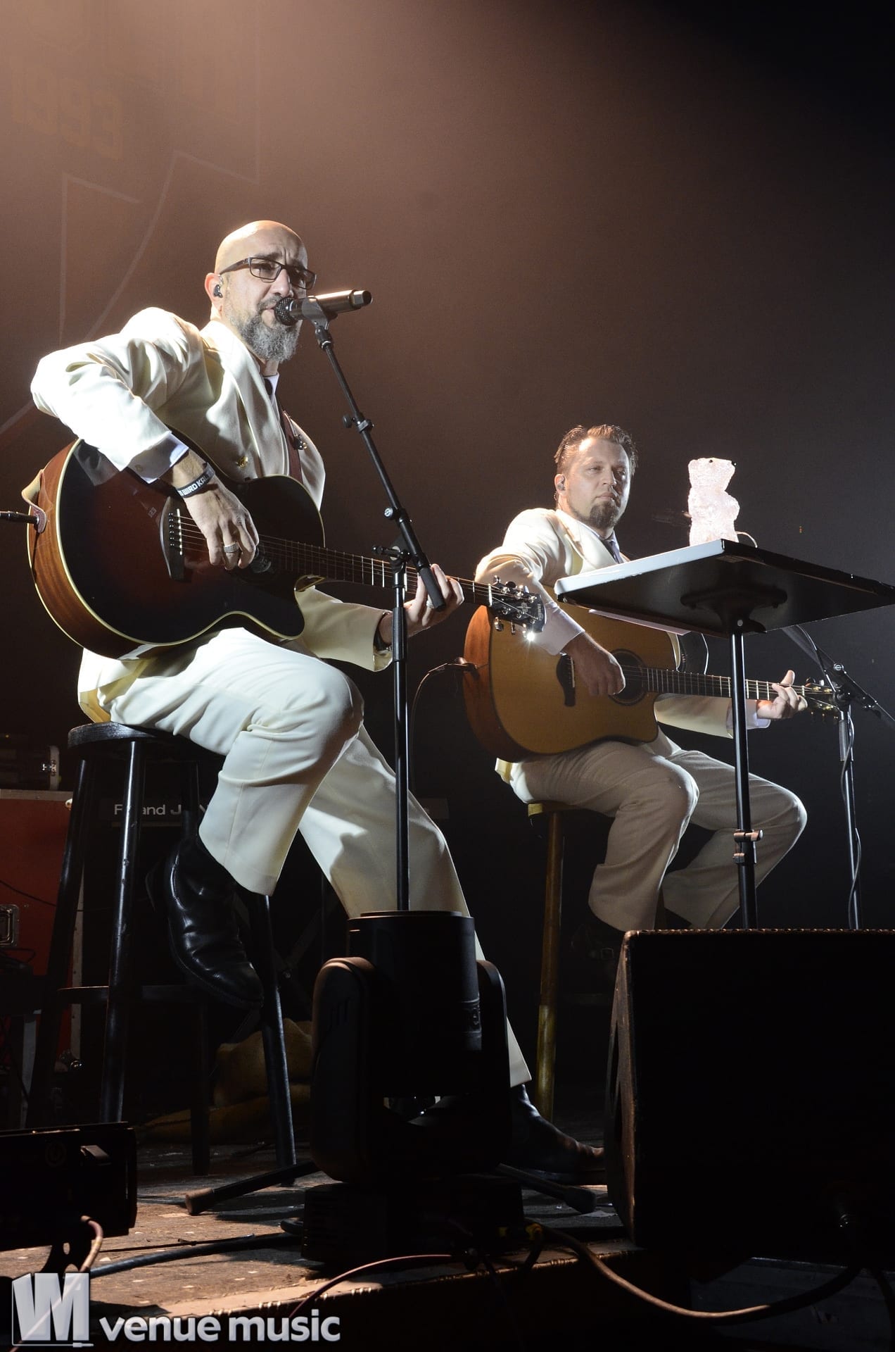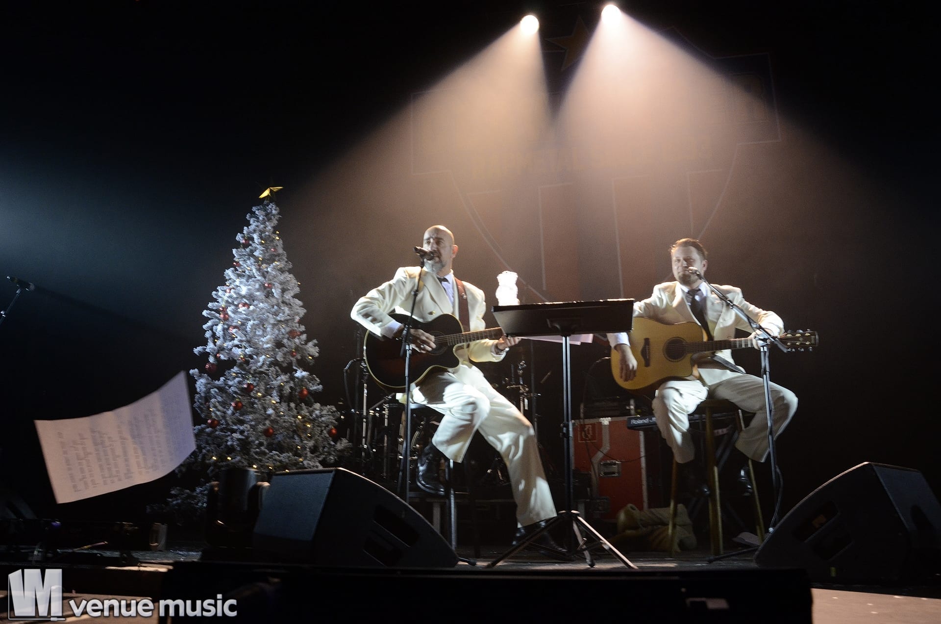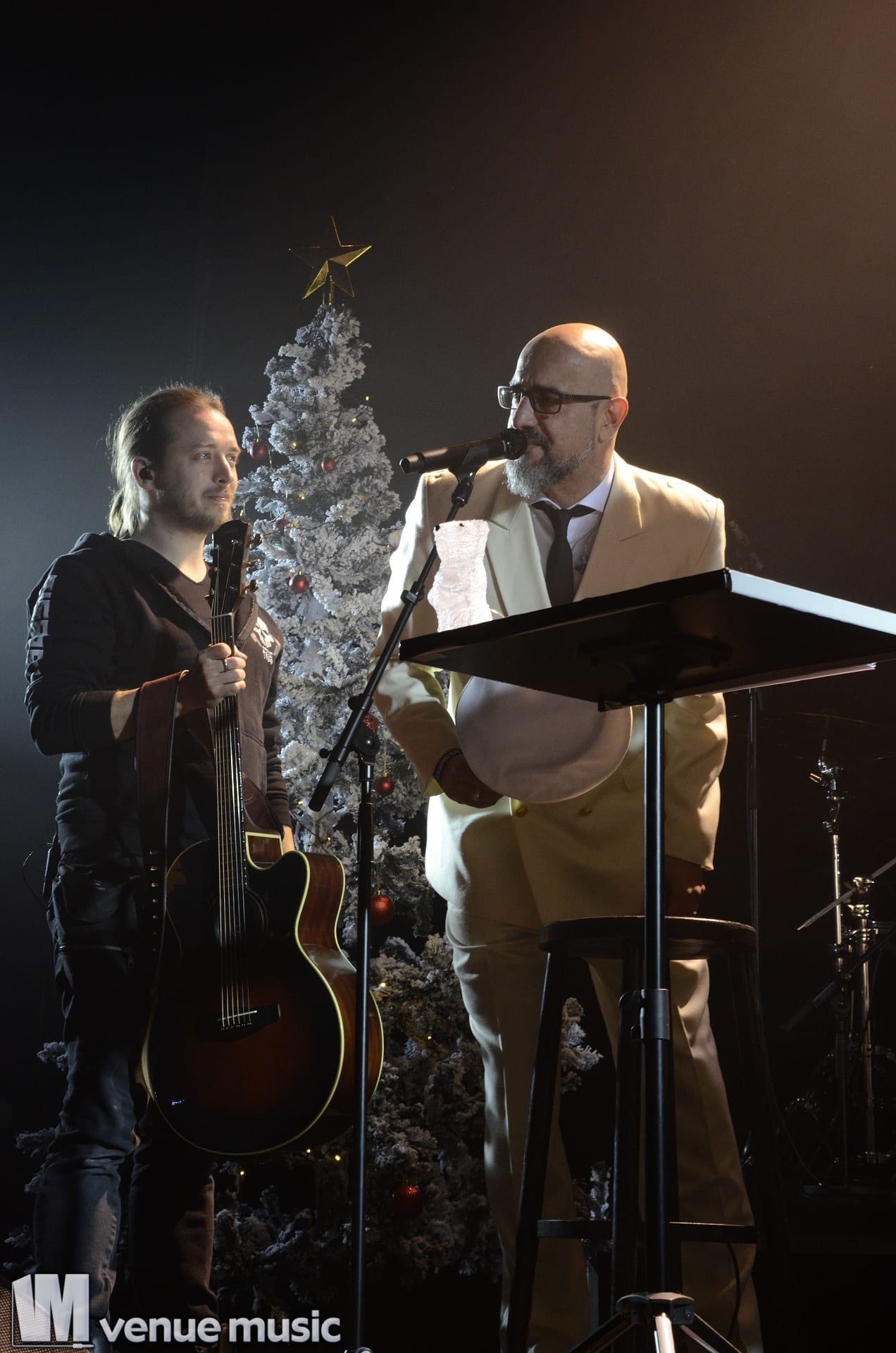 Ein ganz besonderes Schmankerl zu Weihnachten war die erste „Band“: „Jürgen & Ich“. Wie zu vermuten war, bestand dieses Duo aus Jürgen und Alex. Stilvoll in weißen Anzügen gab es ein kleines Weihnachtssingen. Allerdings ließ die Textfestigkeit vor allem des Publikums zu wünschen übrig. Doch das tat der Stimmung keinen Abbruch. Es war eine sehr amüsante Showeinlage – und gesundes Obst wurde auch noch aus dem Weihnachtssack verteilt.