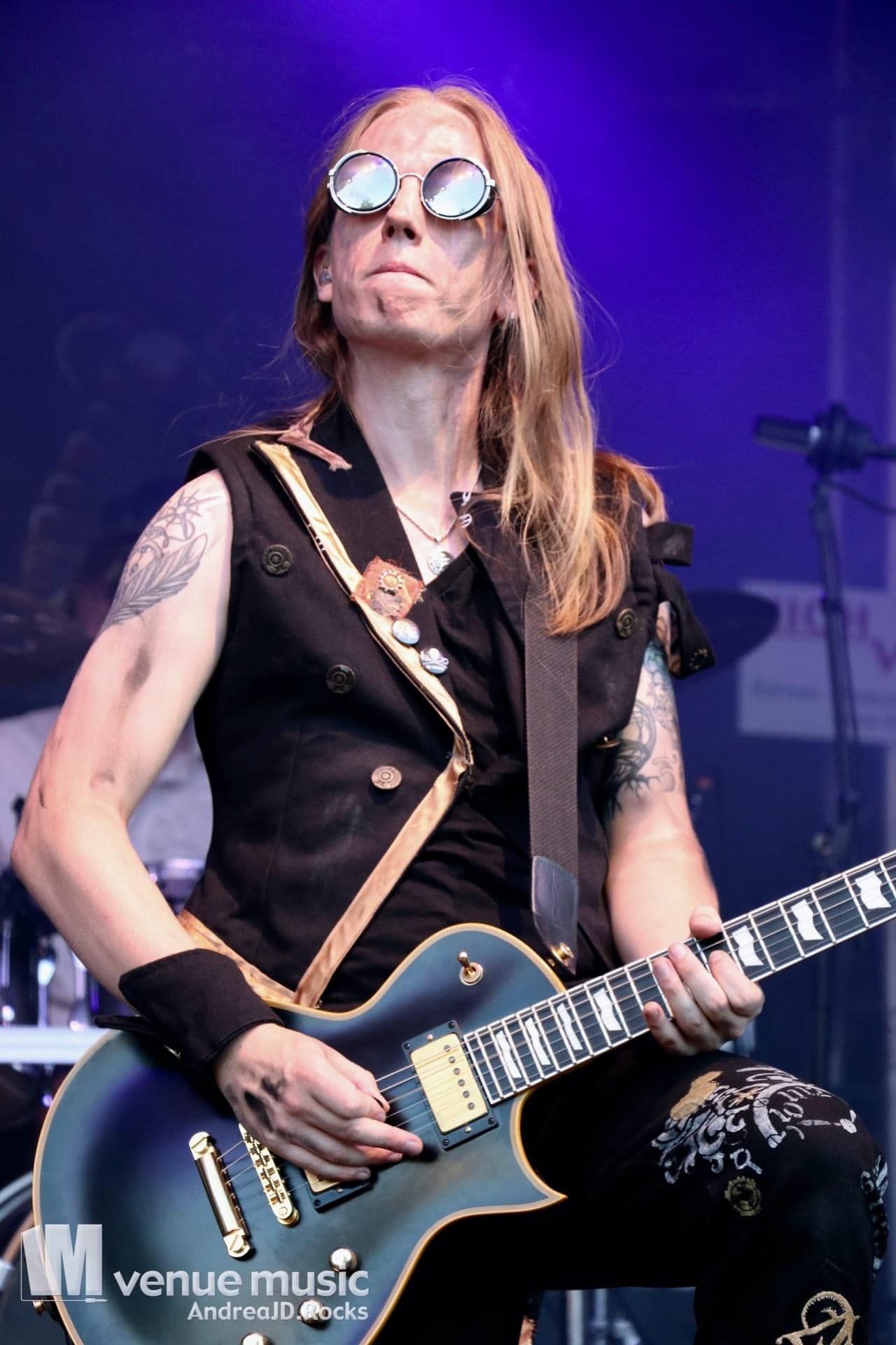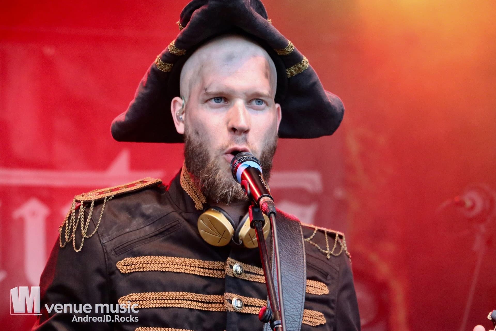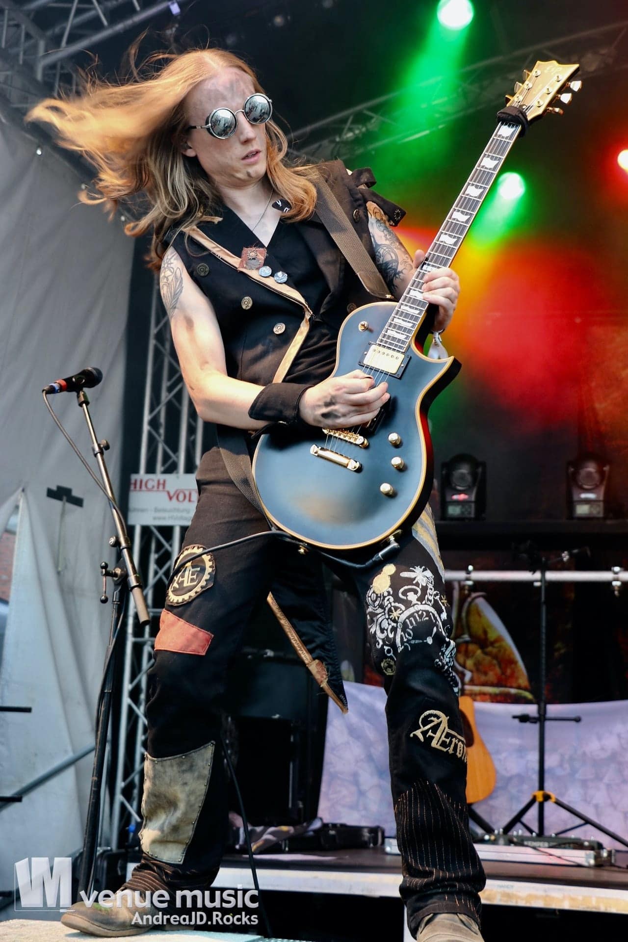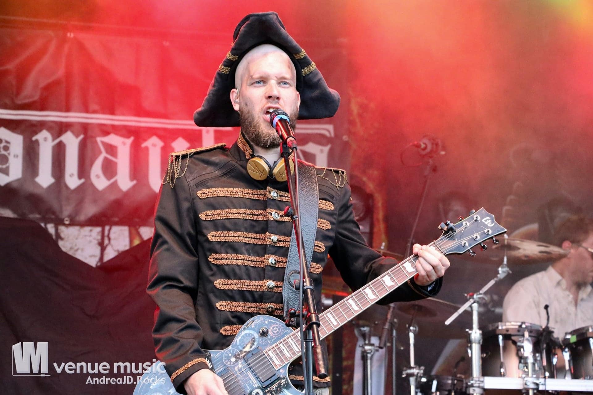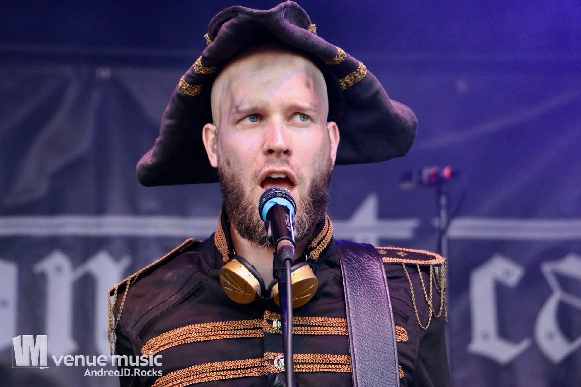 Aeronautica aus Witten lockten mit ihrem Steampunk etliche Fans des Genres an und hatten auch offensichtlich eine Menge Fans im Saarland oder eben auch aus der Heimat mit dabei. Während des Gigs füllte sich der Platz vor der Central Stage immer mehr bis letztendlich nach der Endzeit-Parade auch Feuerschwanz die Bühne betraten.