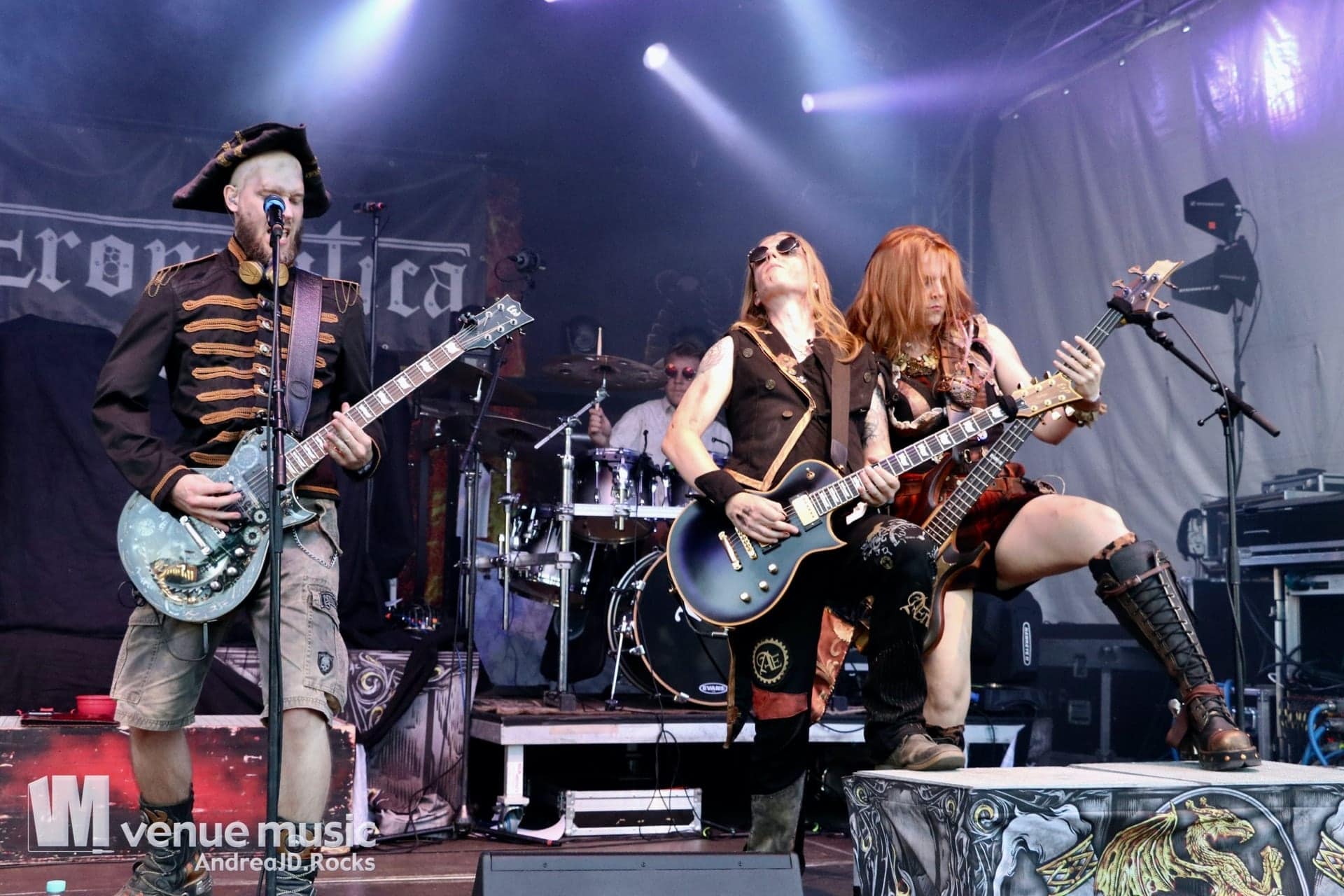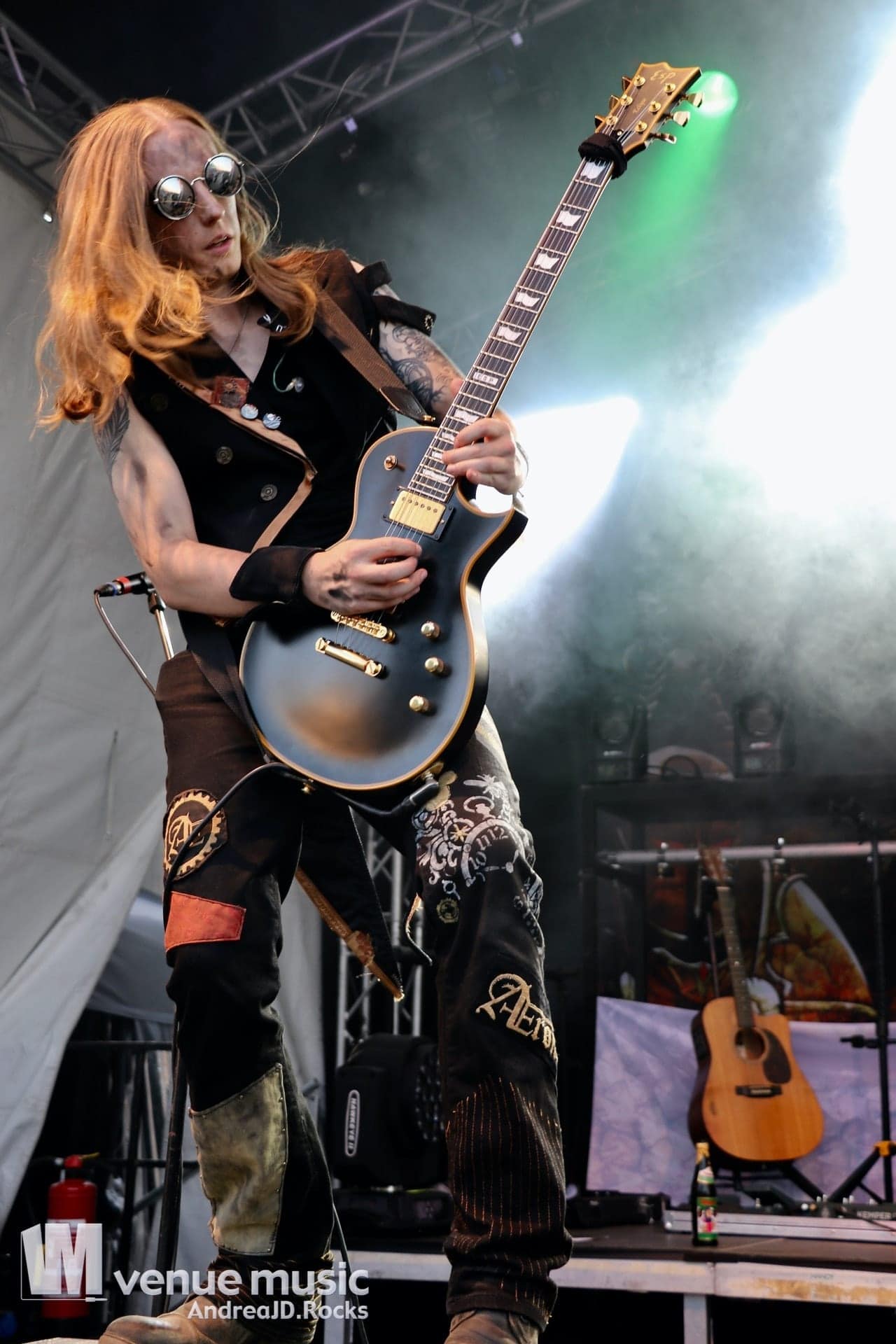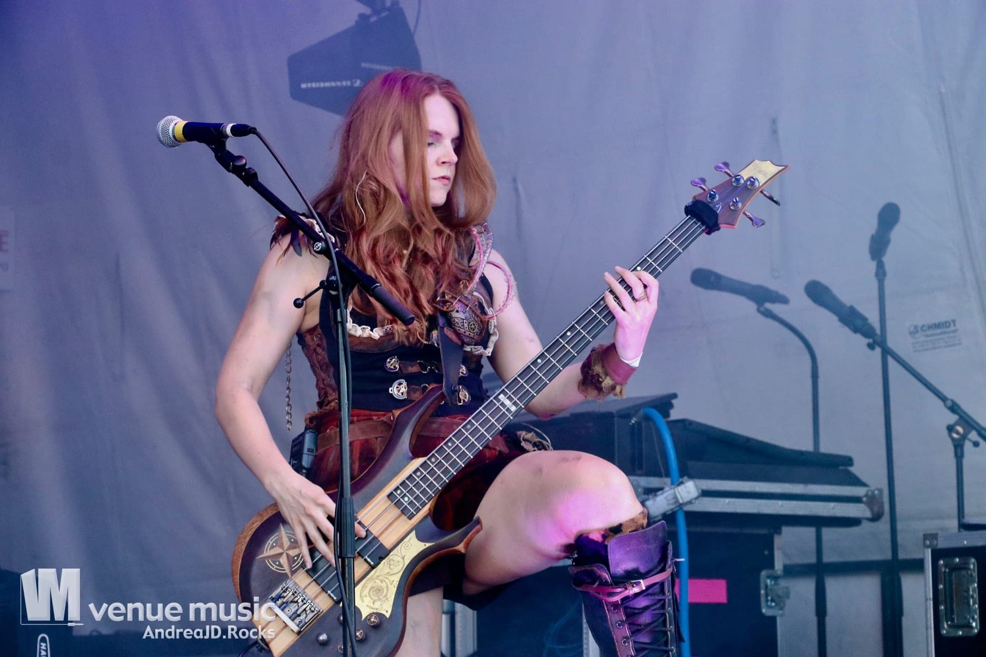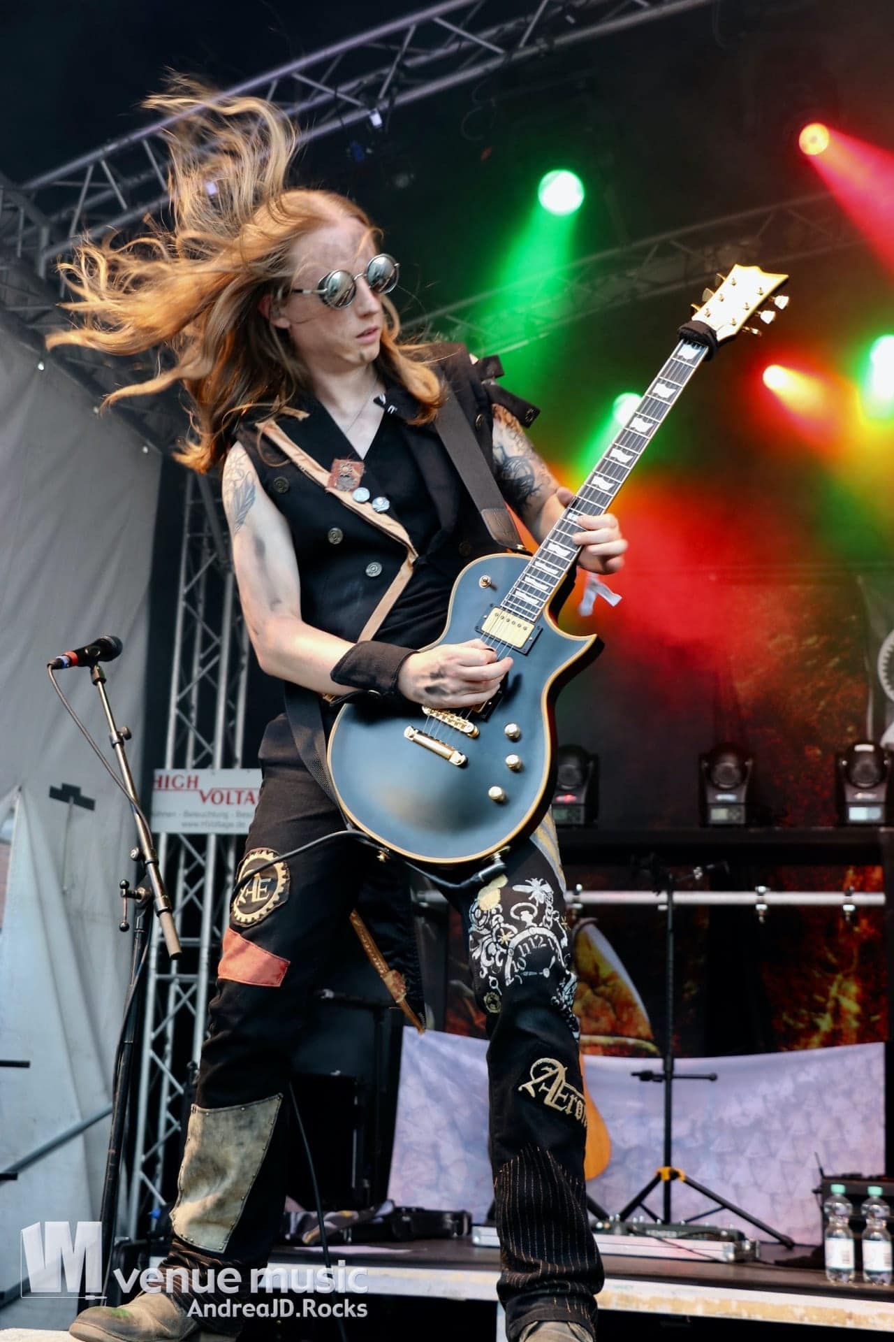 Aeronautica aus Witten lockten mit ihrem Steampunk etliche Fans des Genres an und hatten auch offensichtlich eine Menge Fans im Saarland oder eben auch aus der Heimat mit dabei. Während des Gigs füllte sich der Platz vor der Central Stage immer mehr bis letztendlich nach der Endzeit-Parade auch Feuerschwanz die Bühne betraten.