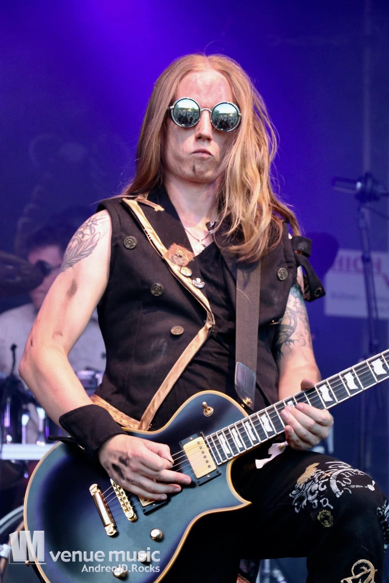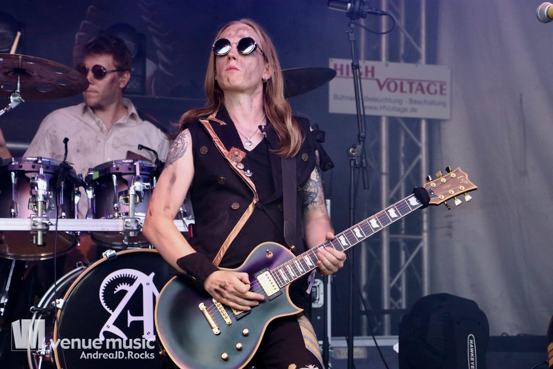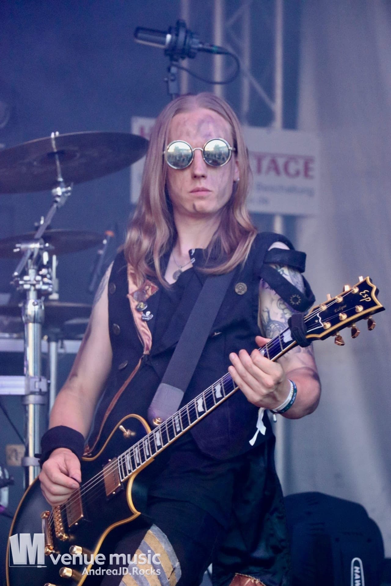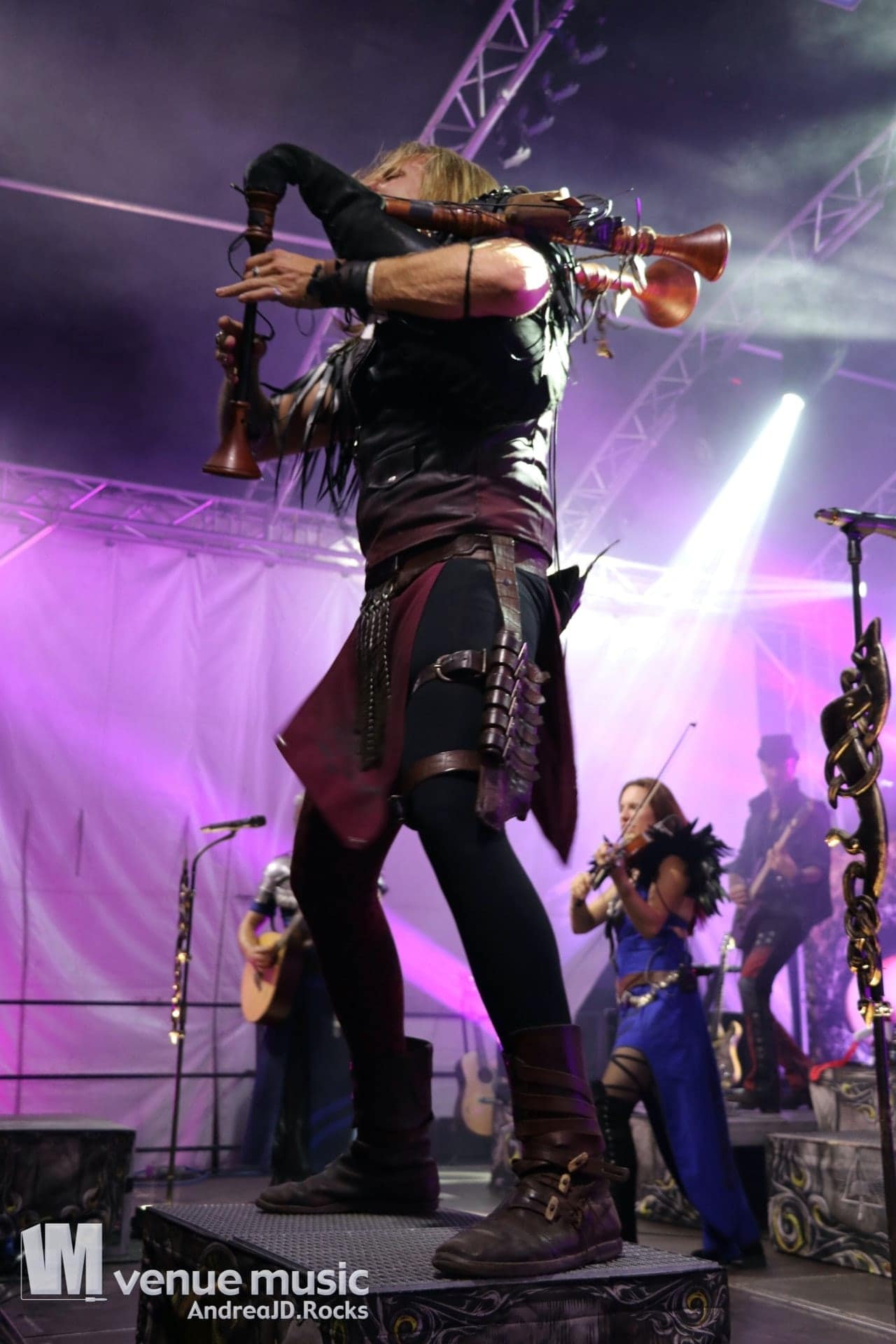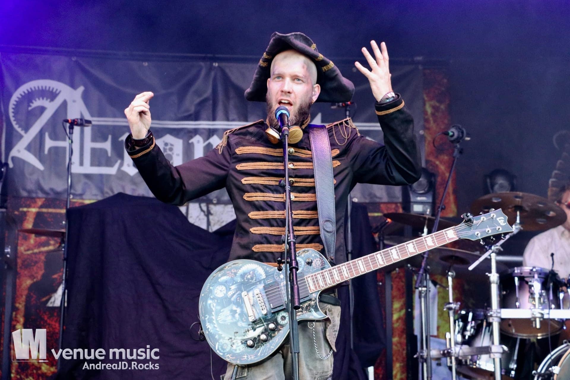 Aeronautica aus Witten lockten mit ihrem Steampunk etliche Fans des Genres an und hatten auch offensichtlich eine Menge Fans im Saarland oder eben auch aus der Heimat mit dabei. Während des Gigs füllte sich der Platz vor der Central Stage immer mehr bis letztendlich nach der Endzeit-Parade auch Feuerschwanz die Bühne betraten.