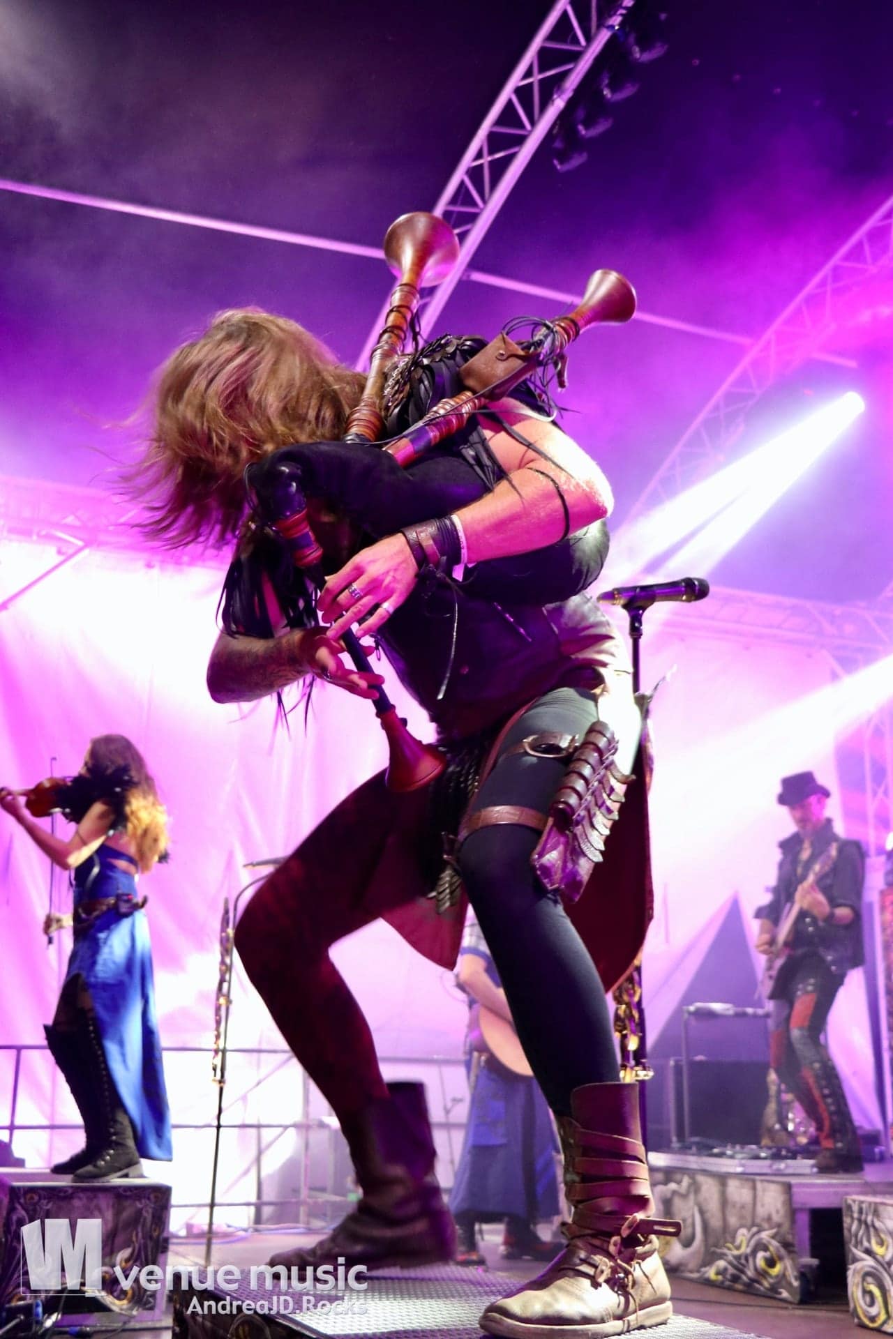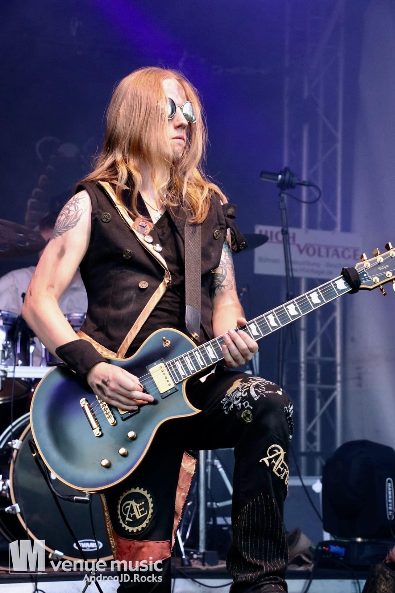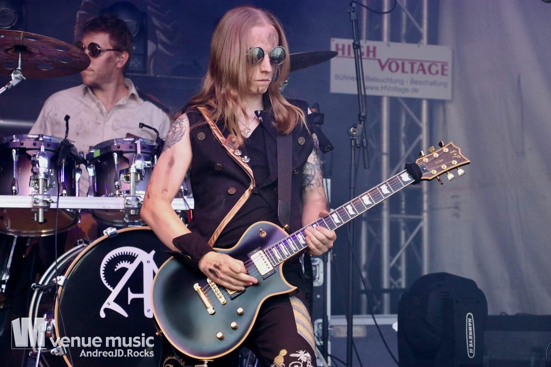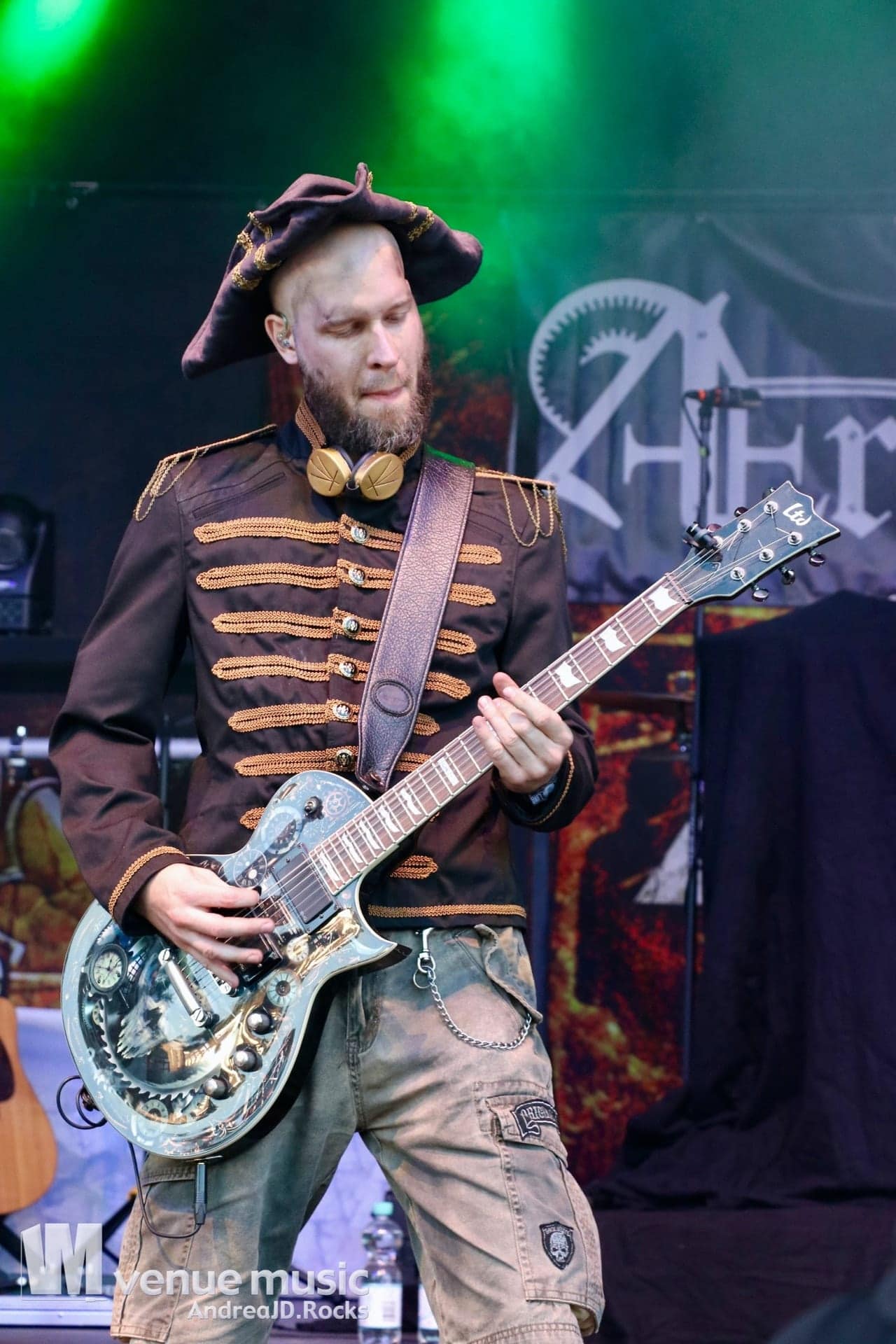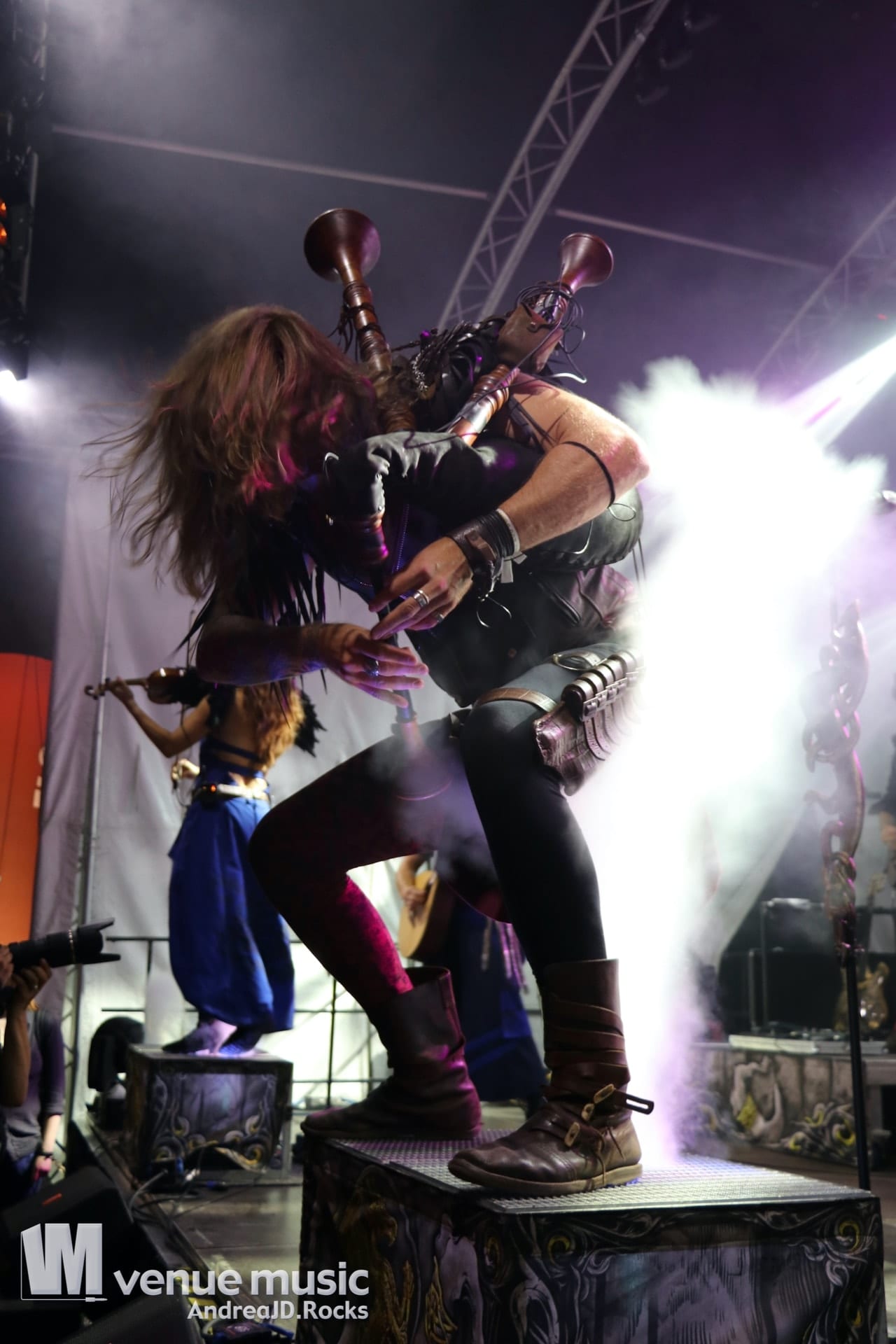 Aeronautica aus Witten lockten mit ihrem Steampunk etliche Fans des Genres an und hatten auch offensichtlich eine Menge Fans im Saarland oder eben auch aus der Heimat mit dabei. Während des Gigs füllte sich der Platz vor der Central Stage immer mehr bis letztendlich nach der Endzeit-Parade auch Feuerschwanz die Bühne betraten.