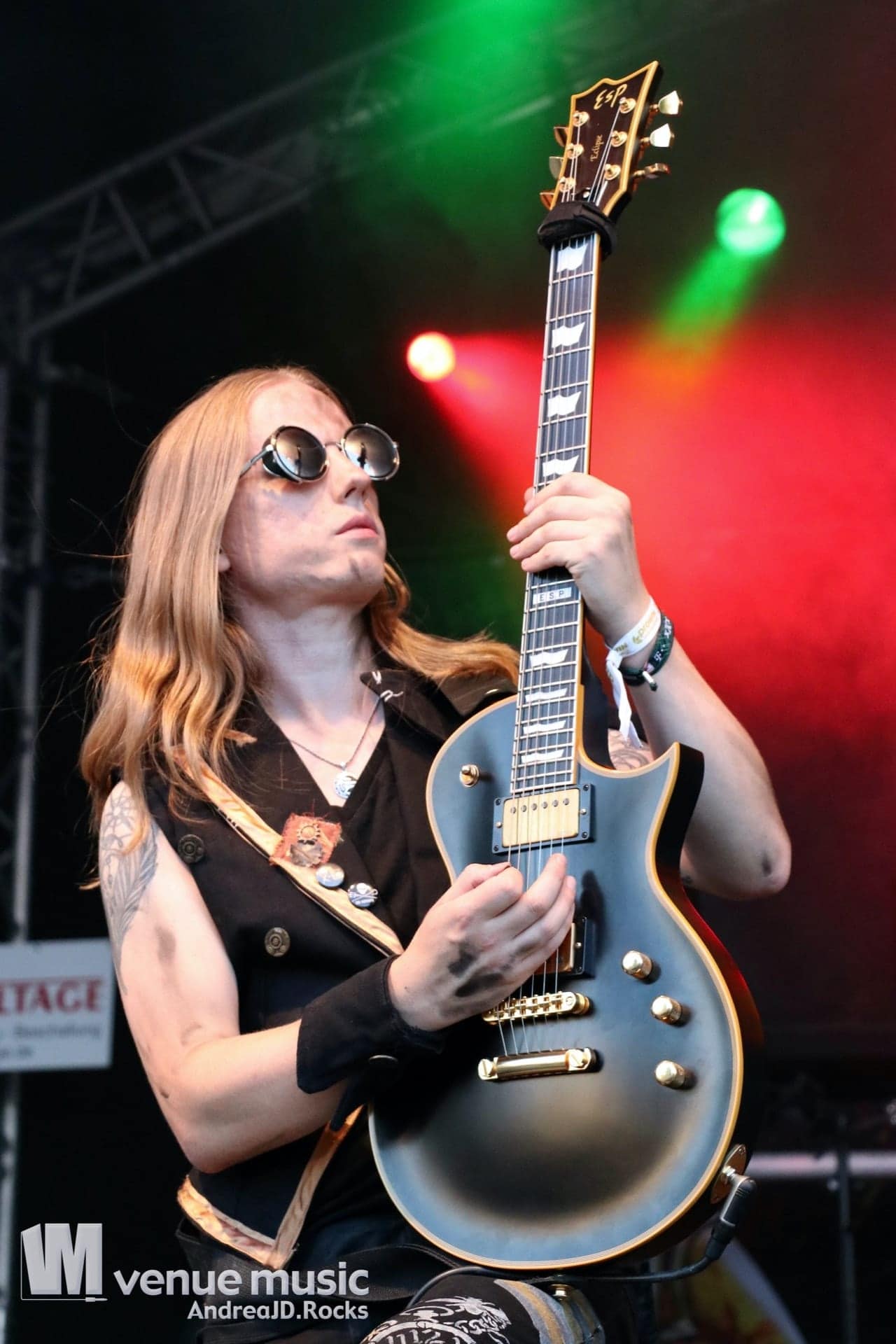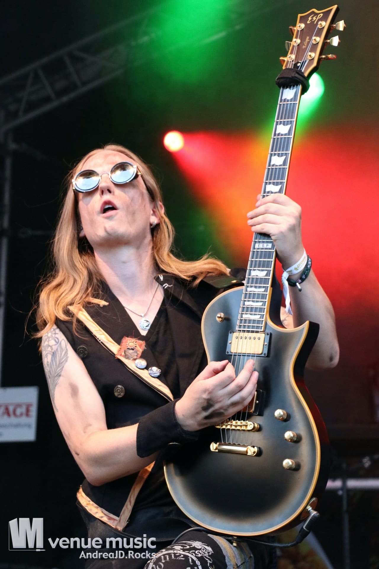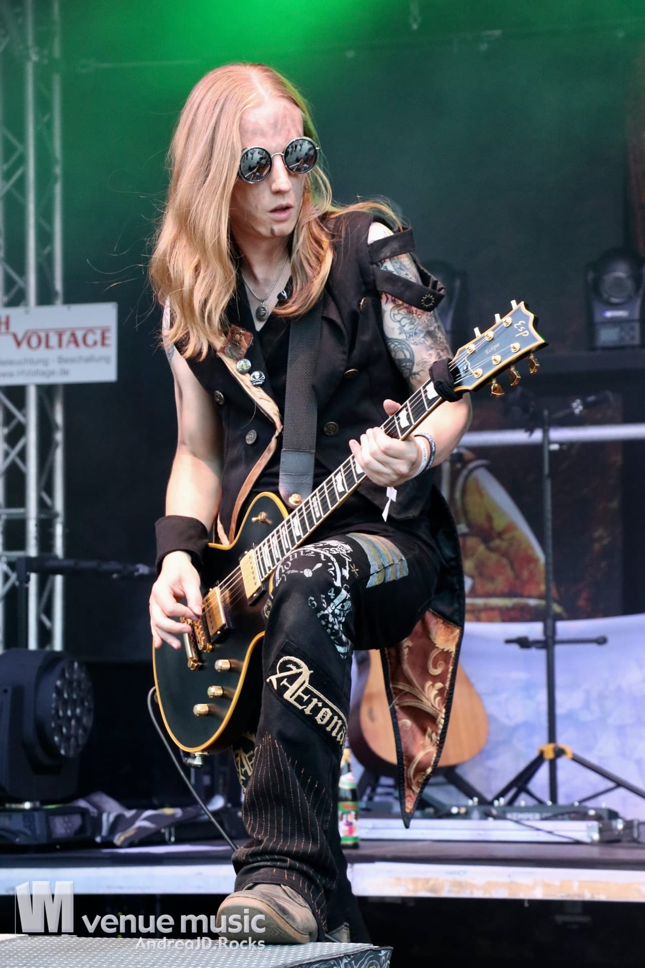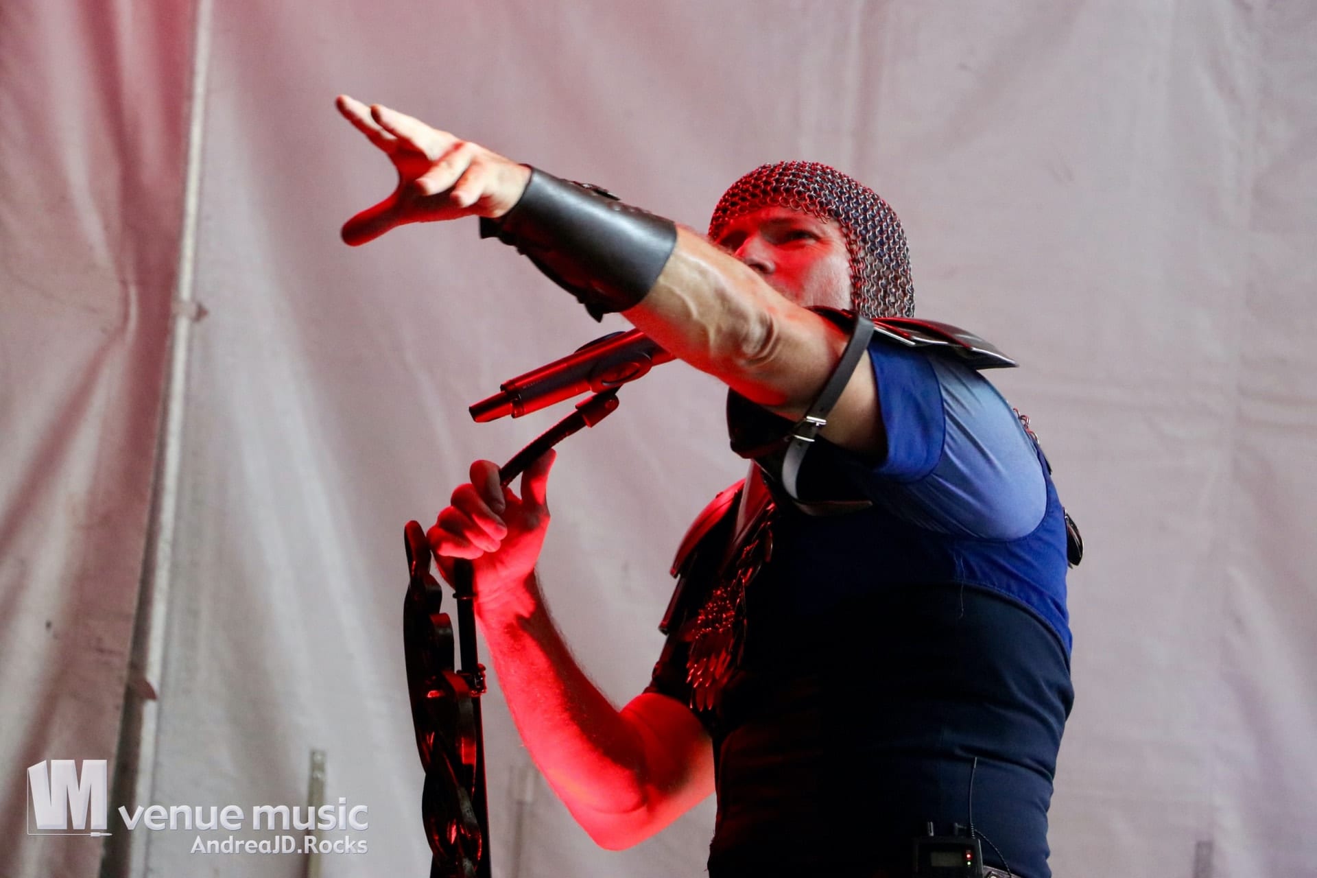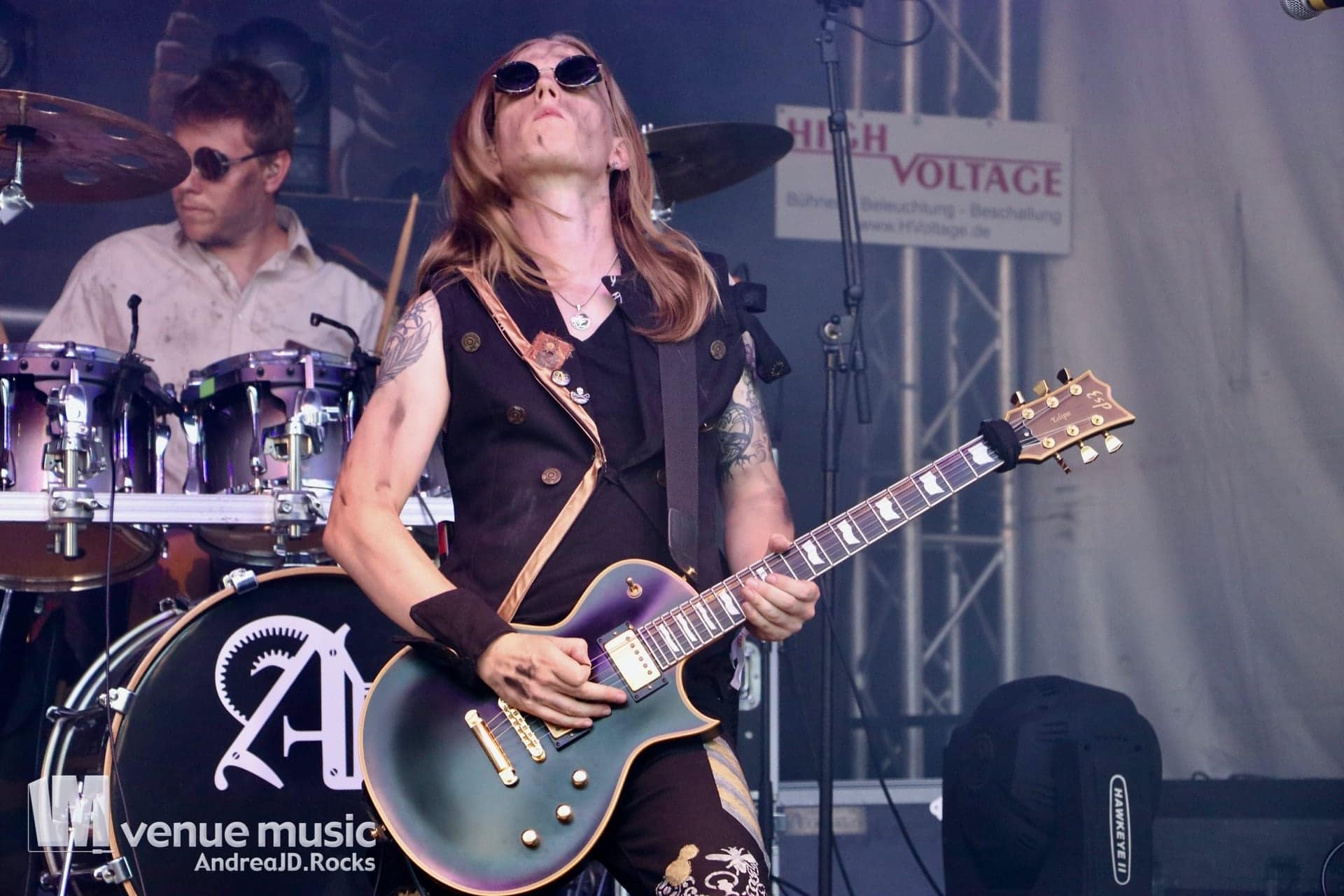 Aeronautica aus Witten lockten mit ihrem Steampunk etliche Fans des Genres an und hatten auch offensichtlich eine Menge Fans im Saarland oder eben auch aus der Heimat mit dabei. Während des Gigs füllte sich der Platz vor der Central Stage immer mehr bis letztendlich nach der Endzeit-Parade auch Feuerschwanz die Bühne betraten.