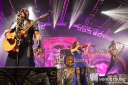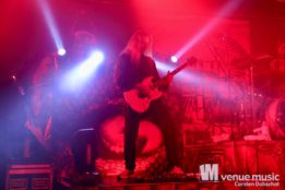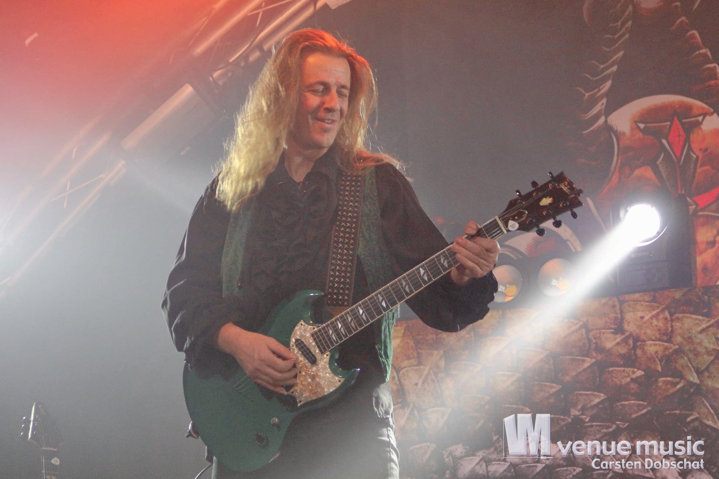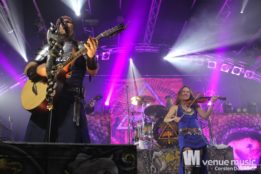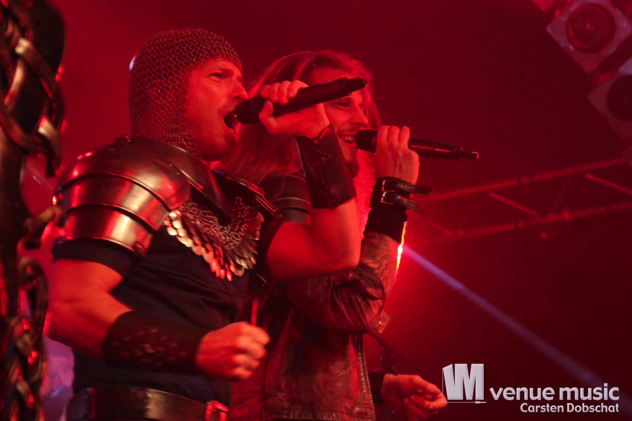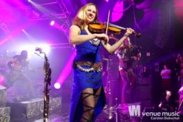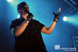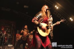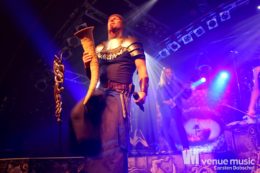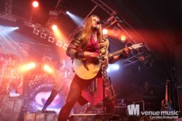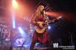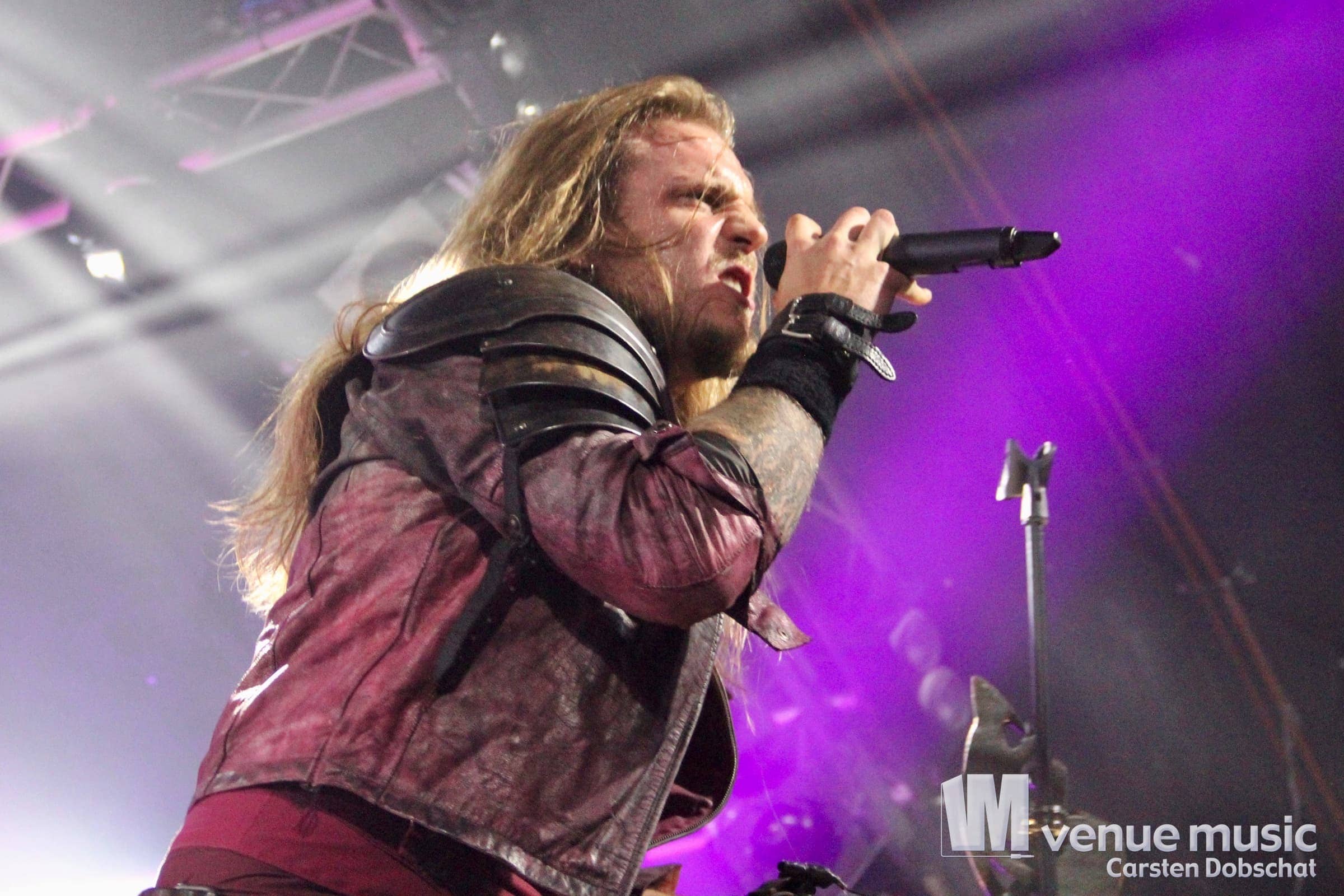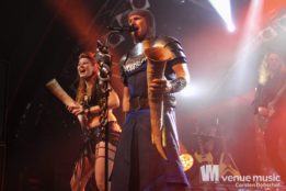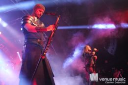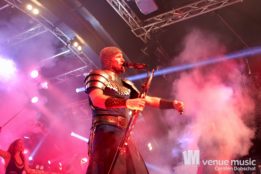 Aber dann mal die wichtigste Frage: Wie war die Feuerschwanz-Show? Kurz: Großartig. Die sowieso schon großartigen Songs wie Schubsetanz, Die Hörner hoch oder Prinzessin sind live mit Beteiligung eines begeisterten Publikums noch einmal eine ganze andere Nummer.Natürlich wurde auch „alter Scheiß“ gespielt, der nicht weniger gut ankam. Vito C. hatte offensichtlich fleissig geübt, zumindest hatte man nicht den Eindruck, dass er irgendwelche Probleme hatte. Auch in Sachen Kleidung hat er sich weitgehend angepasst – nur die rosa Turnschuhe passten nicht so ganz ins Gesamtbild ?
