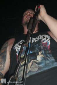 War das Licht bei Creeping Death noch halbwegs OK, herrschte nun auf der Bühne ziemliche Dunkelheit. Aber die große Cam blieb vorsichtshalber in der Tasche, denn außer Bierduschen gabs noch Schaum-Schnee von der Bühne und jede Menge Stagediver und Crowdsurfer. Das war mir dann doch zu heikel.. Da musste die kleine reichen…