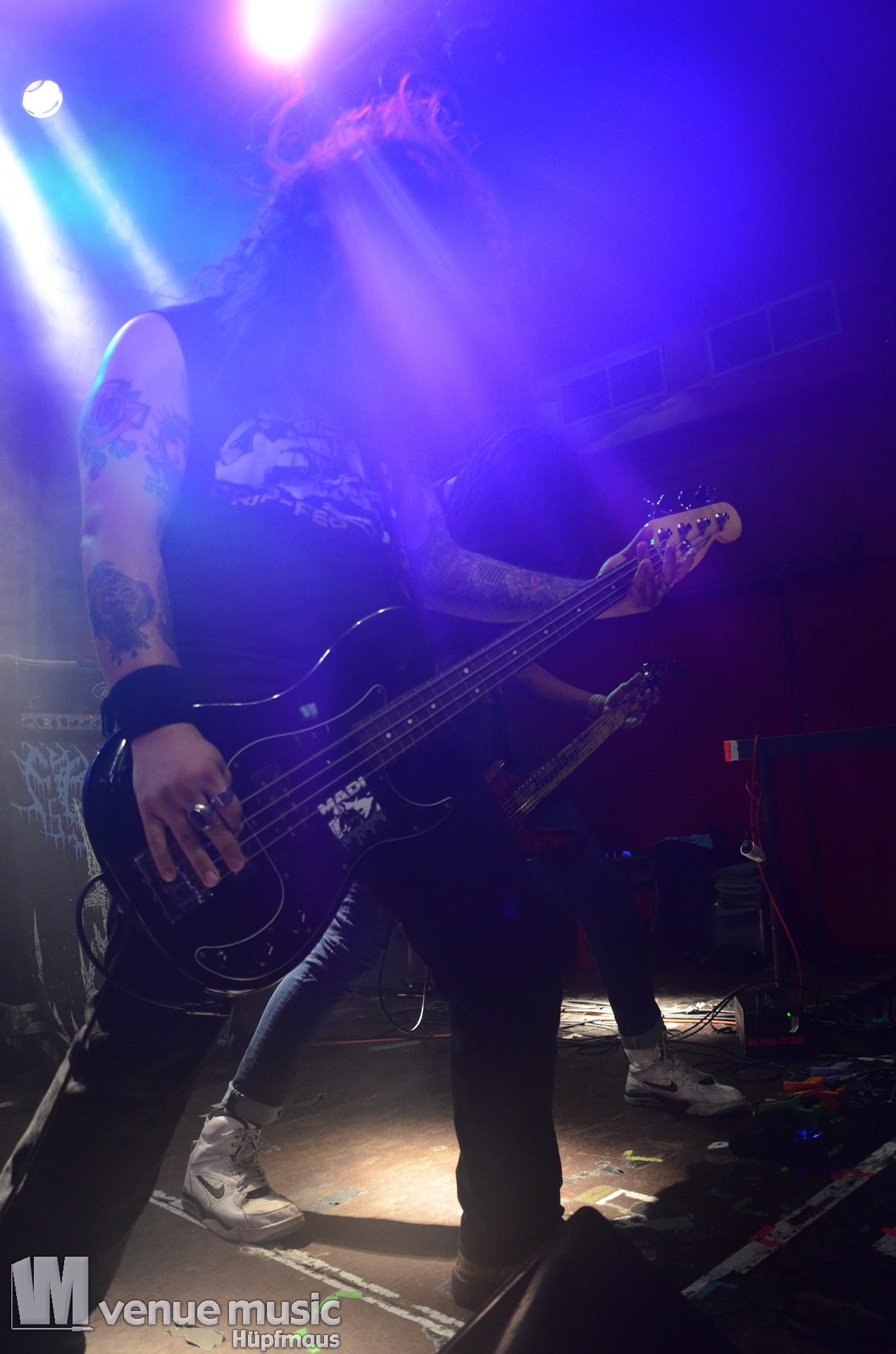 Es ging echt mega ab im Publikum. Nix böswilliges, aber viel Circle-Pit etc. Da musste mein Rücken doch oft als Stoßdämpfer dienen. Autsch. Aber was solls, da muss man durch ;) Gefährlich waren dann doch oft echt die Stagediver, denn durch die Dunkelheit auf der Bühne und das zeitweilige Strobo, sah man die echt teils nicht kommen und hatte durchaus mal nen Schuh im Gesicht. Einerseits waren also 60 Minuten Spielzeit echt kurz, andererseits reichte es dann körperlich doch irgendwie ;) man wird halt doch alt *fg*. Aber ohne erste Reihe ist auch langweilig.