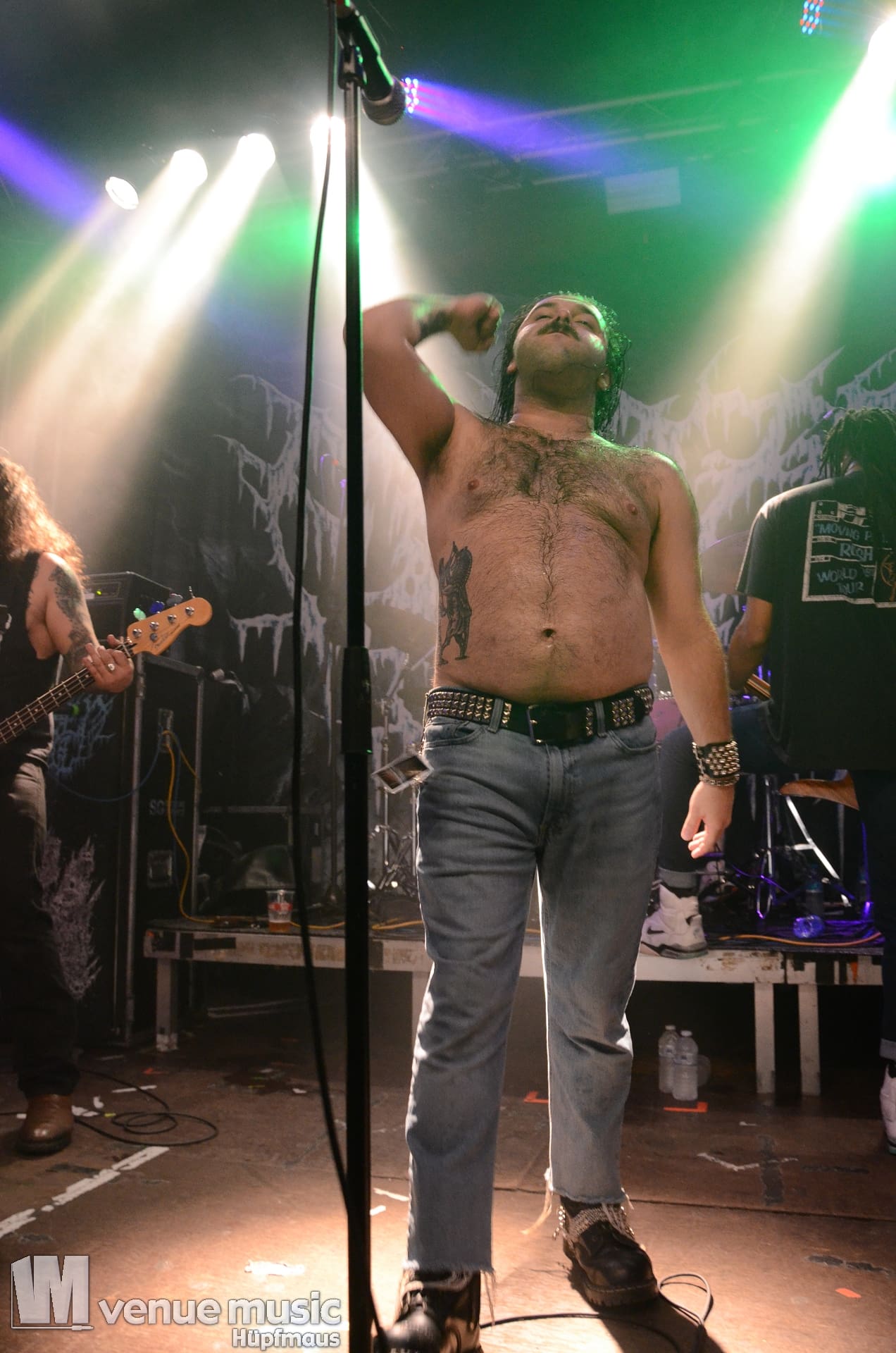 Die Spielzeiten schon vorher schon fest, Frozen Soul würden leider nur eine Stunde auf der Bühne stehen. 2018 gegründet haben Frozen Soul inzwischen 2 Alben auf dem Markt, leider haben wir sie ein bisschen zu spät kennen gelernt und so das erste Album „Crypt of Ice„(*) nicht mehr als First Press ergattern können. Es stand bei EMP noch drin, aber meine Bestellung wurde dann irgendwann storniert :( sehr schade. Mit ihrem aktuellen Werk „Glacial Domination„(*) sind sie ja grade auf Tour und das rockt echt mal so richtig. Läuft grade daheim in Dauerschleife. Auch die Videos sollte man sich anschauen, denn dadurch versteht man manche Sounds in den Songs erst richtig ;)
