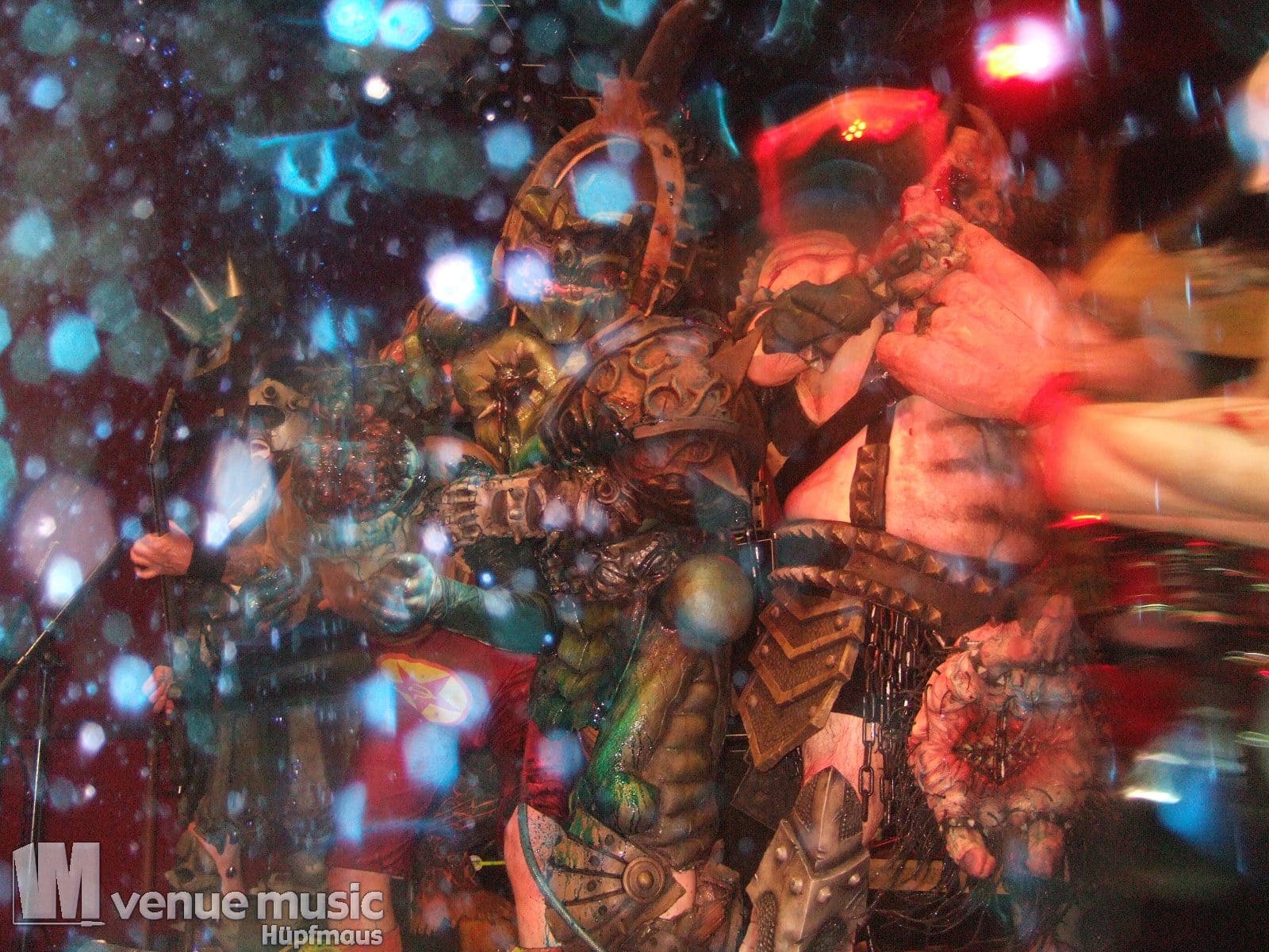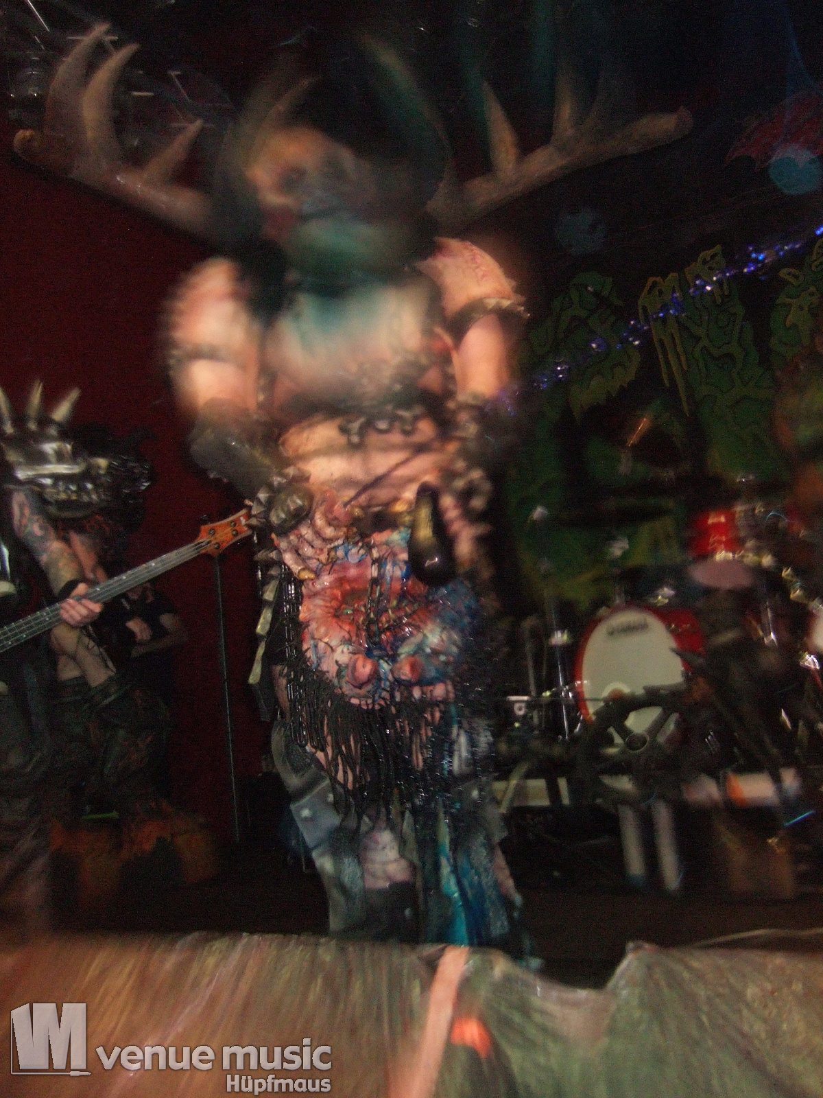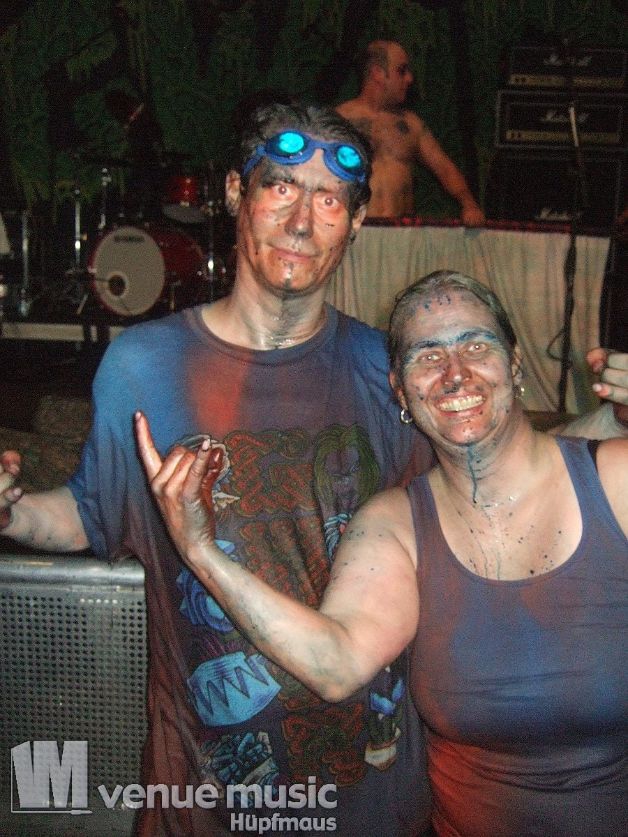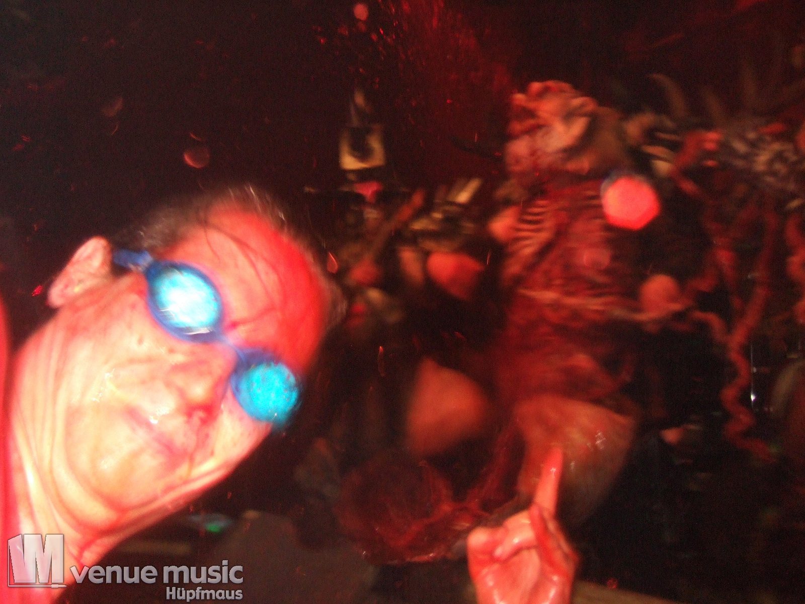 Auch wenn Songs von insgesamt 9 Alben im Set waren, fehlten doch irgendwie einige Klassiker. Die hätte dann selbst ich gekannt ;) Doch was die Show anbelangt, konnte man sich nicht beschweren, da haben Gwar mal wieder voll zugelangt. Dank Unterwasserkamera gibt es hier ein paar Einblicke aus der ersten Reihe (Fotos von uns vorner – nachher inklusive) – wer nicht so auf Splatter steht, sollte sie aber vielleicht nicht anschauen ;)