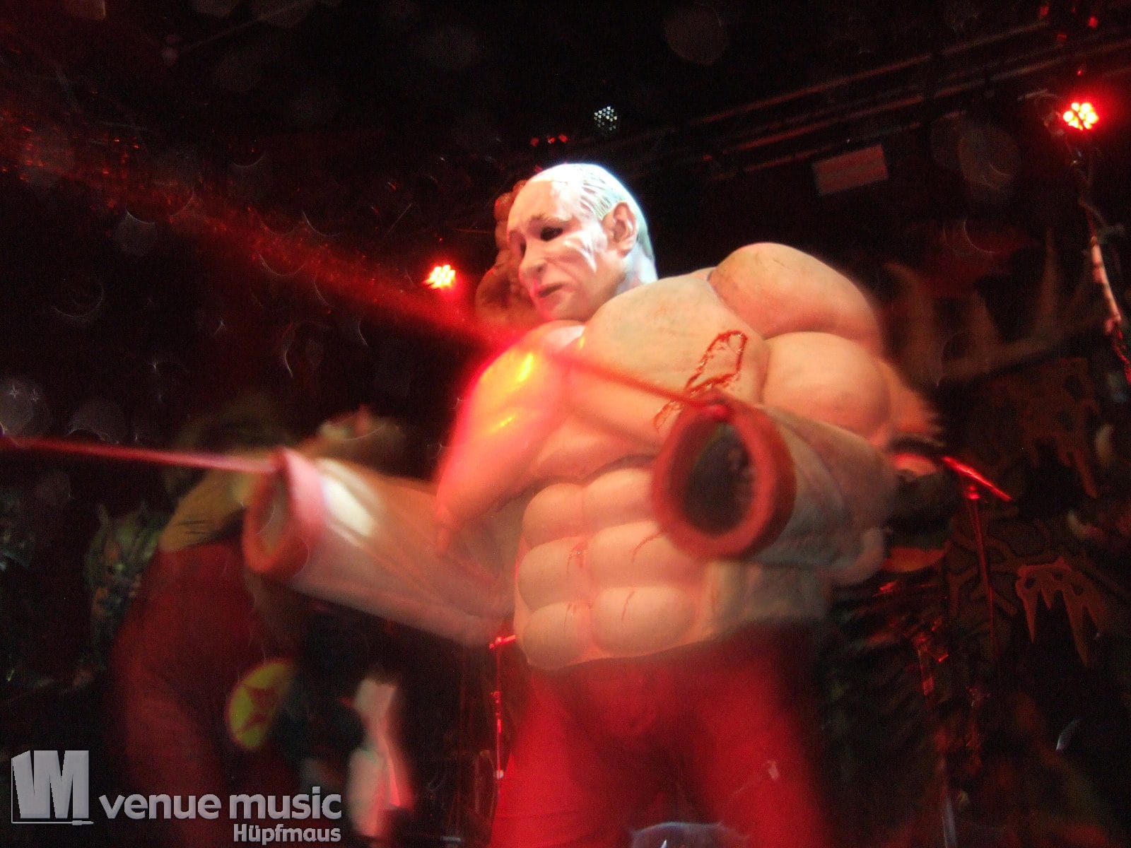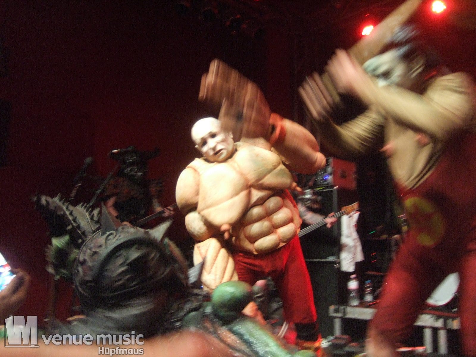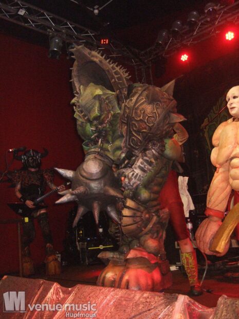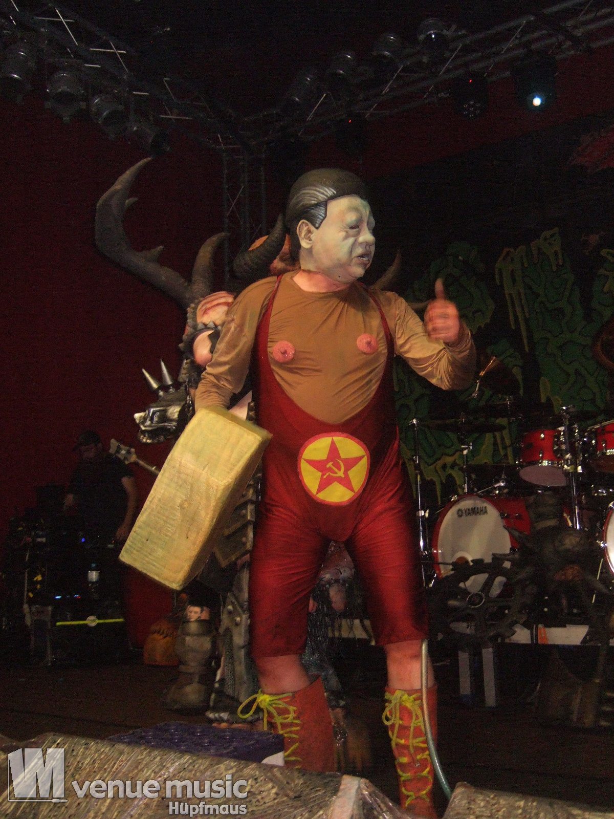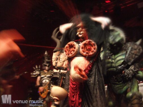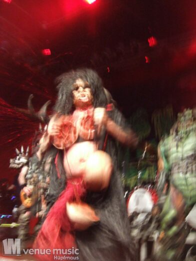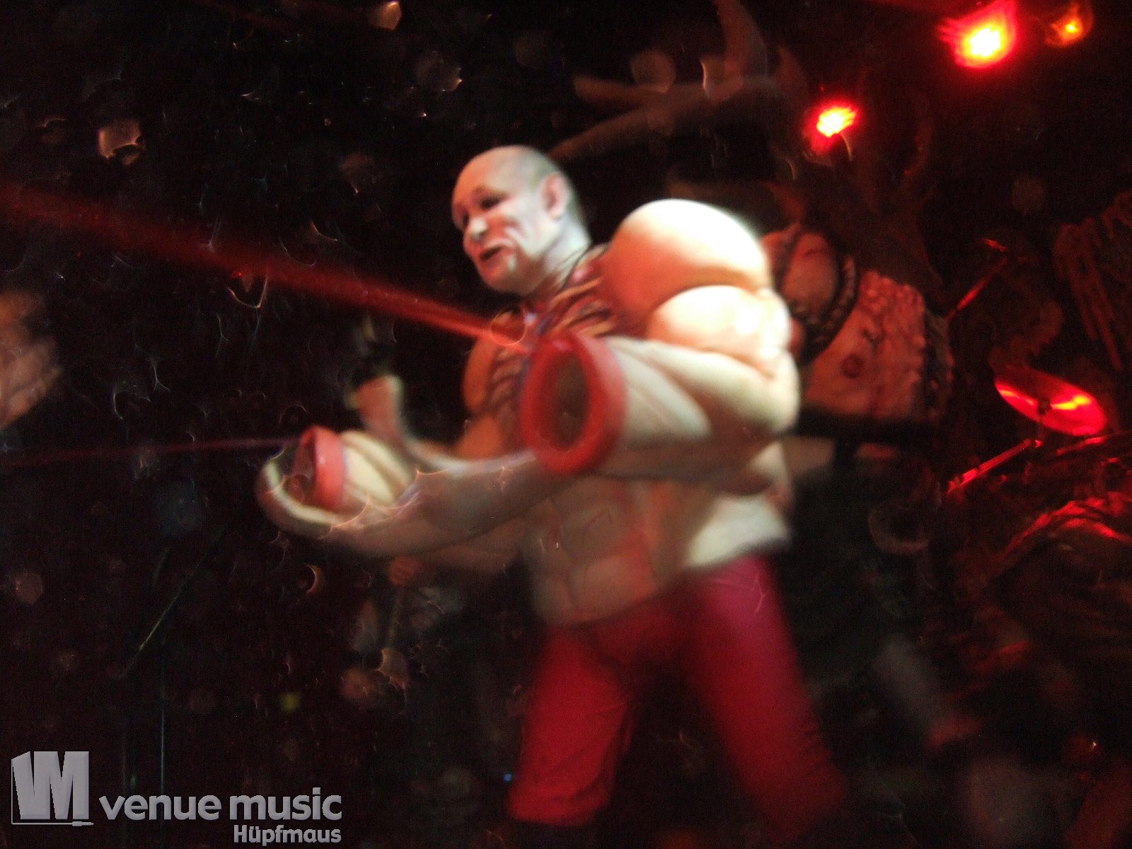 Musikalisch ist Gwar für mich nicht unbedingt der Oberhammer, aber hier geht es ja vor allem um die Live-Show. Auch wenn ich zugeben muss, dass ich von den Dialogen in den Nummern teils nicht viel verstehe (Akustisch und auch eben aufgrund fehlender Vokabeln ;) ). Aber im Sommer ist eine Gwar Show doch recht erfrischend… das war dieses Mal im Turock auch bitter nötig, war es draussen und auch in der Halle affig heiss. Im Winter sieht es da schon wieder ein bisschen anders aus – ohne Wechselklamotten (und zwar bis auf den Schlüppi) sollte man da nicht zum Konzert gehen, wenn man vorne stehen möchte.