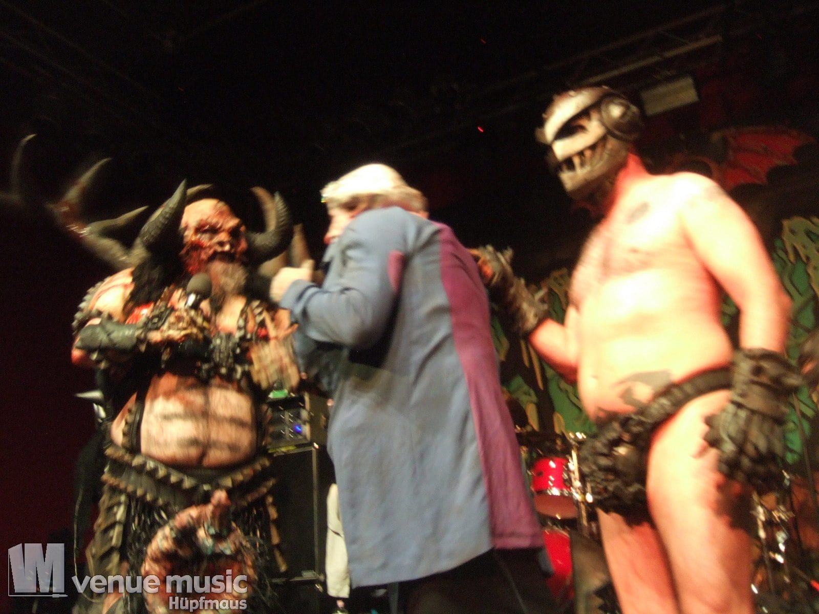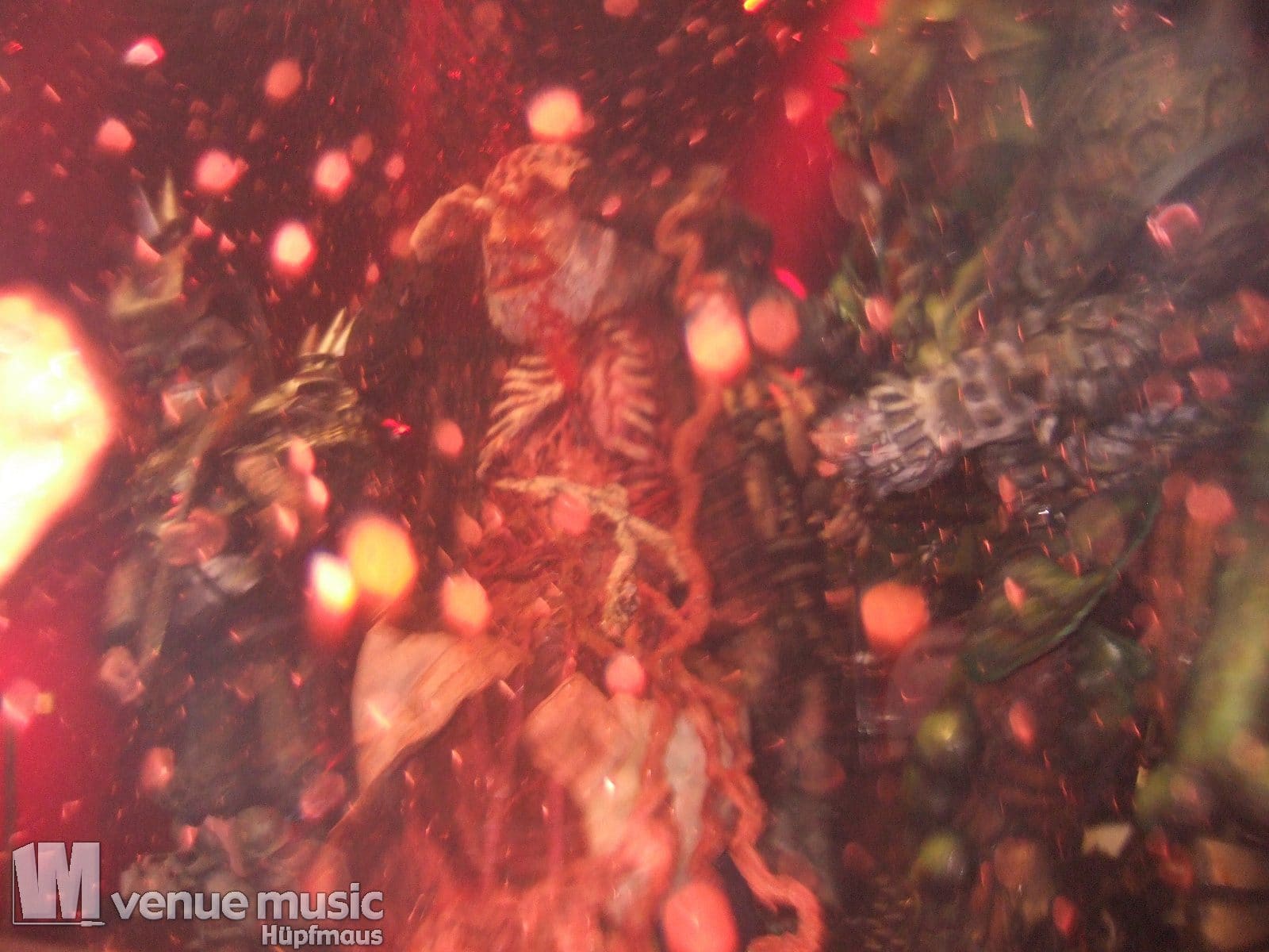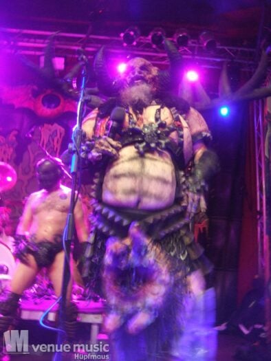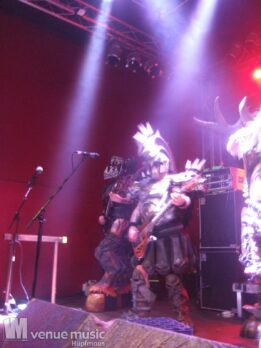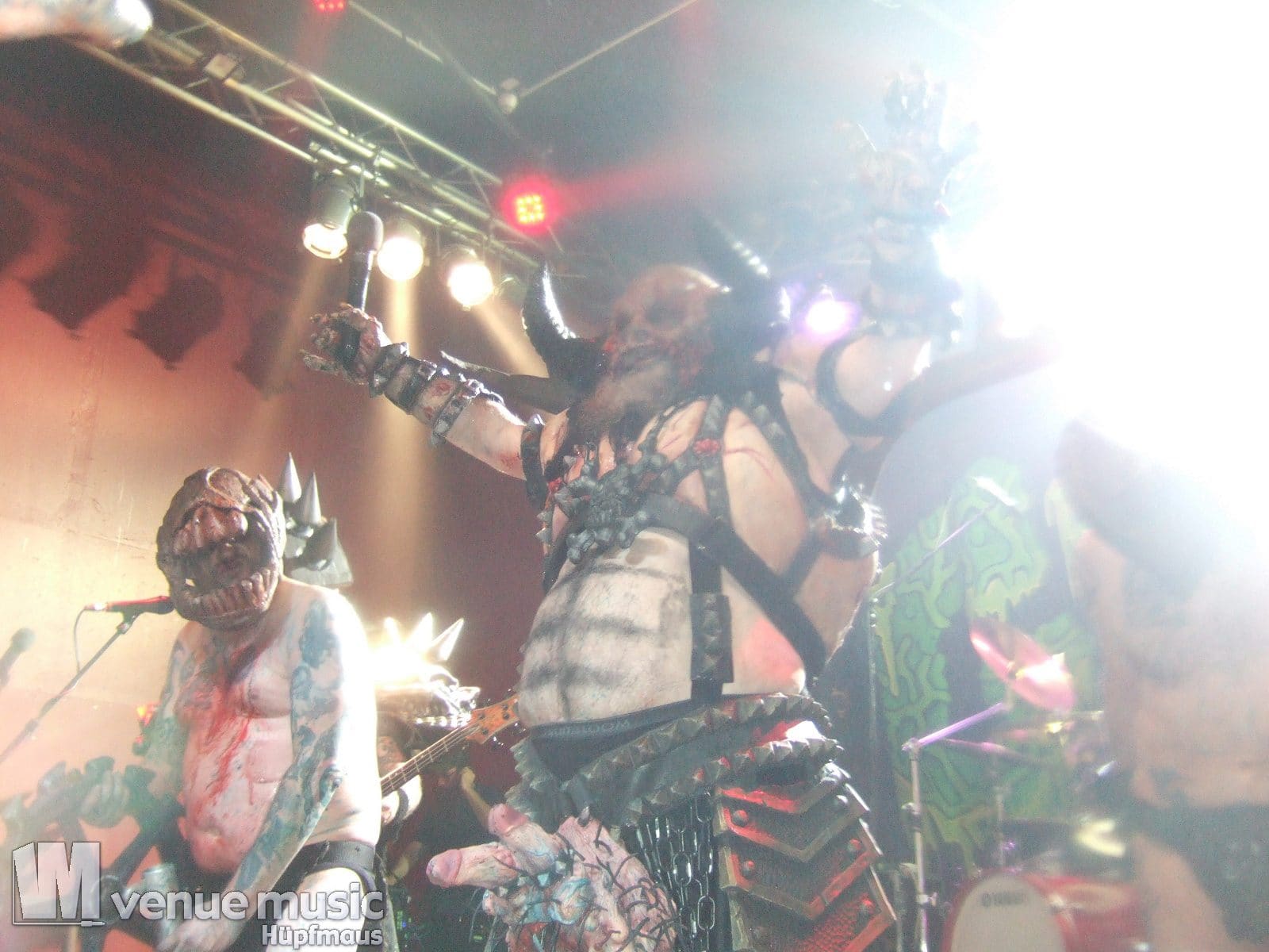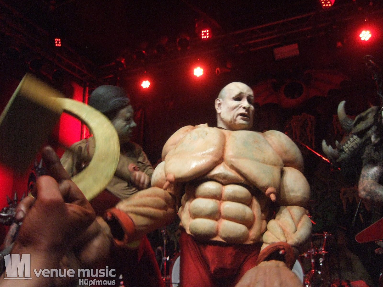 Musikalisch ist Gwar für mich nicht unbedingt der Oberhammer, aber hier geht es ja vor allem um die Live-Show. Auch wenn ich zugeben muss, dass ich von den Dialogen in den Nummern teils nicht viel verstehe (Akustisch und auch eben aufgrund fehlender Vokabeln ;) ). Aber im Sommer ist eine Gwar Show doch recht erfrischend… das war dieses Mal im Turock auch bitter nötig, war es draussen und auch in der Halle affig heiss. Im Winter sieht es da schon wieder ein bisschen anders aus – ohne Wechselklamotten (und zwar bis auf den Schlüppi) sollte man da nicht zum Konzert gehen, wenn man vorne stehen möchte.