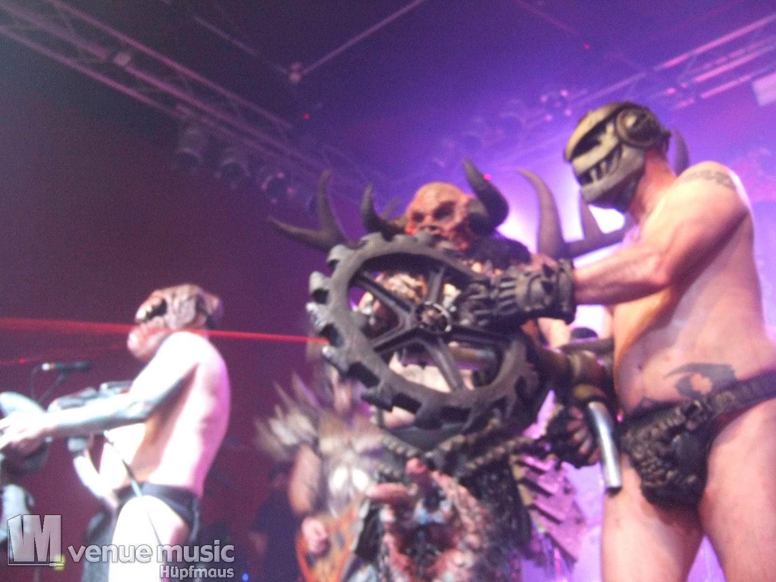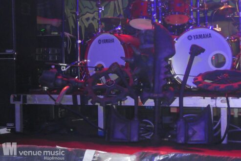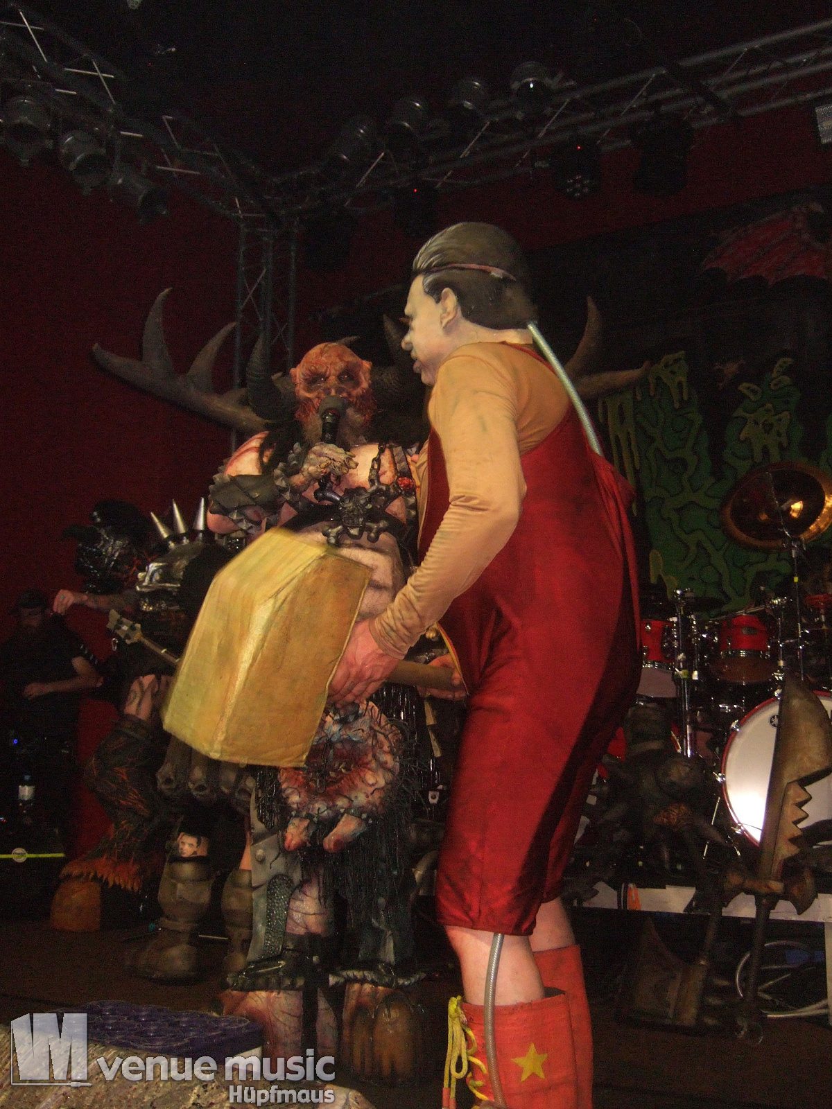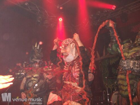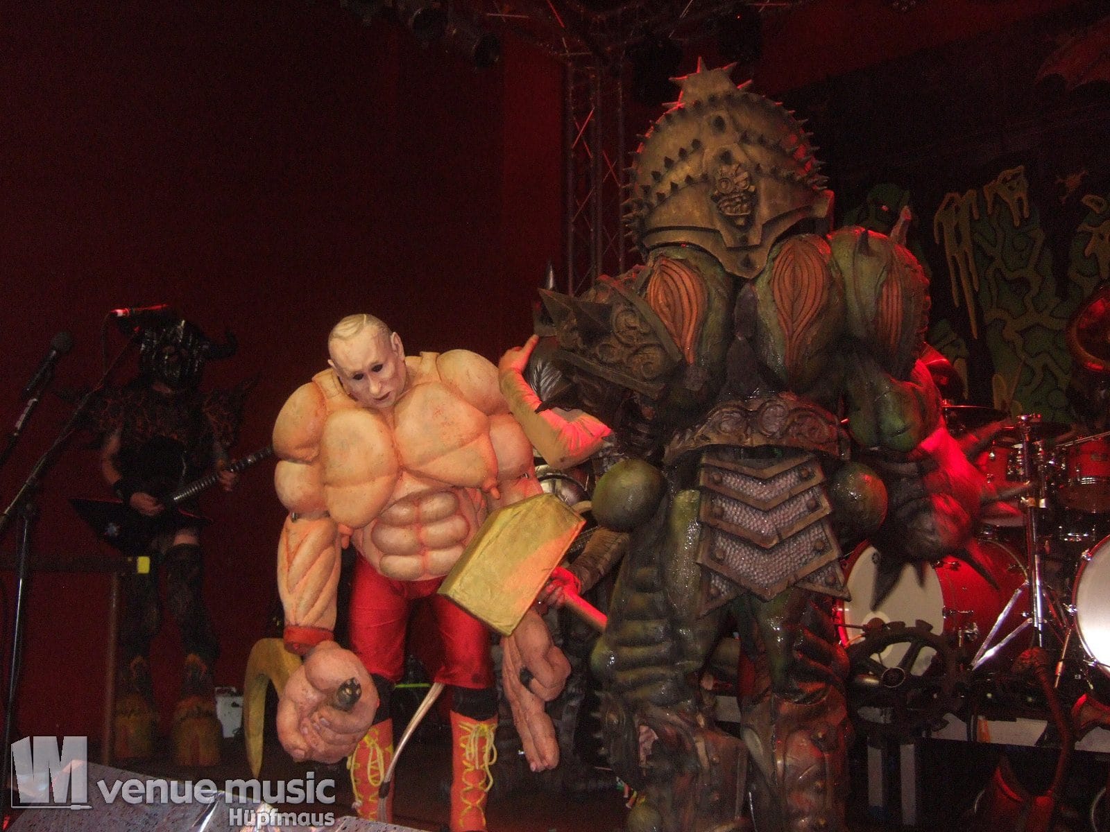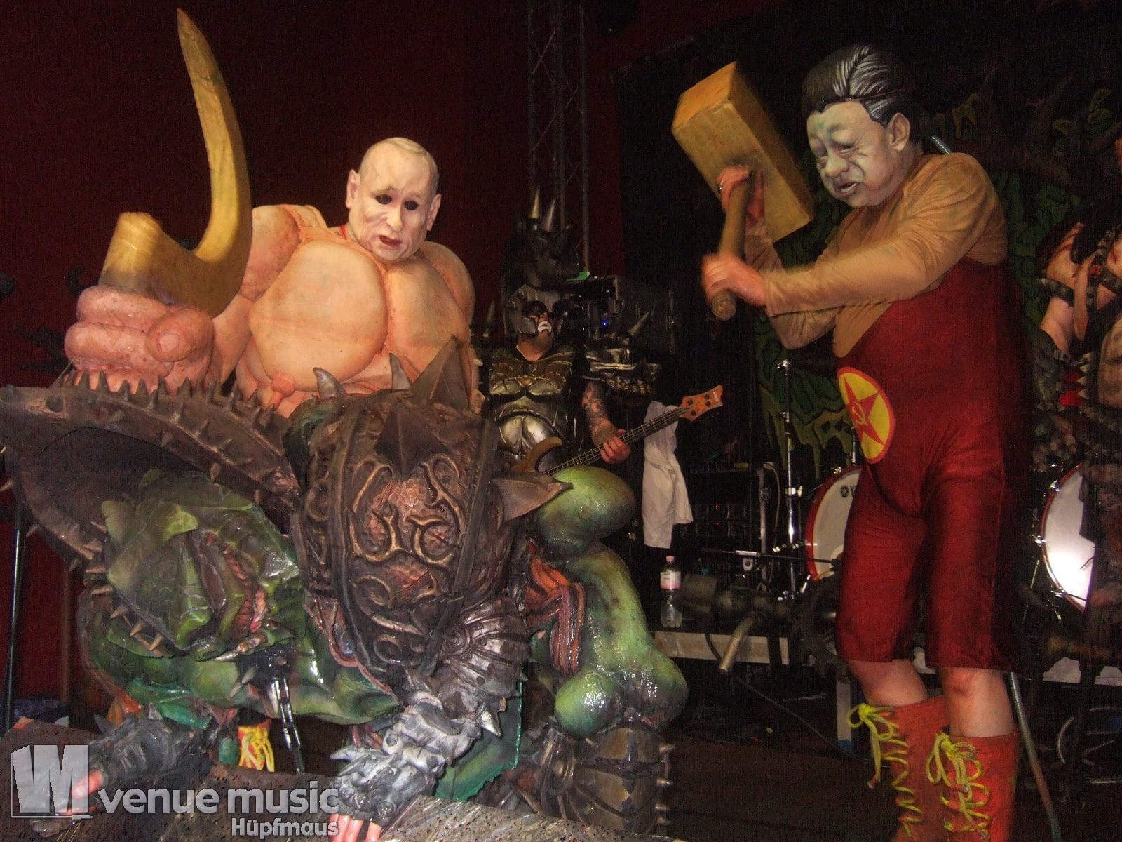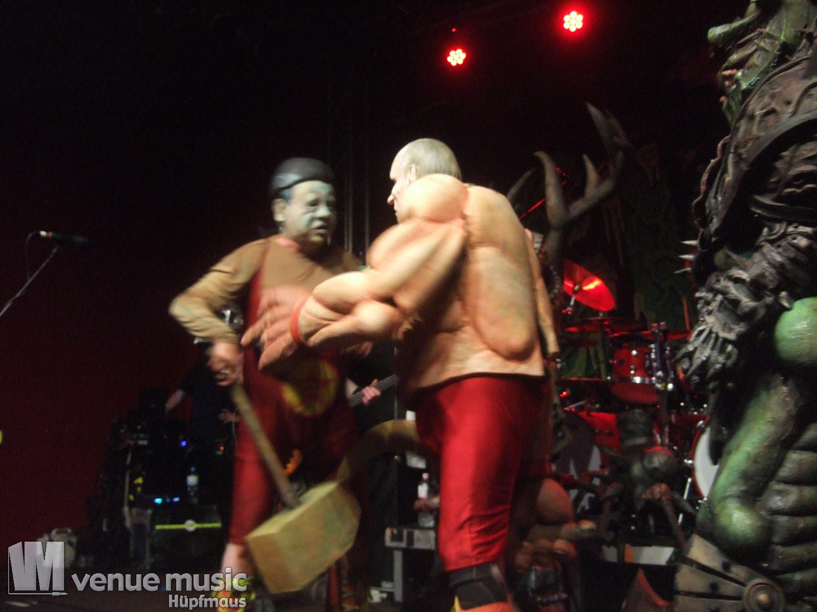 Musikalisch ist Gwar für mich nicht unbedingt der Oberhammer, aber hier geht es ja vor allem um die Live-Show. Auch wenn ich zugeben muss, dass ich von den Dialogen in den Nummern teils nicht viel verstehe (Akustisch und auch eben aufgrund fehlender Vokabeln ;) ). Aber im Sommer ist eine Gwar Show doch recht erfrischend… das war dieses Mal im Turock auch bitter nötig, war es draussen und auch in der Halle affig heiss. Im Winter sieht es da schon wieder ein bisschen anders aus – ohne Wechselklamotten (und zwar bis auf den Schlüppi) sollte man da nicht zum Konzert gehen, wenn man vorne stehen möchte.