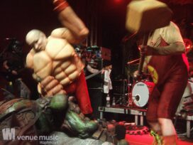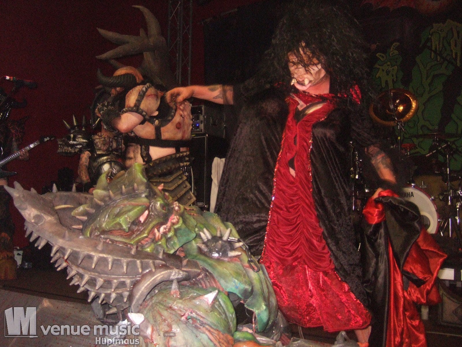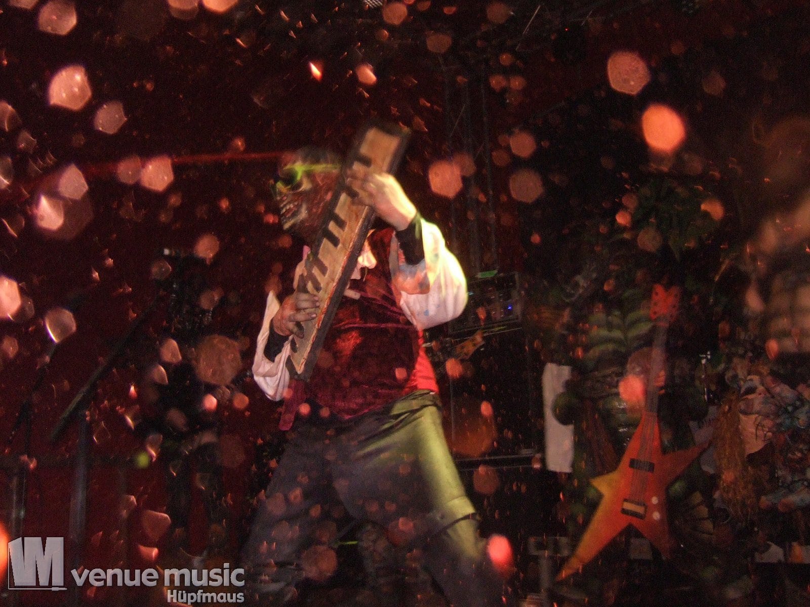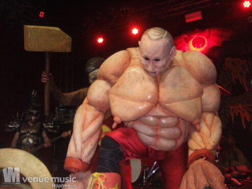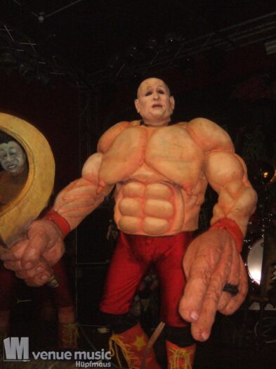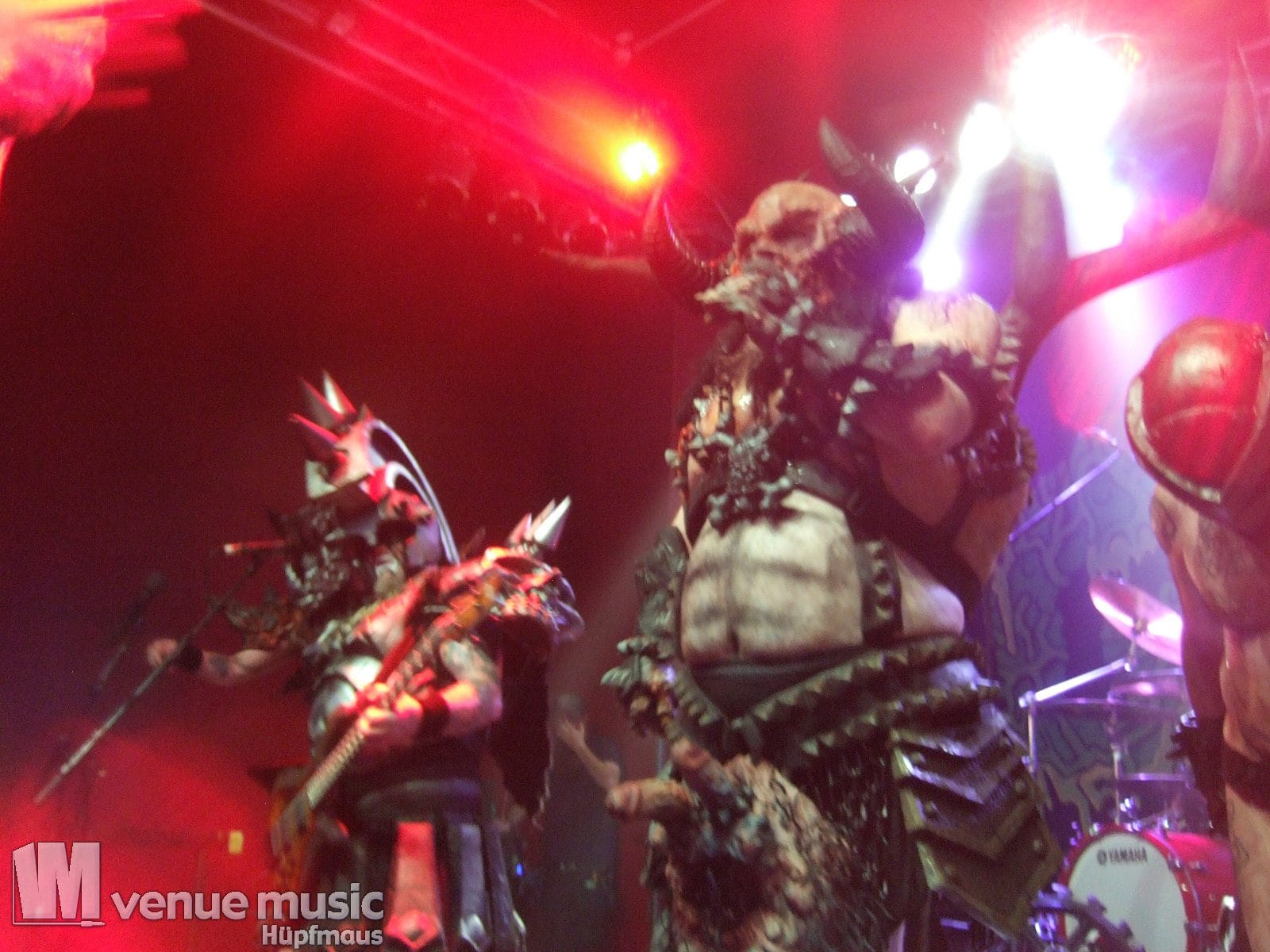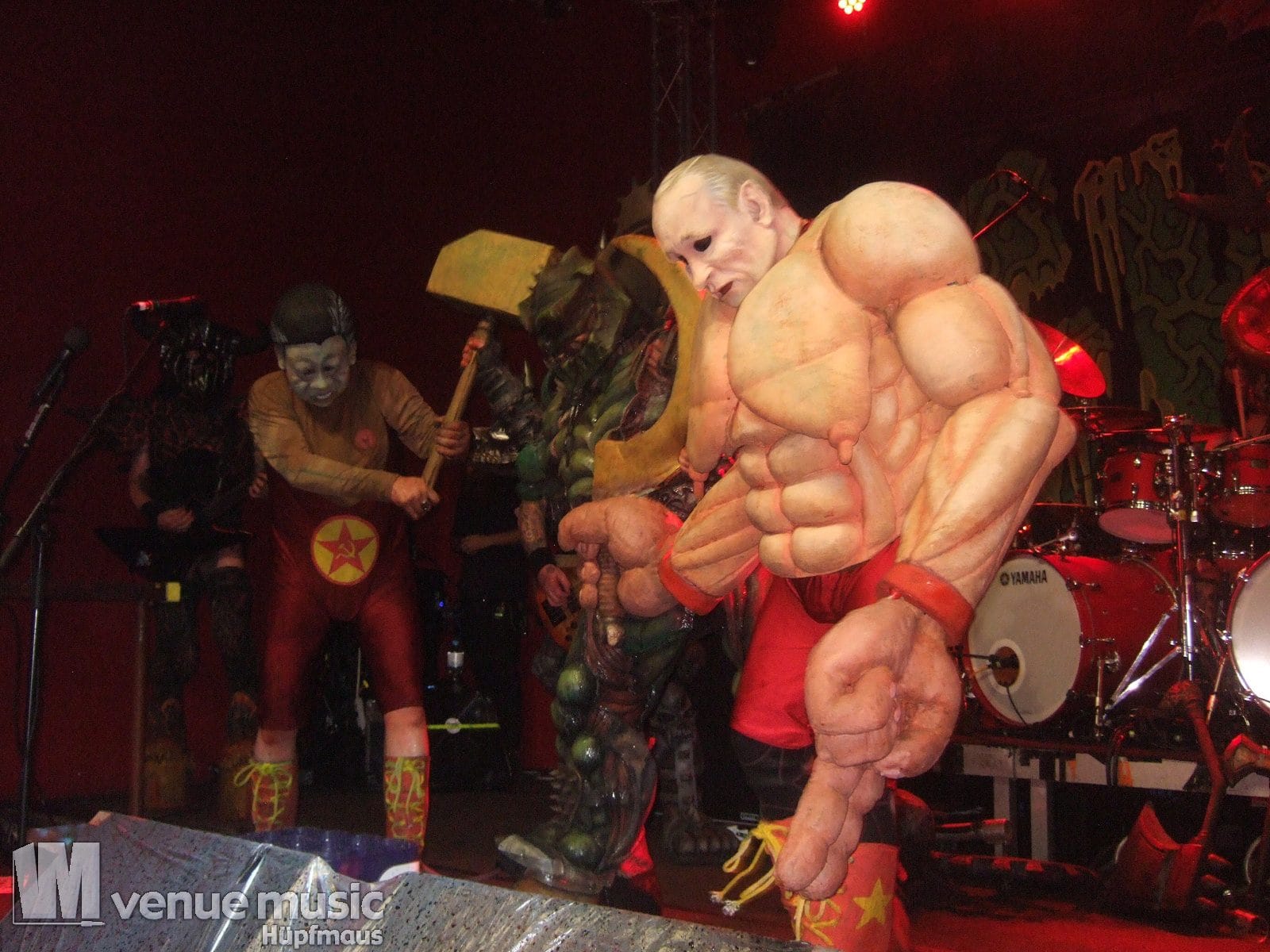 Musikalisch ist Gwar für mich nicht unbedingt der Oberhammer, aber hier geht es ja vor allem um die Live-Show. Auch wenn ich zugeben muss, dass ich von den Dialogen in den Nummern teils nicht viel verstehe (Akustisch und auch eben aufgrund fehlender Vokabeln ;) ). Aber im Sommer ist eine Gwar Show doch recht erfrischend… das war dieses Mal im Turock auch bitter nötig, war es draussen und auch in der Halle affig heiss. Im Winter sieht es da schon wieder ein bisschen anders aus – ohne Wechselklamotten (und zwar bis auf den Schlüppi) sollte man da nicht zum Konzert gehen, wenn man vorne stehen möchte.